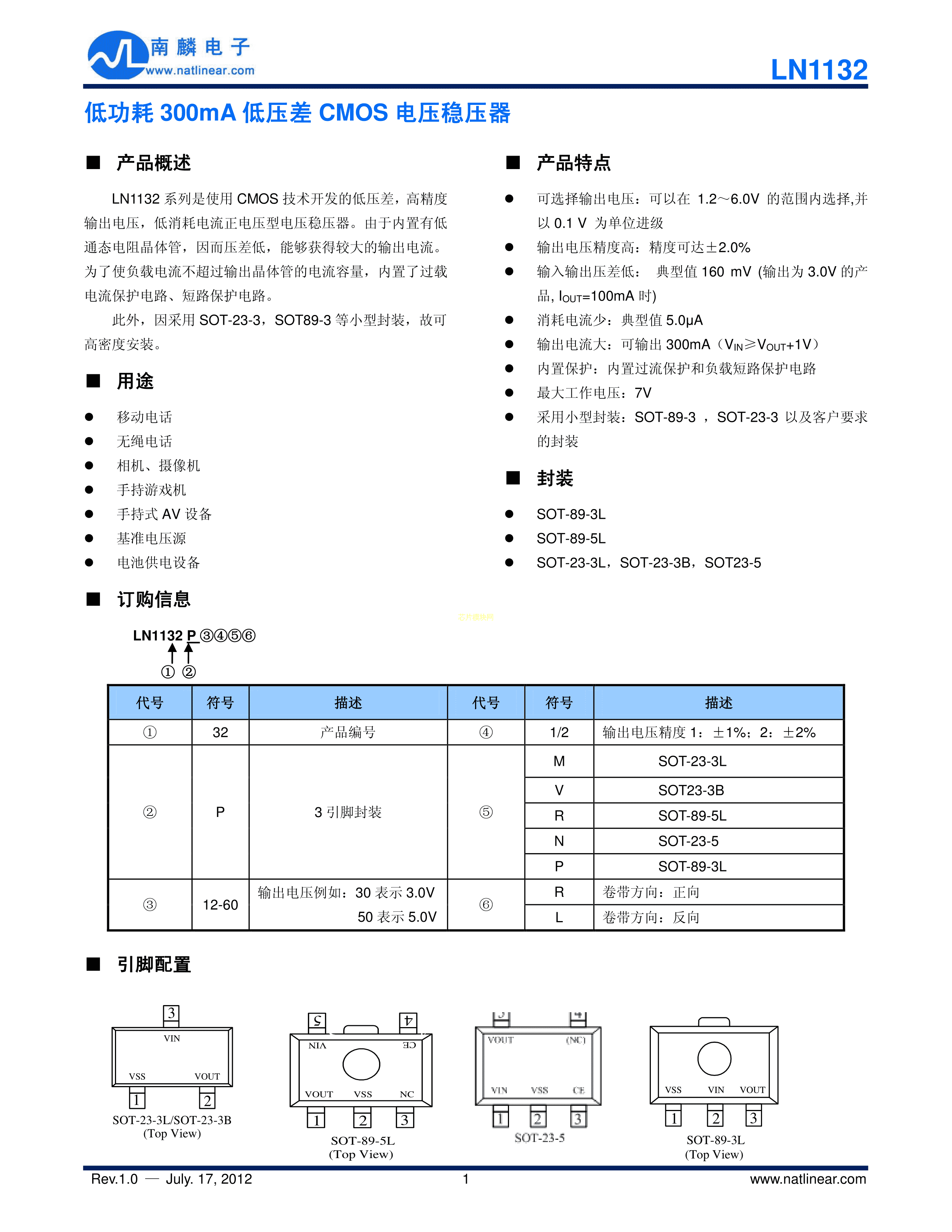LN1132P332MR-G数据手册SOT-23(SOT-23-3)封装natlinear(南麟)P