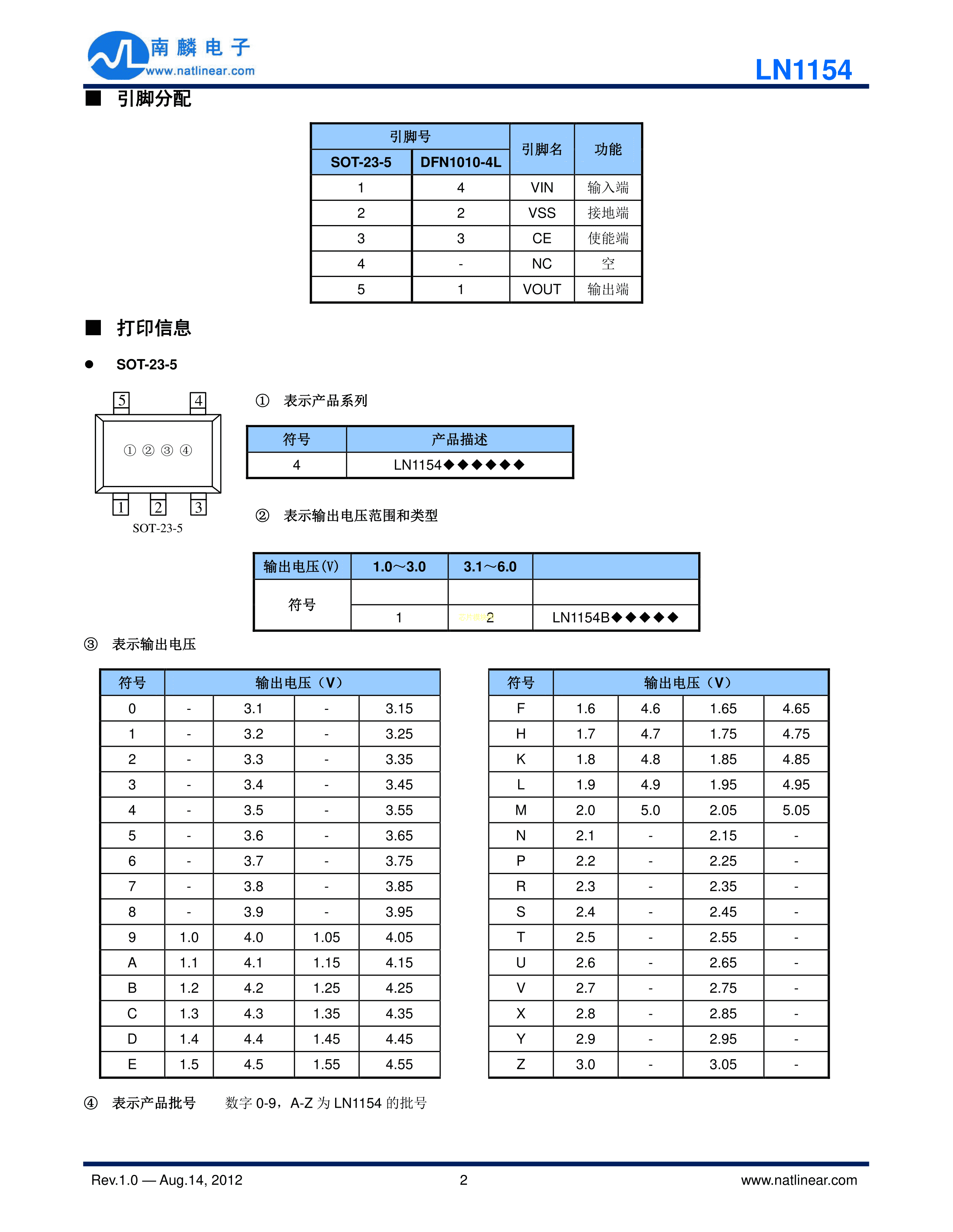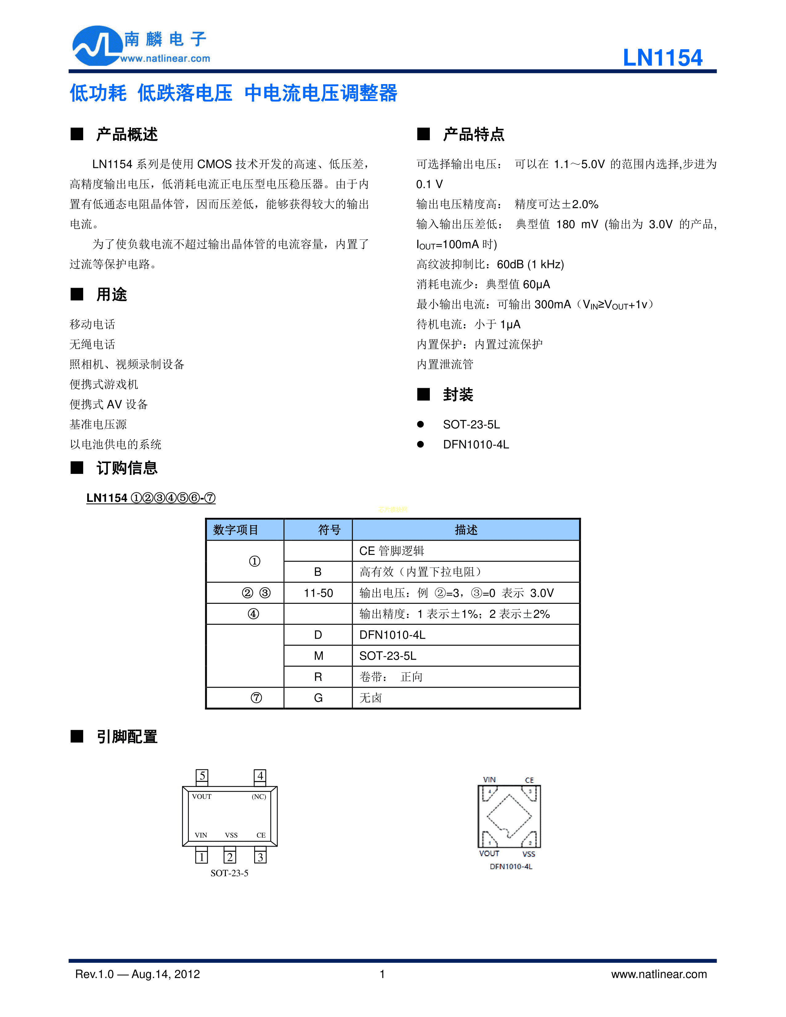 LN1154B152MR-G数据手册SOT-23-5L封装natlinear(南麟)PDF规格书,中英文下载