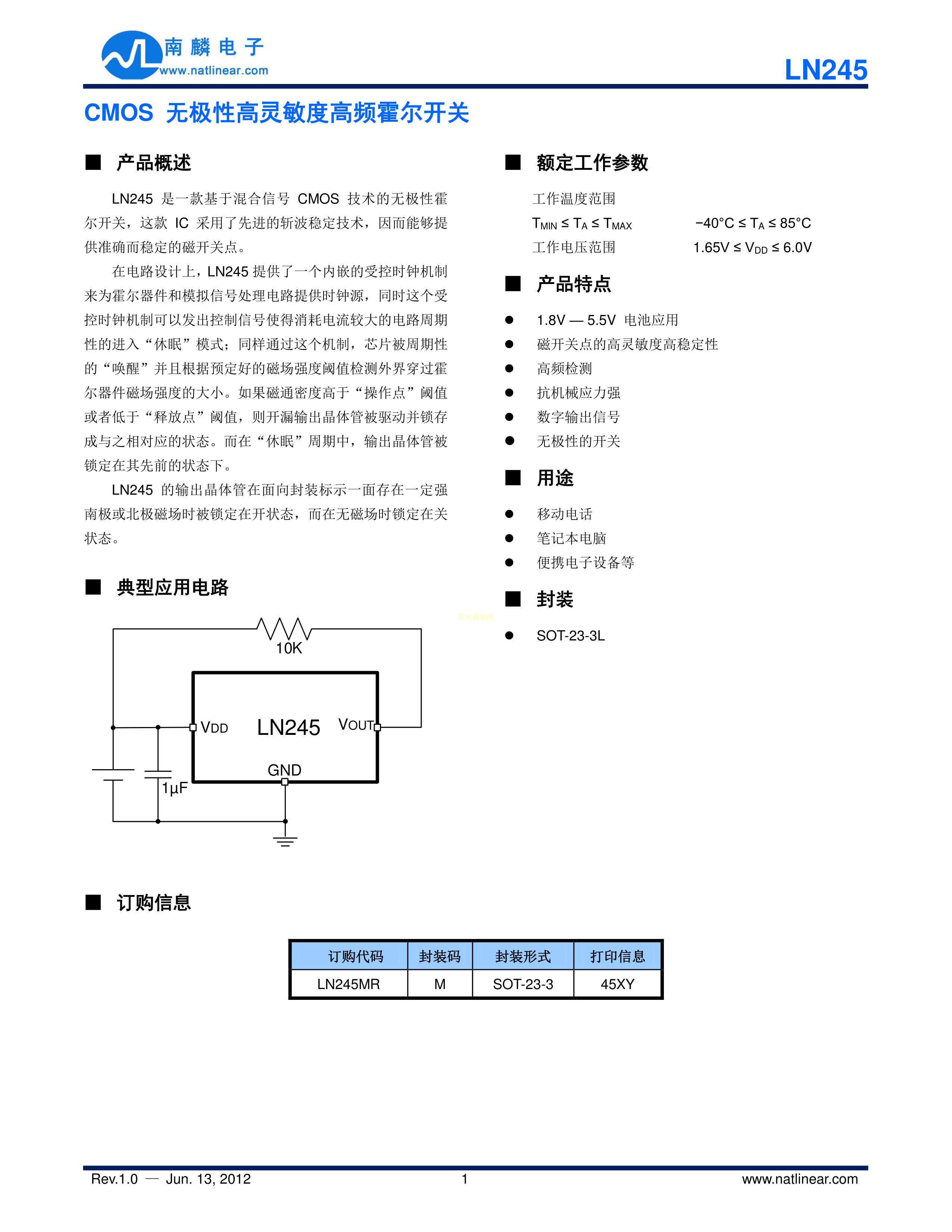 LN245MR数据手册SOT-23(SOT-23-3)封装natlinear(南麟)PDF规格书,中