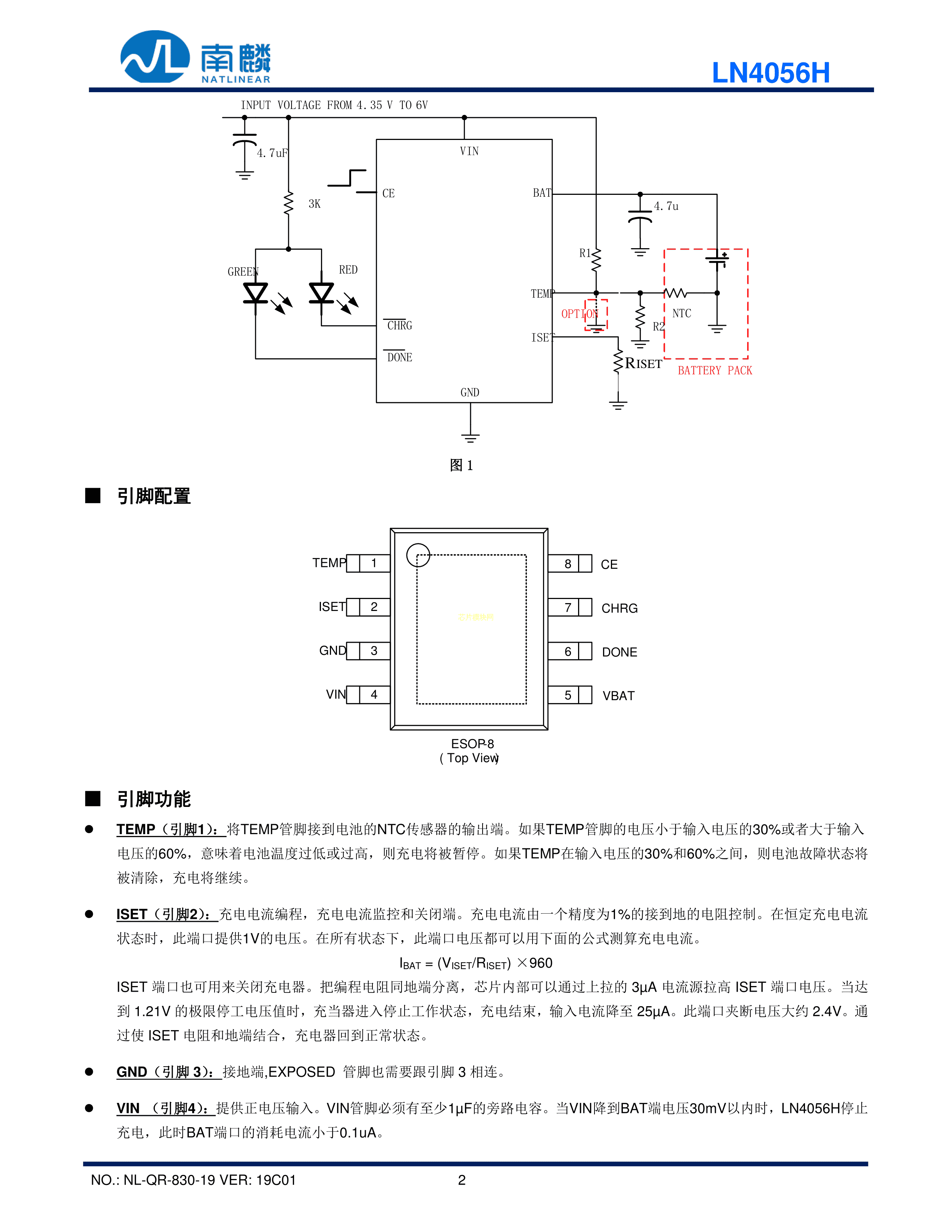 LN4056H数据手册ESOP-8封装natlinear(南麟)PDF规格书,中英文下载