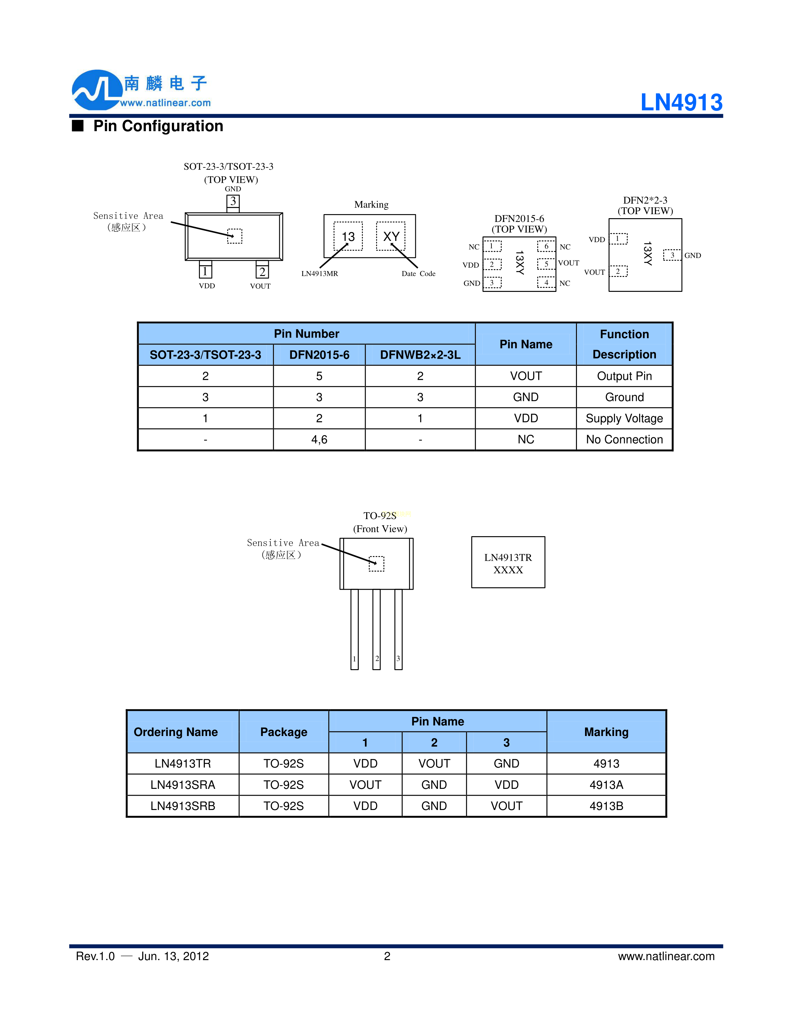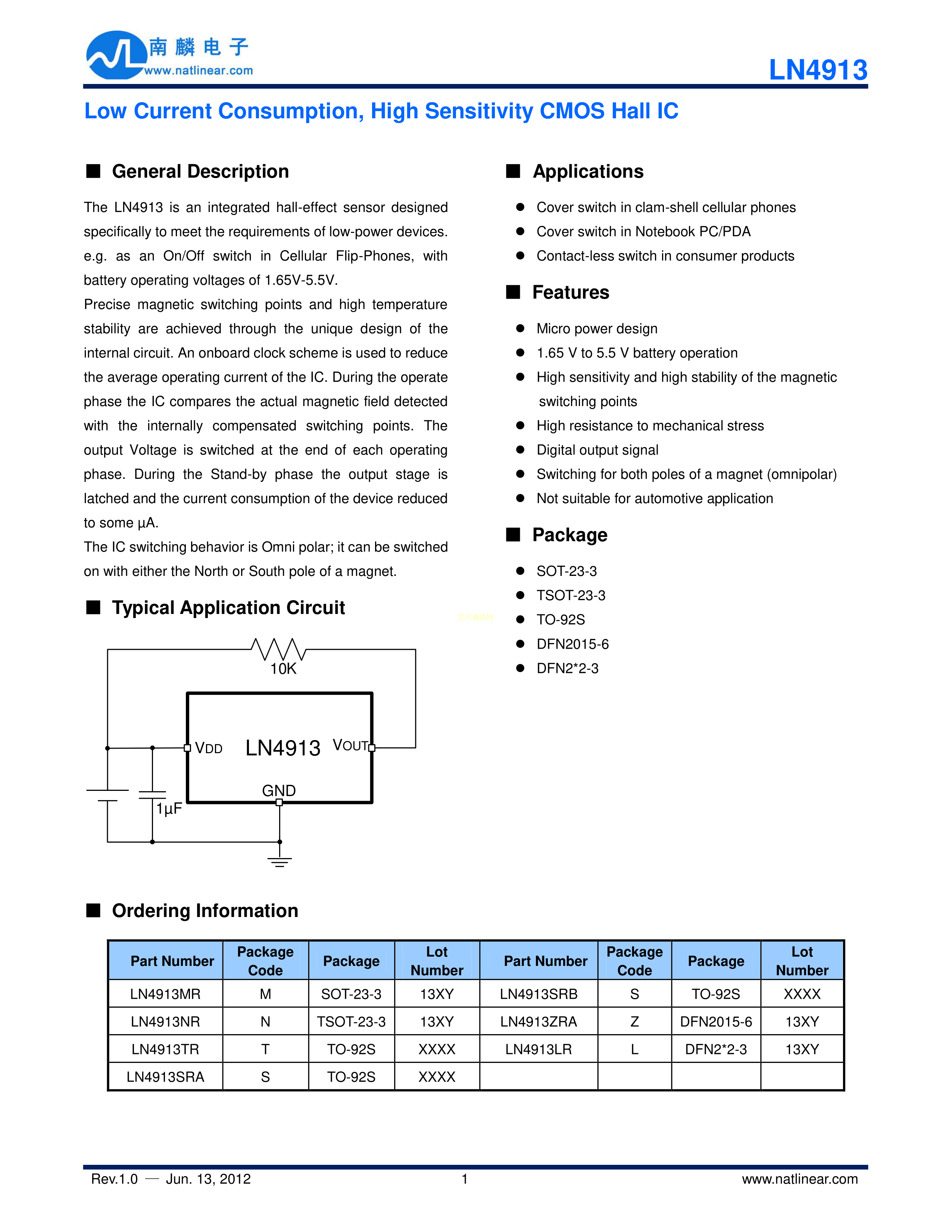 LN4913SRB数据手册TO-92S封装natlinear(南麟)PDF规格书,中英文下载
