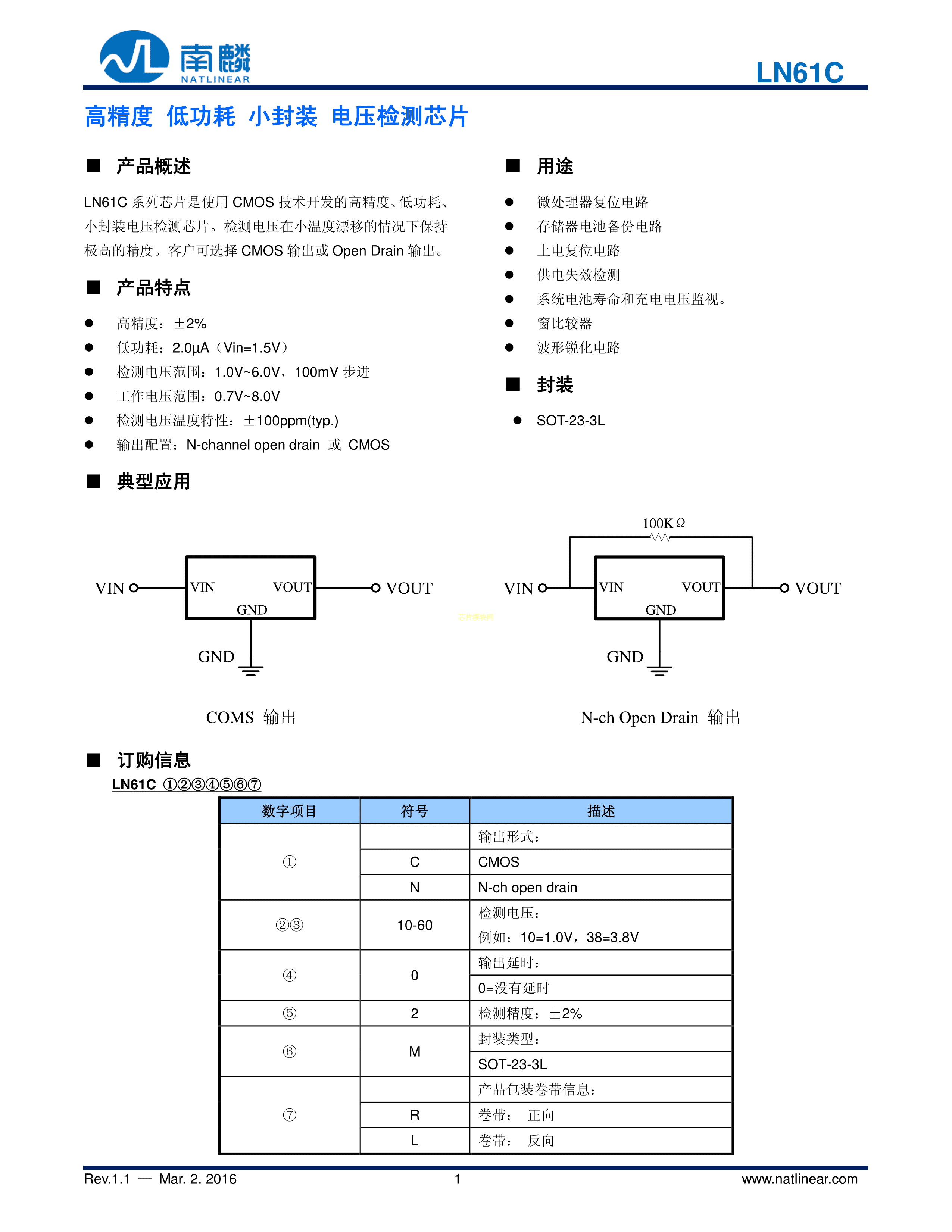 LN61CN3302MR-G数据手册SOT-23(SOT-23-3)封装natlinear(南麟)P