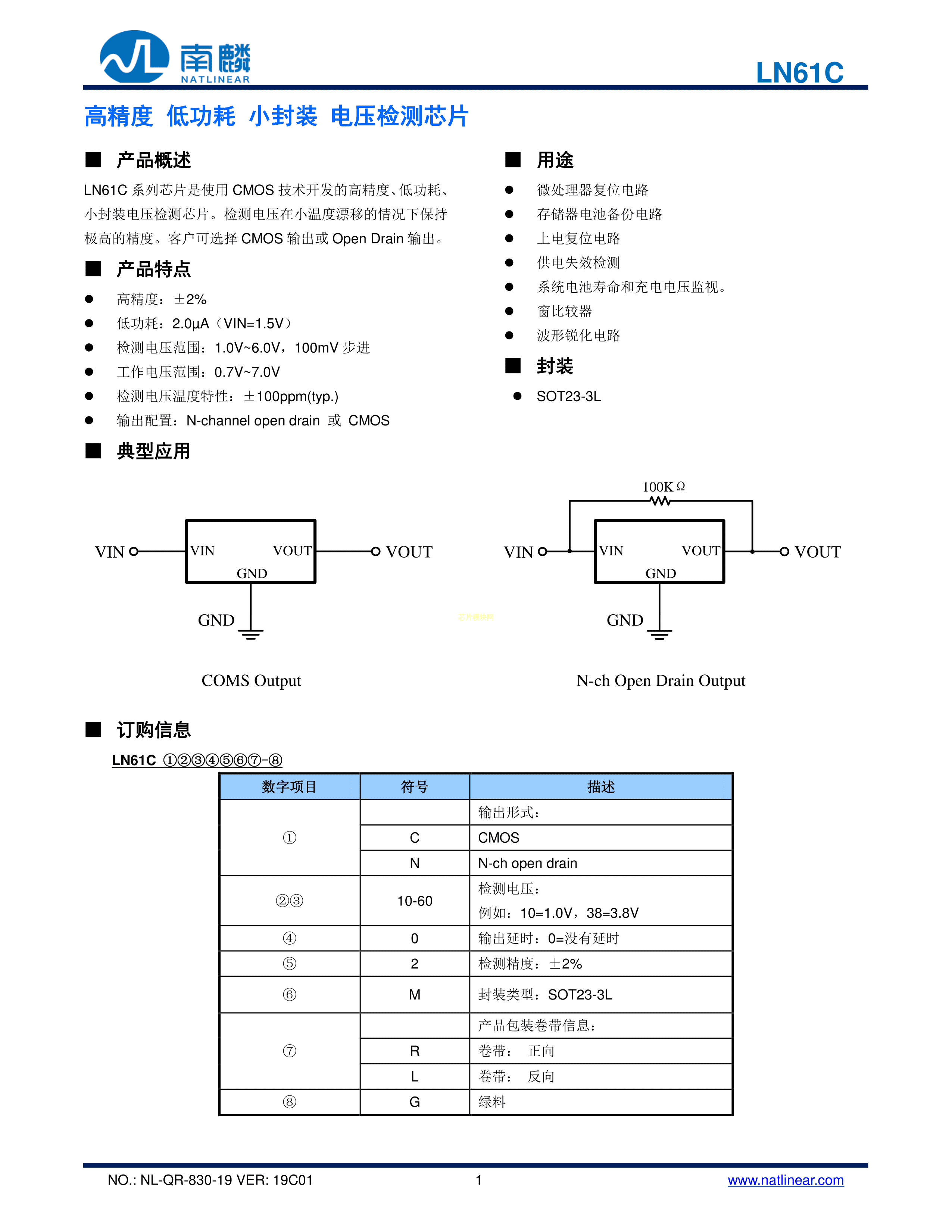 LN61CN3602MR-G数据手册SOT-23-3L封装natlinear(南麟)PDF规格书,中