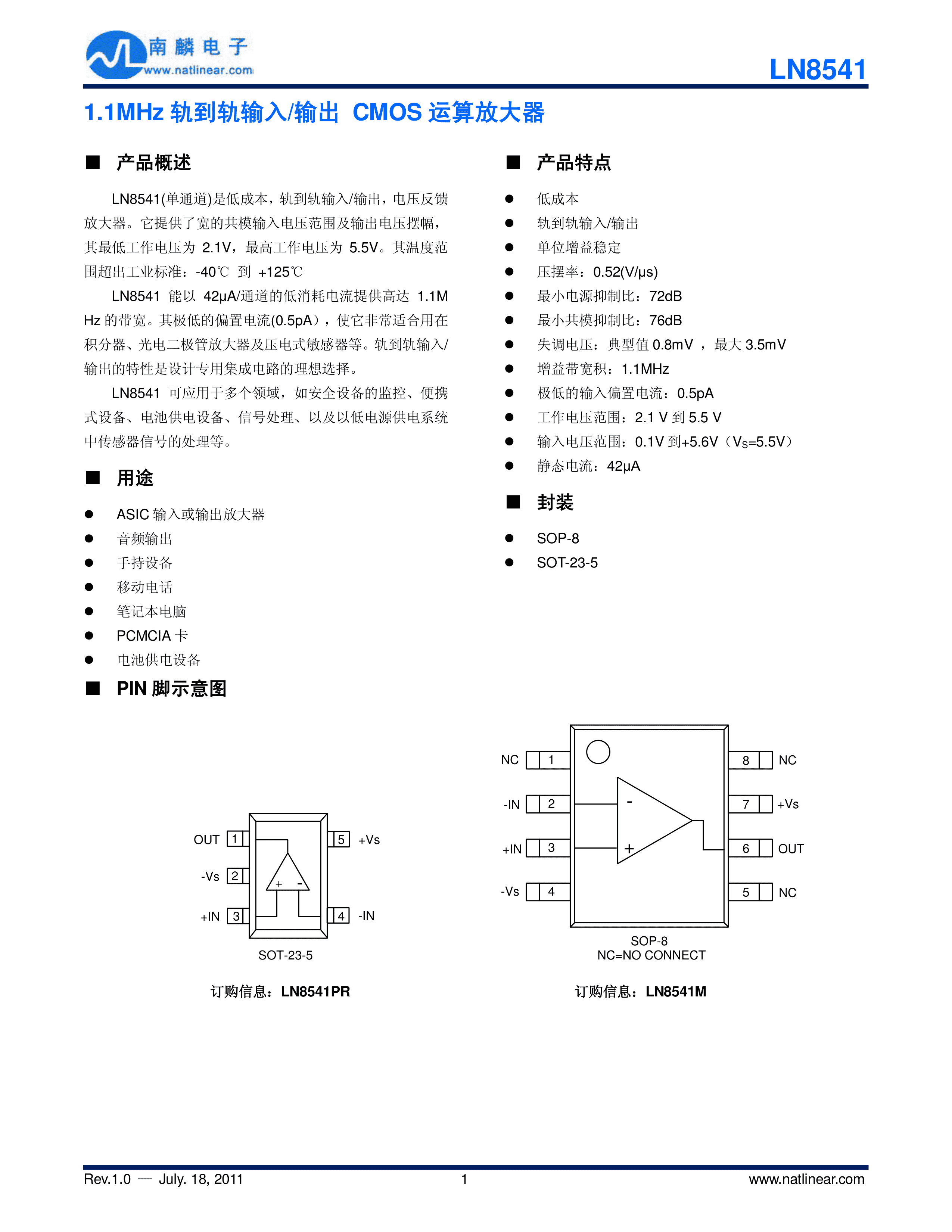 LN8541MR-G数据手册SOT-23-5封装natlinear(南麟)PDF规格书,中英文下载