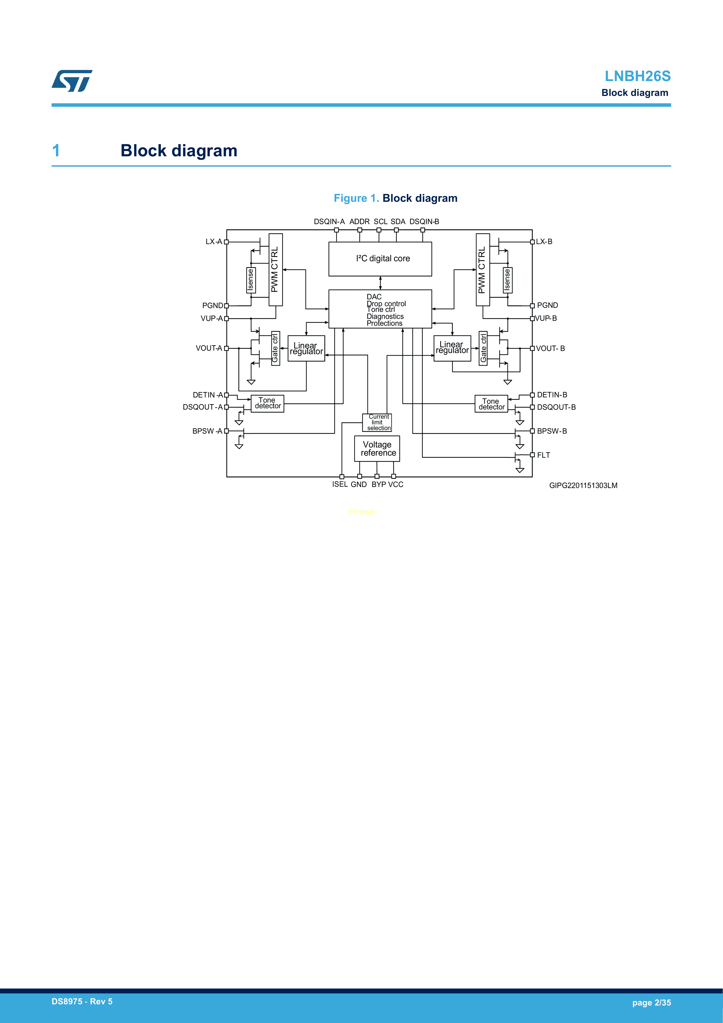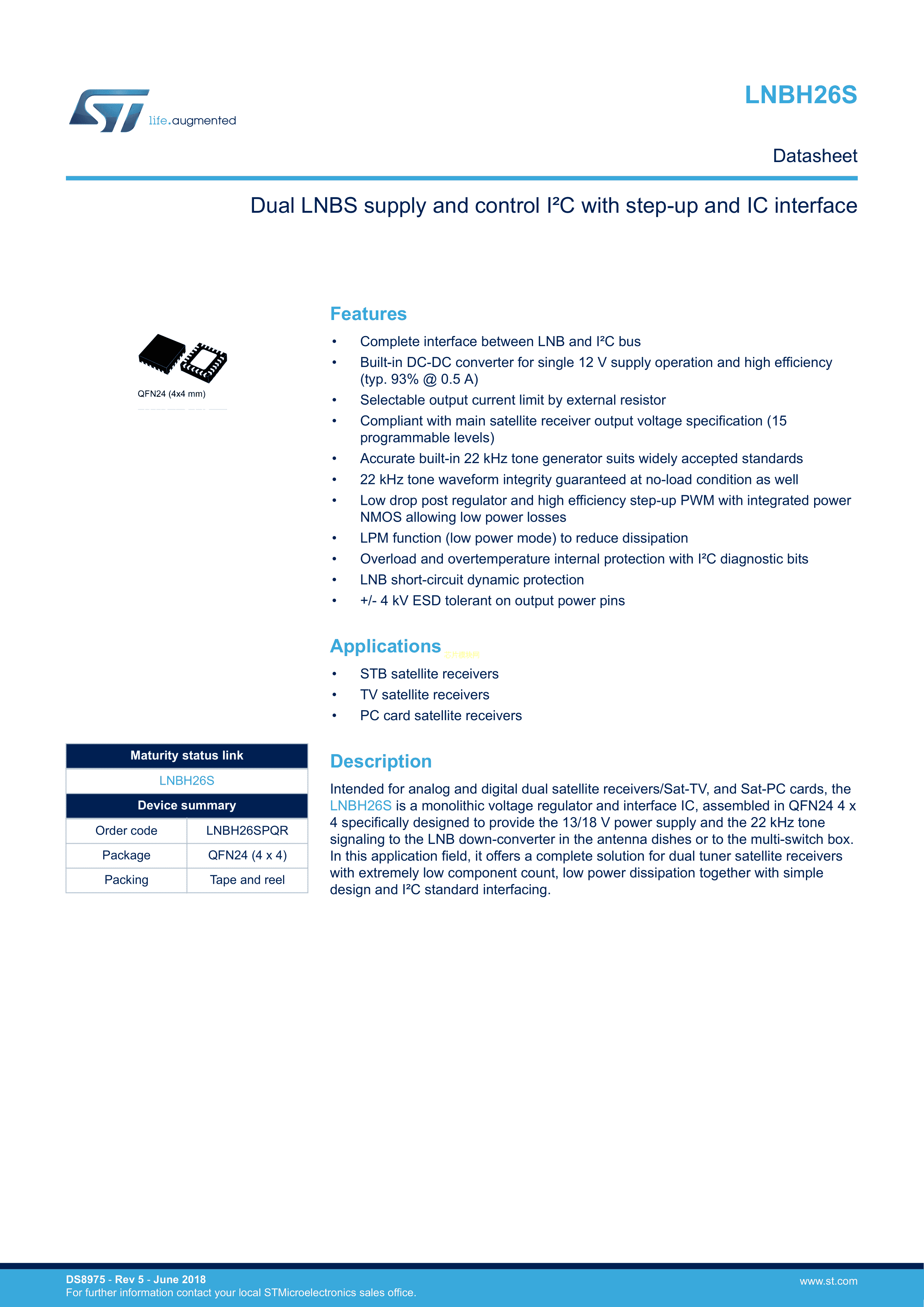 LNBH26SPQR数据手册QFN-24(4x4)封装ST(意法半导体)PDF规格书,中英文下载
