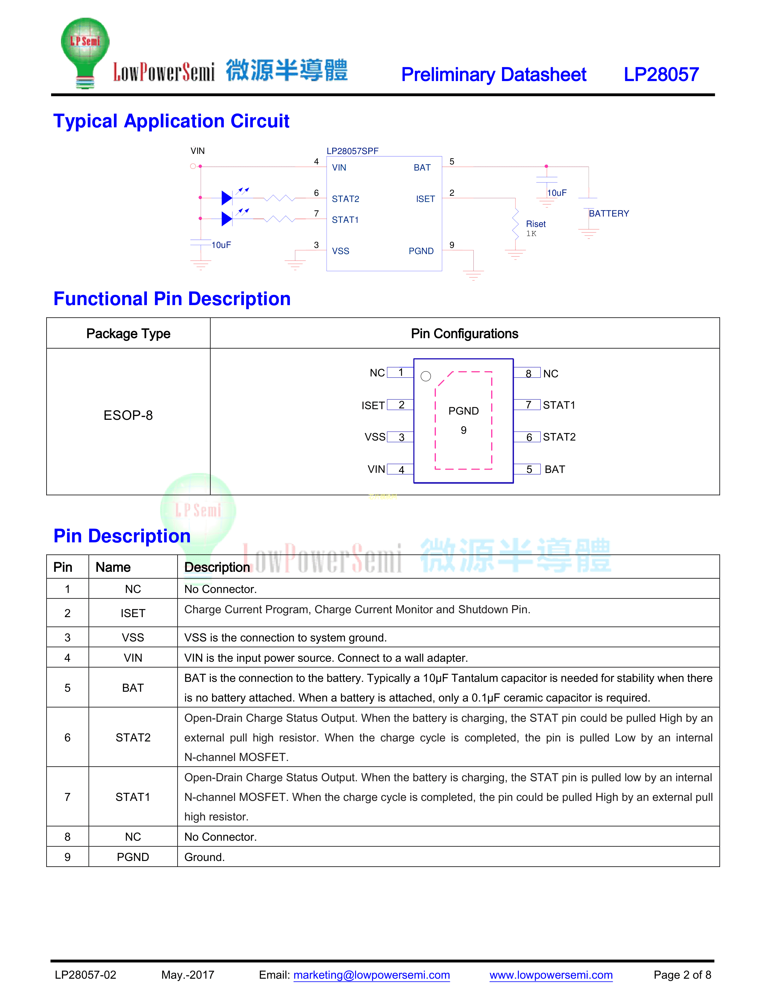 LP28057SPF数据手册ESOP-8封装LOWPOWER(微源半导体)PDF规格书,中英文下载