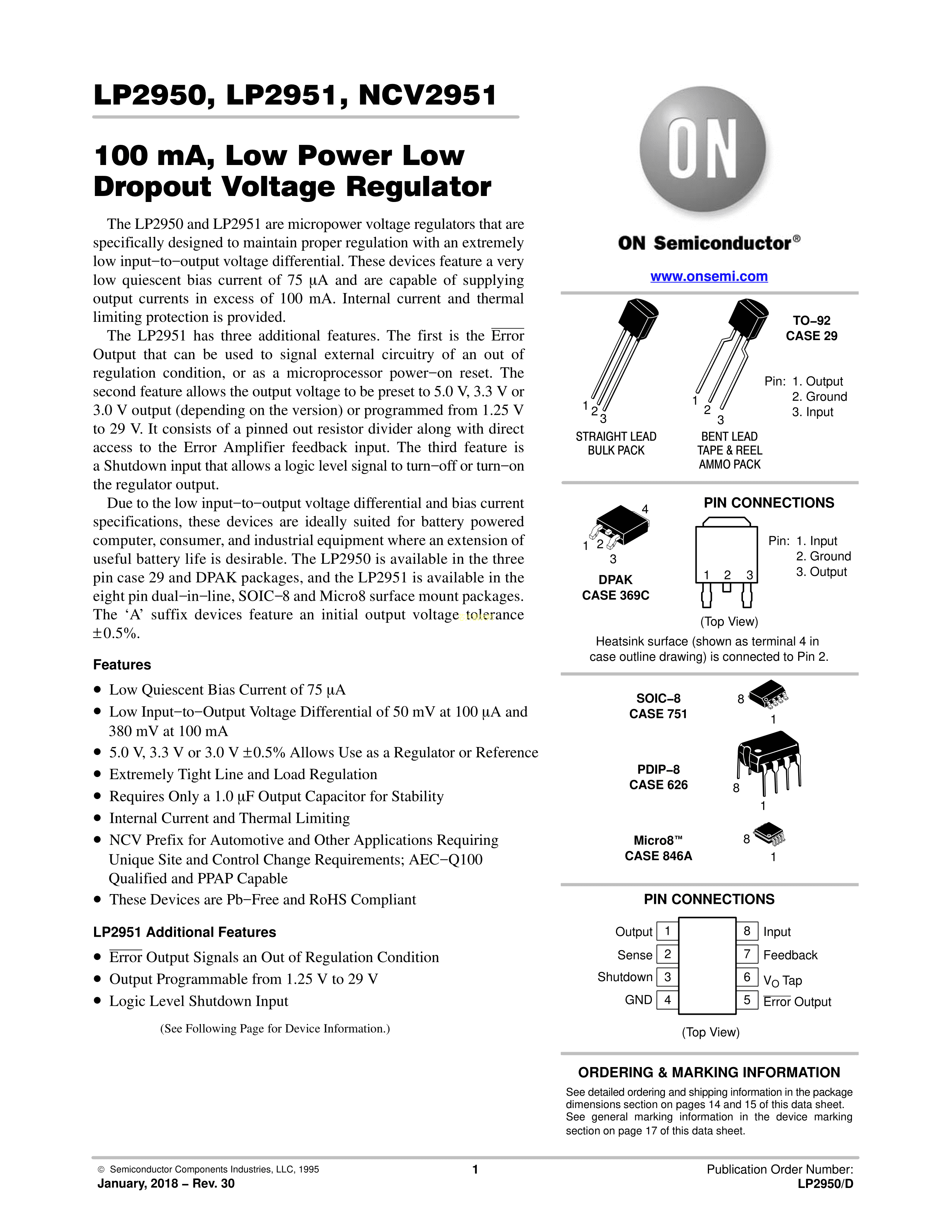 LP2950CDT-3.3RKG数据手册TO-252-2(DPAK)封装onsemi(安森美)PDF