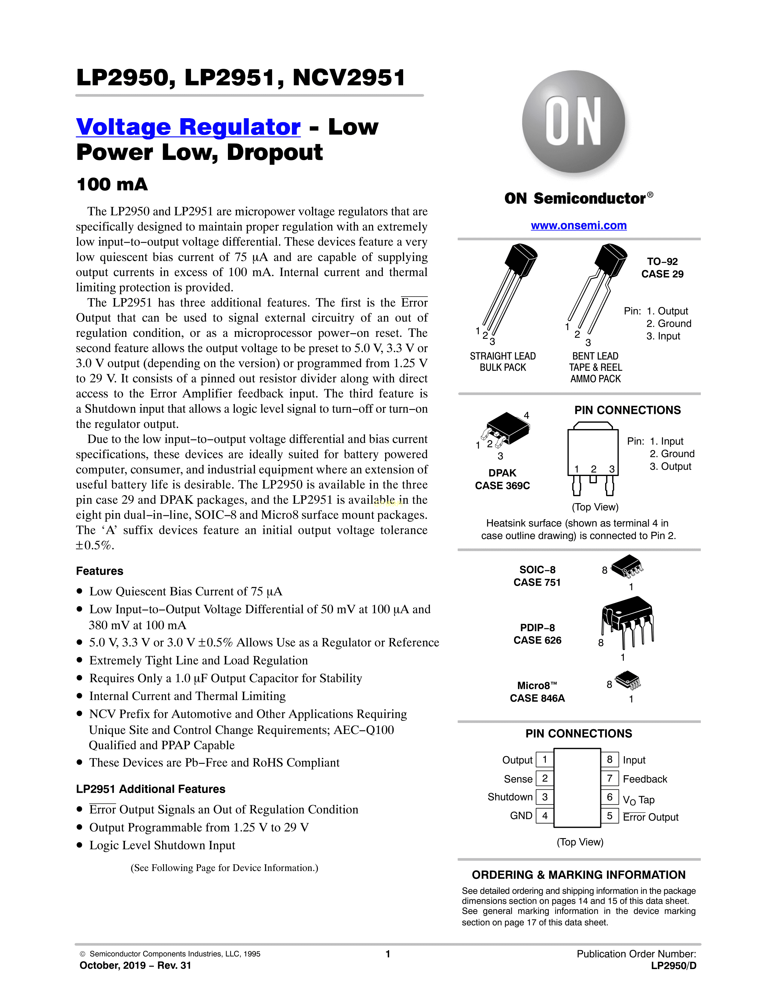 LP2951ACDM-3.0RG数据手册Micro-8封装onsemi(安森美)PDF规格书,中英文