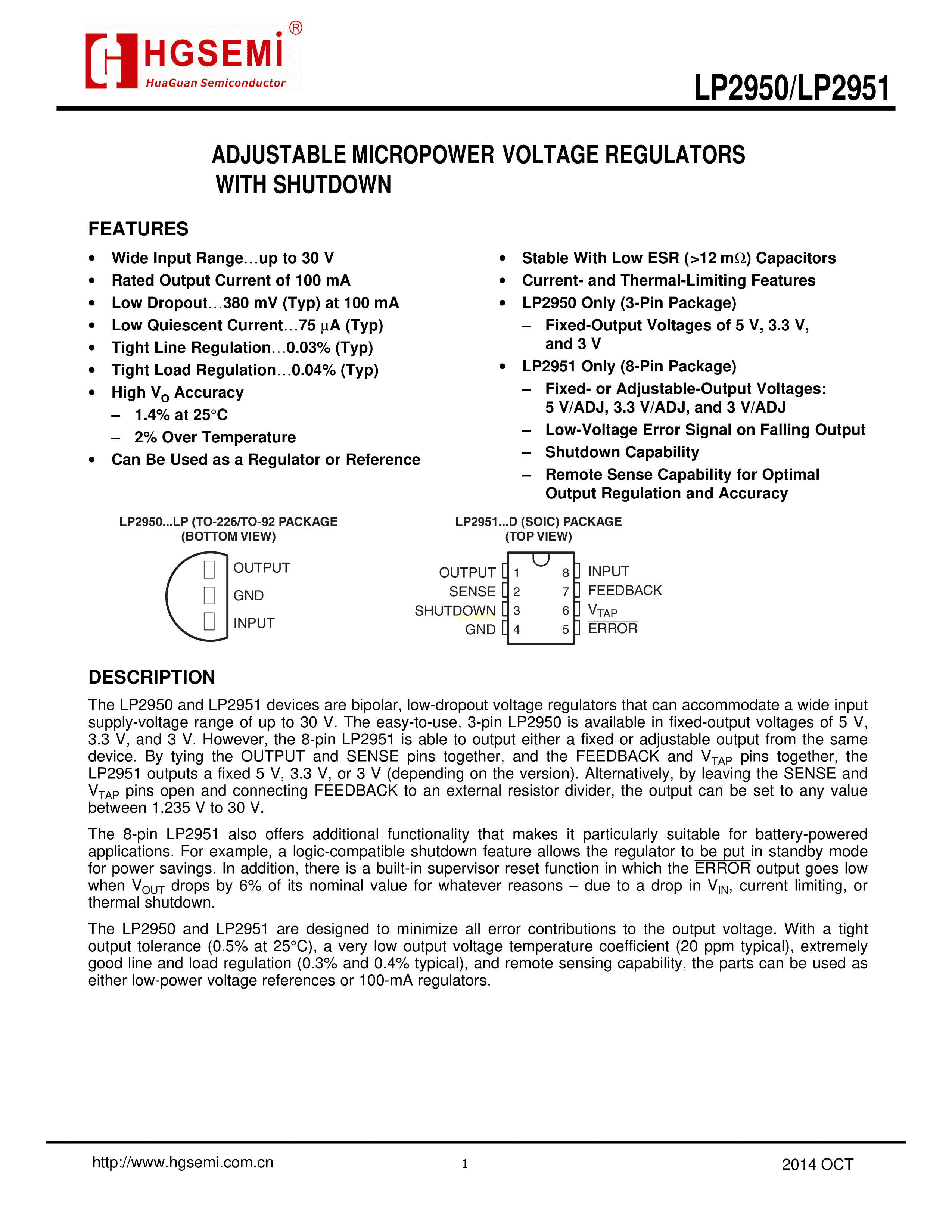 LP2951M-3.3-TR数据手册SOP-8封装HGSEMI(华冠)PDF规格书,中英文下载
