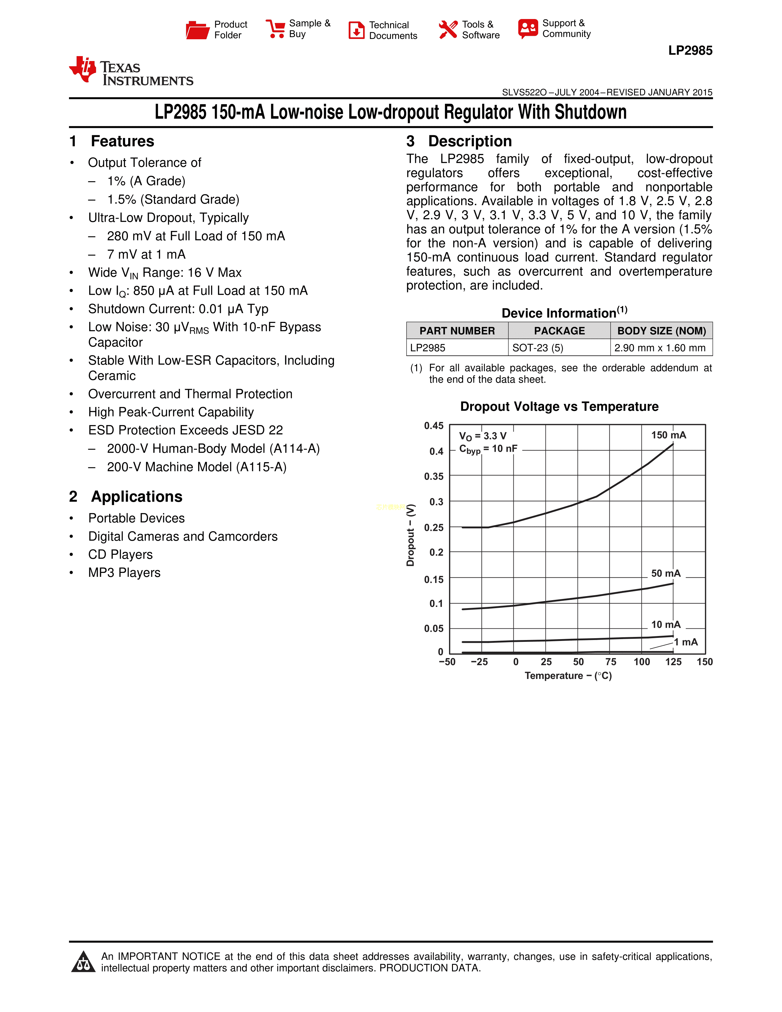 LP2985-18DBVR数据手册SOT-23-5封装TI(德州仪器)PDF规格书,中英文下载