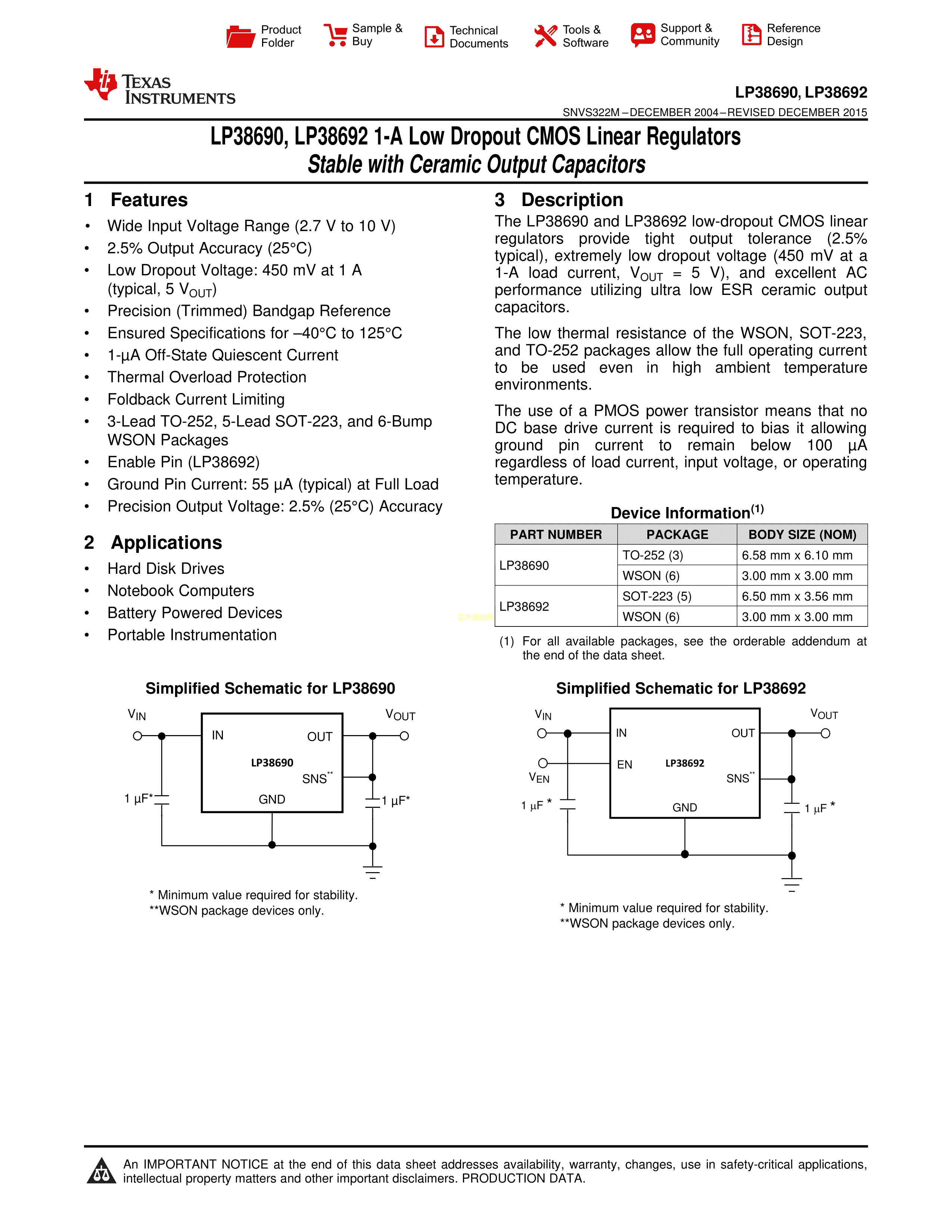 LP38692MP-3.3-NOPB数据手册SOT-223-5封装TI(德州仪器)PDF规格书,中英