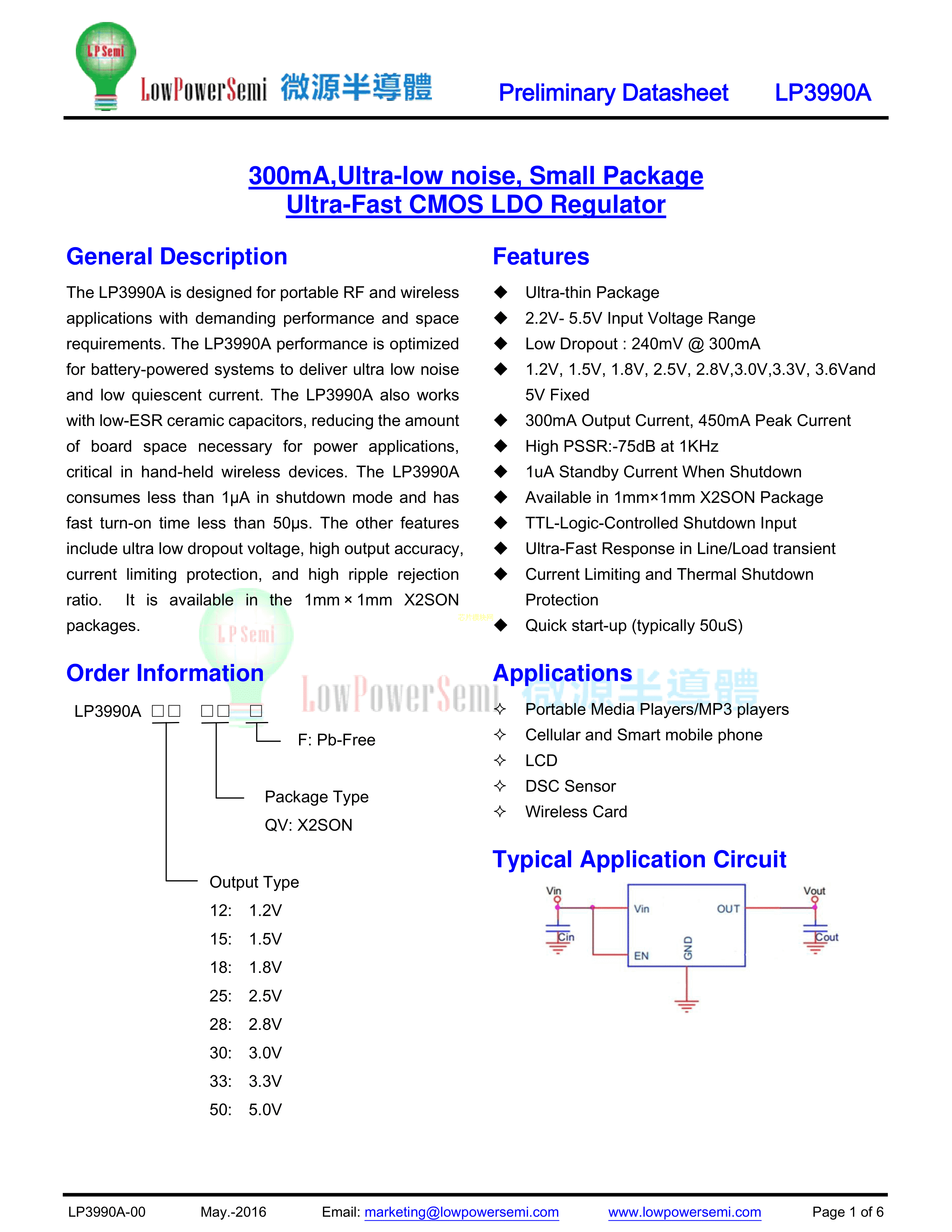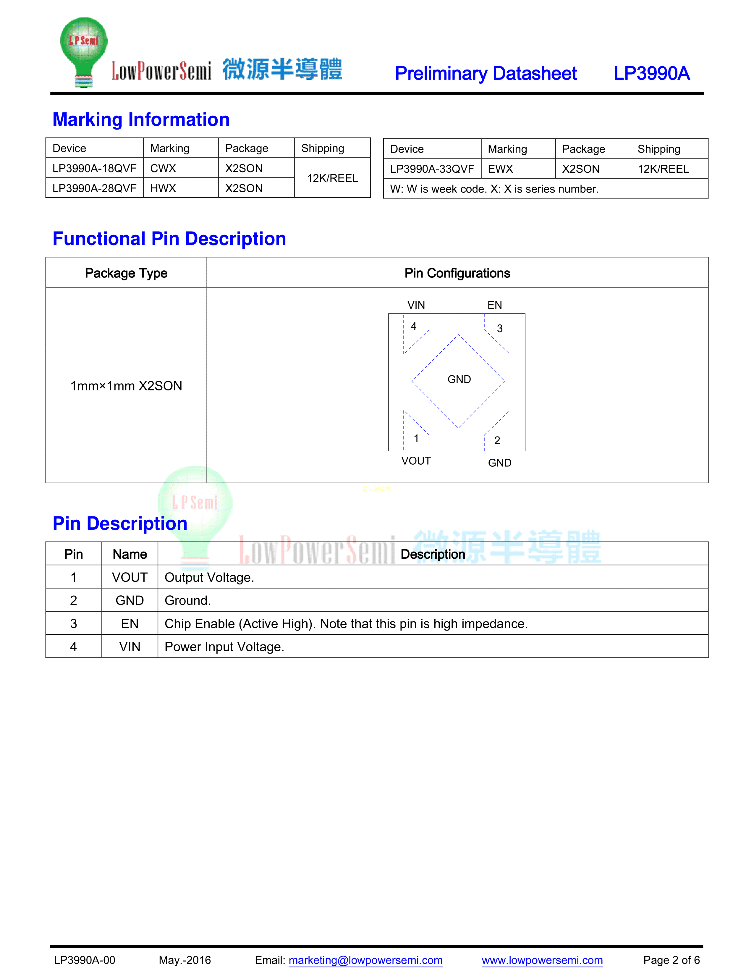 LP3990A-28QVF数据手册X2SON封装LOWPOWER(微源半导体)PDF规格书,中英文下载