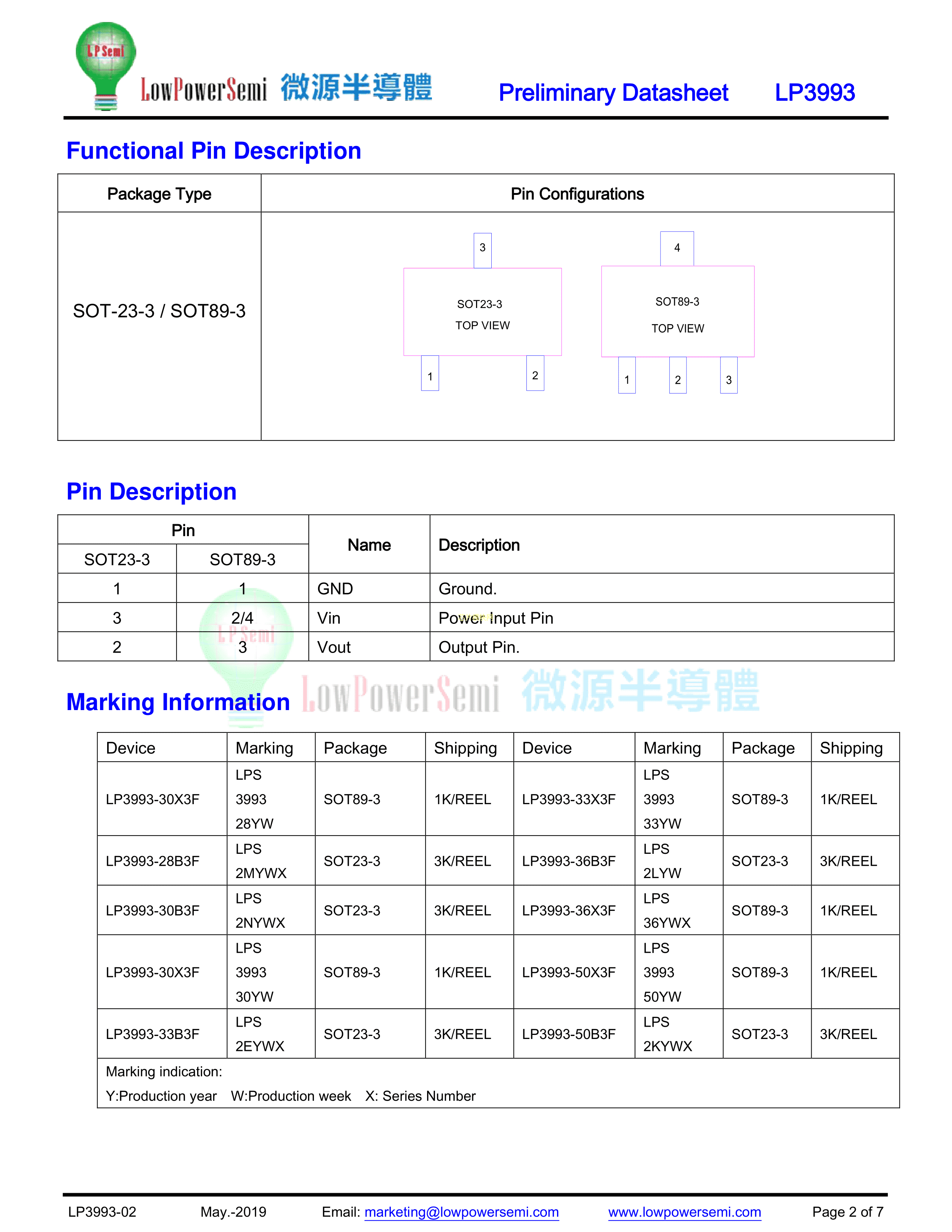 LP3993-30X3F数据手册SOT-89-3封装LOWPOWER(微源半导体)PDF规格书,中英文下载