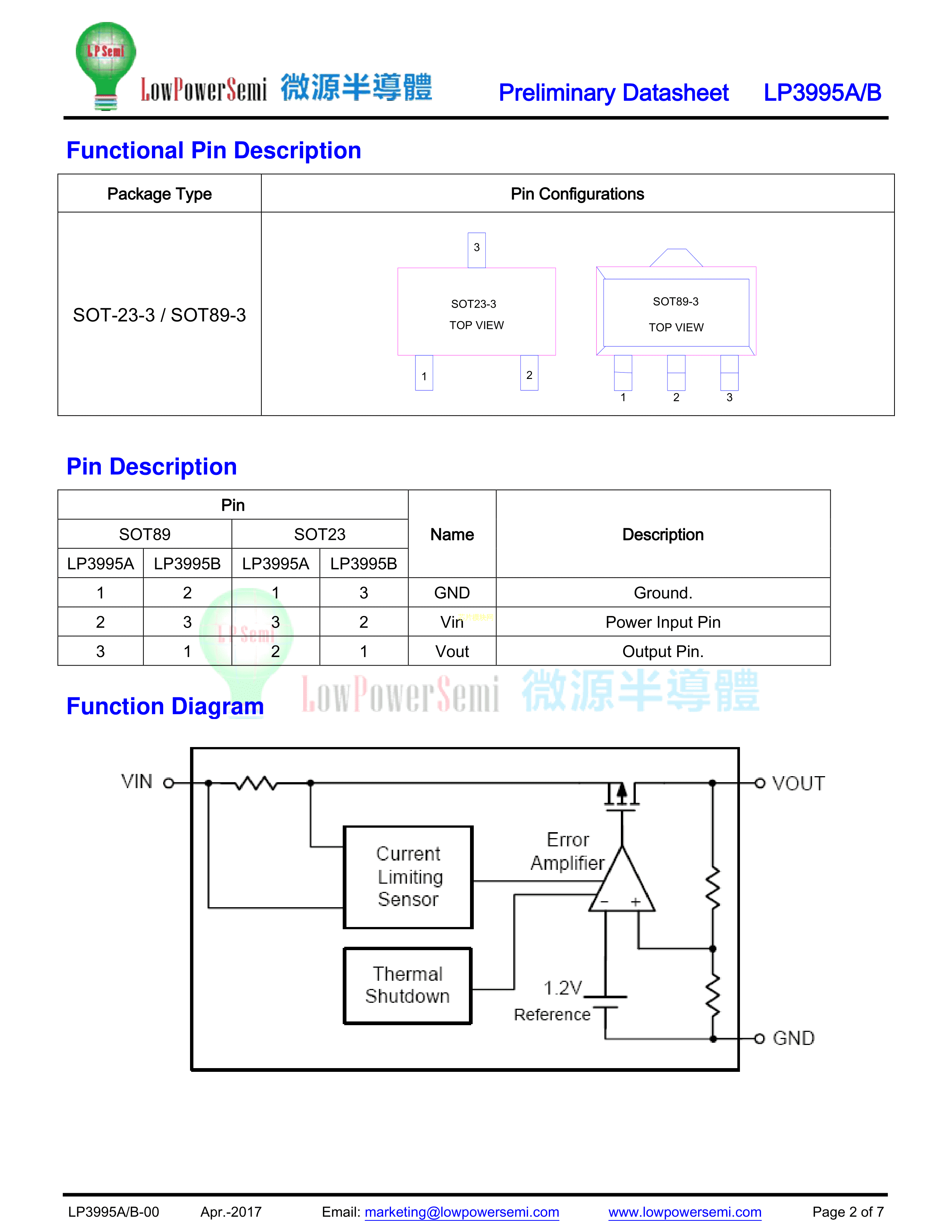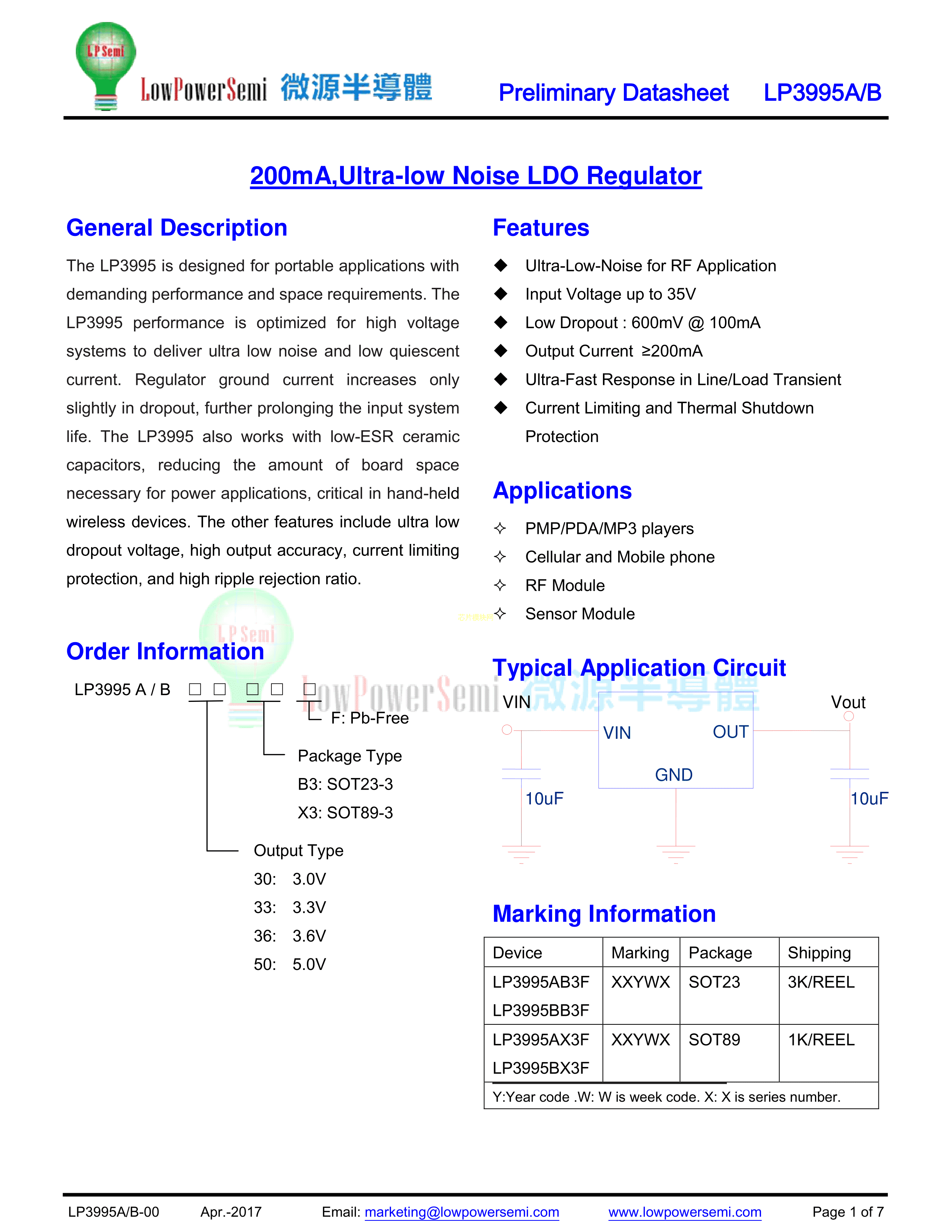 LP3995A-33X3F数据手册SOT-89-3封装LOWPOWER(微源半导体)PDF规格书,中英文下载