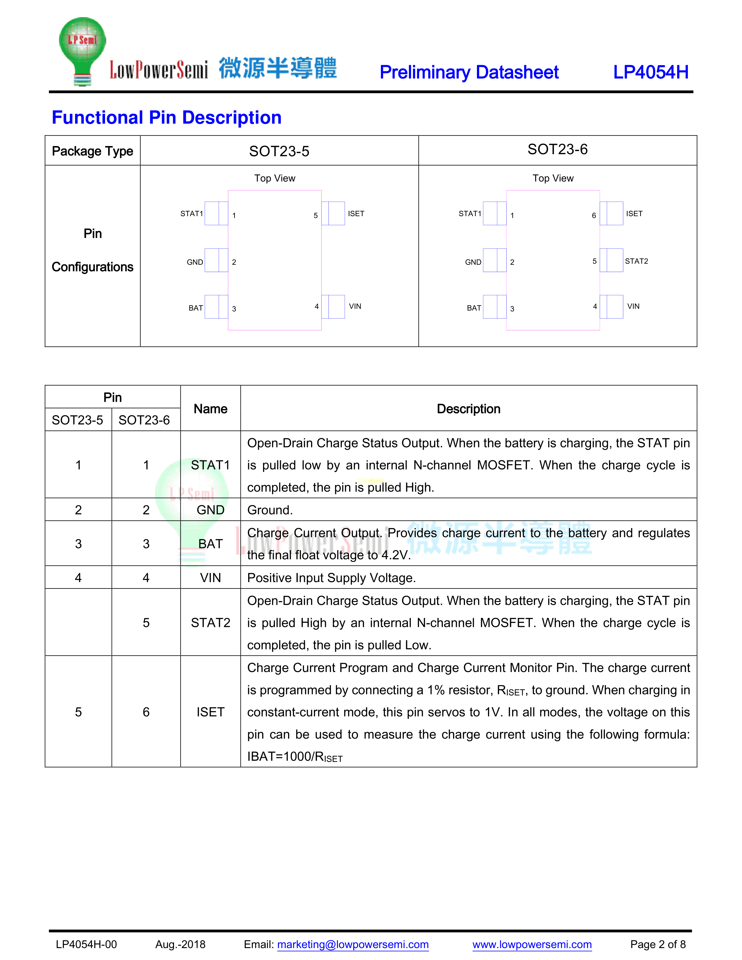 LP4054HB5F数据手册SOT-23-5封装LOWPOWER(微源半导体)PDF规格书,中英文下载