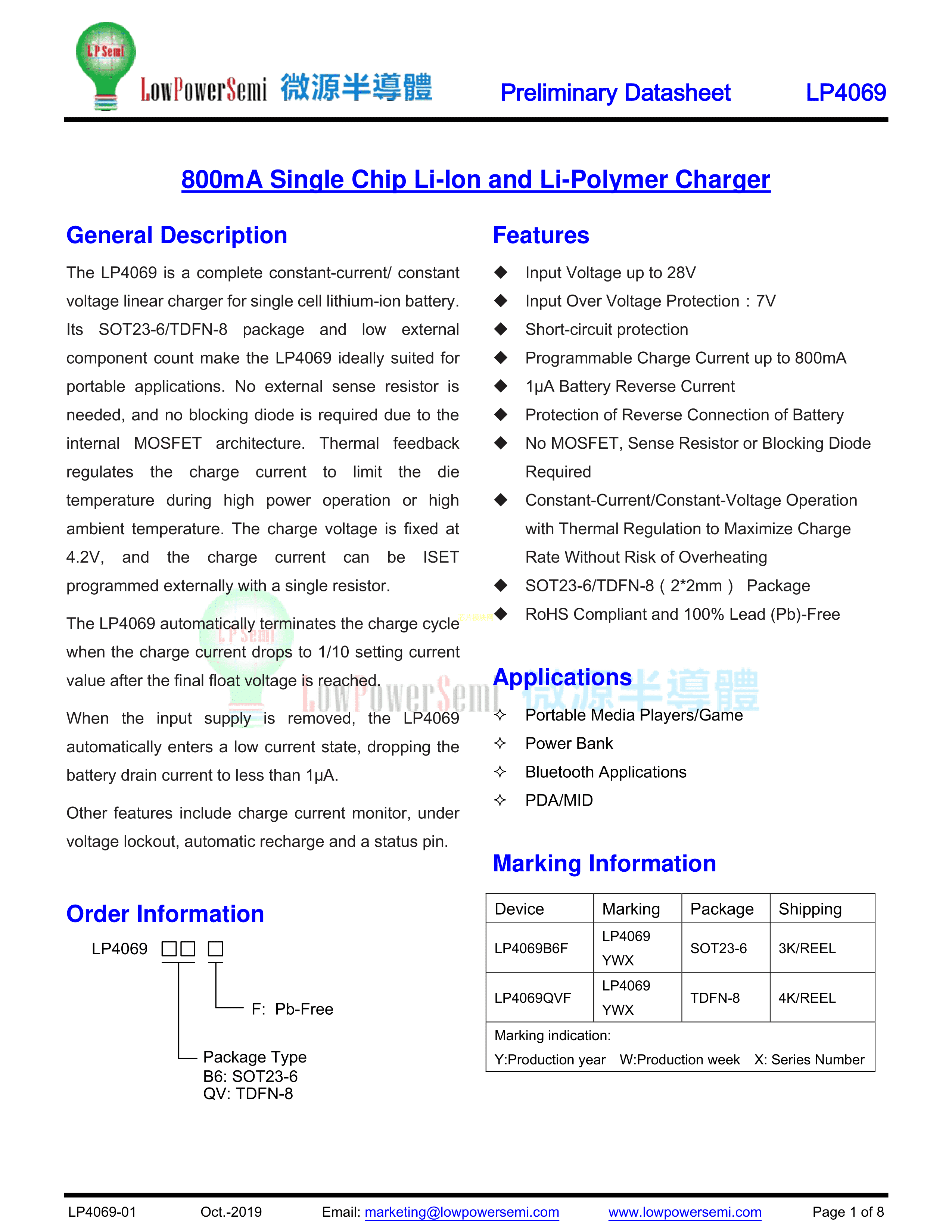 LP4069QVF数据手册TDFN-8封装LOWPOWER(微源半导体)PDF规格书,中英文下载