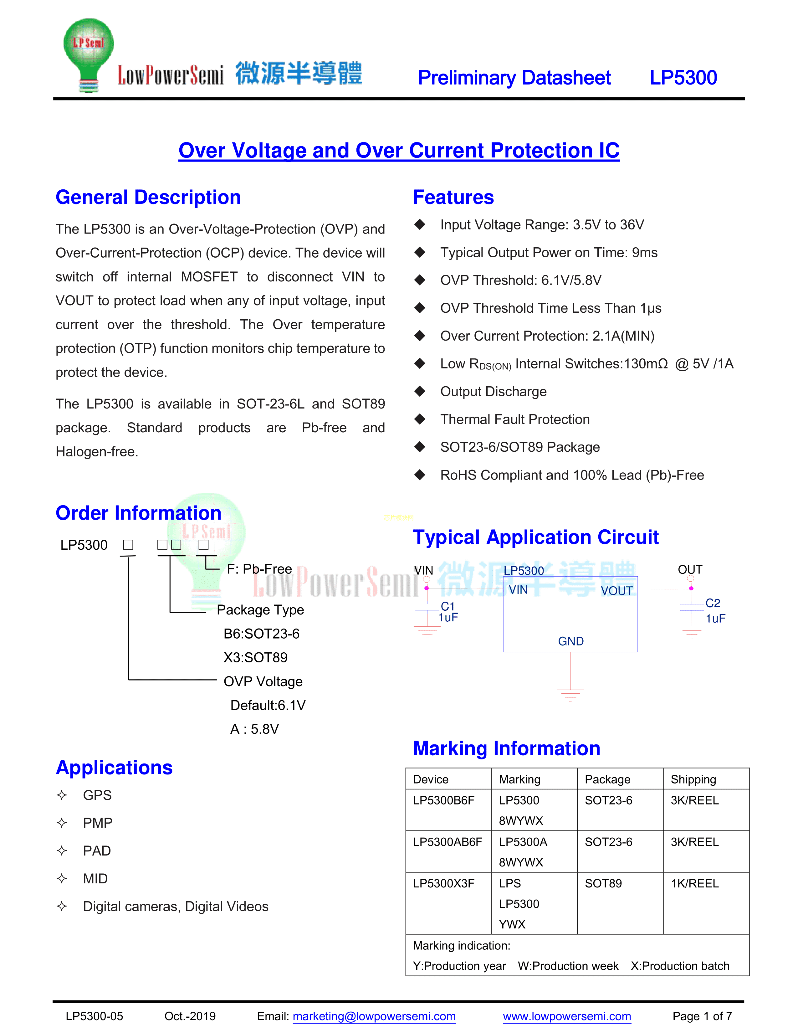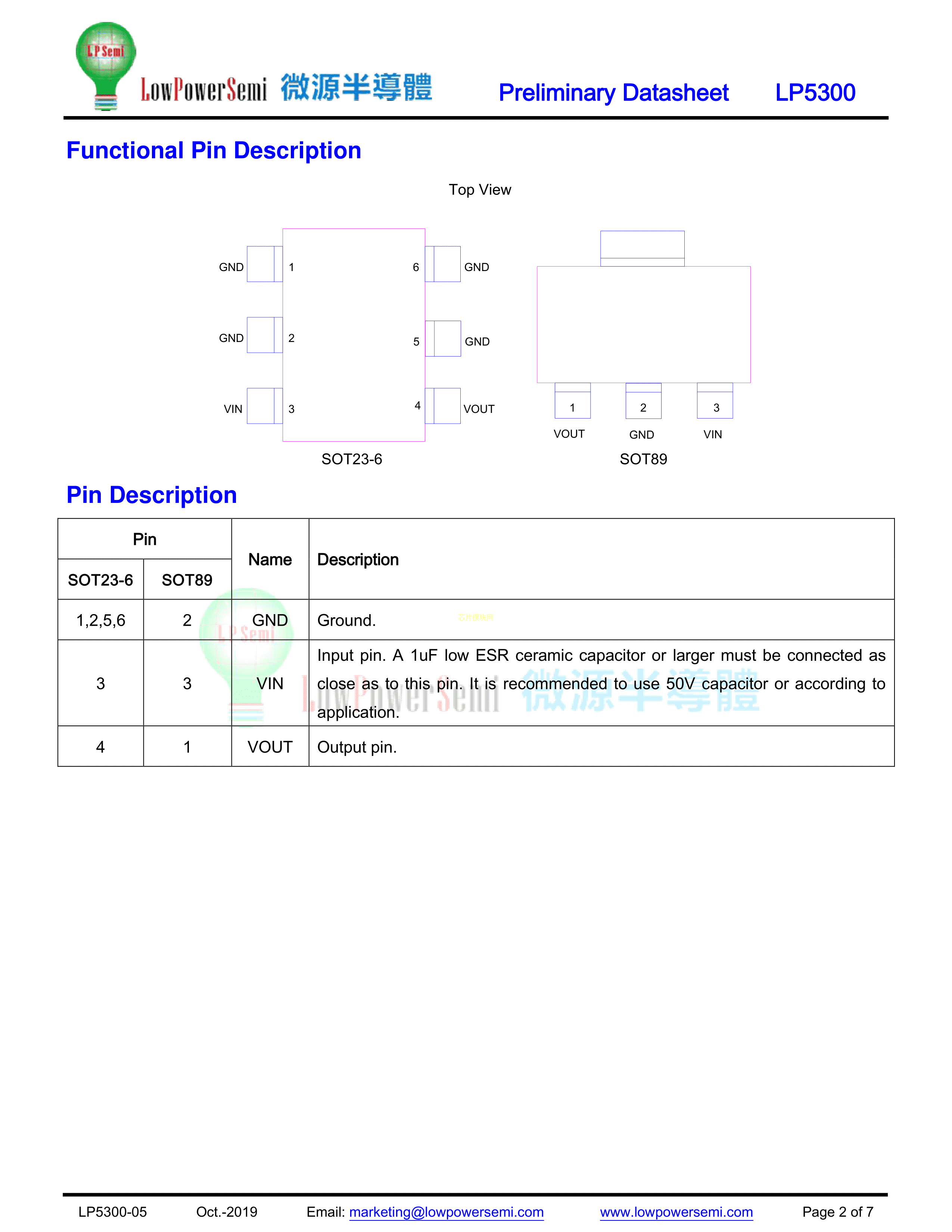 LP5300AB6F数据手册SOT-23-6封装LOWPOWER(微源半导体)PDF规格书,中英文下
