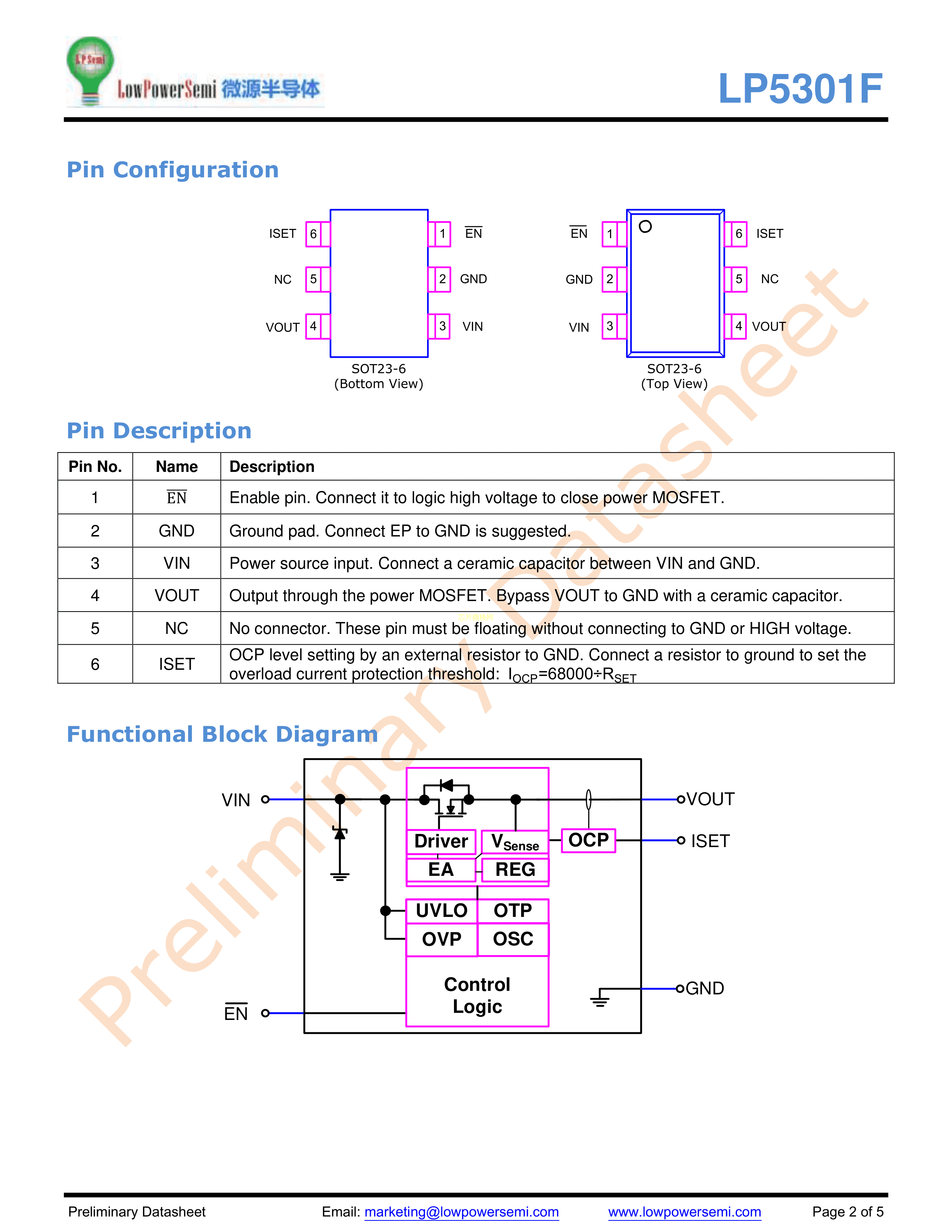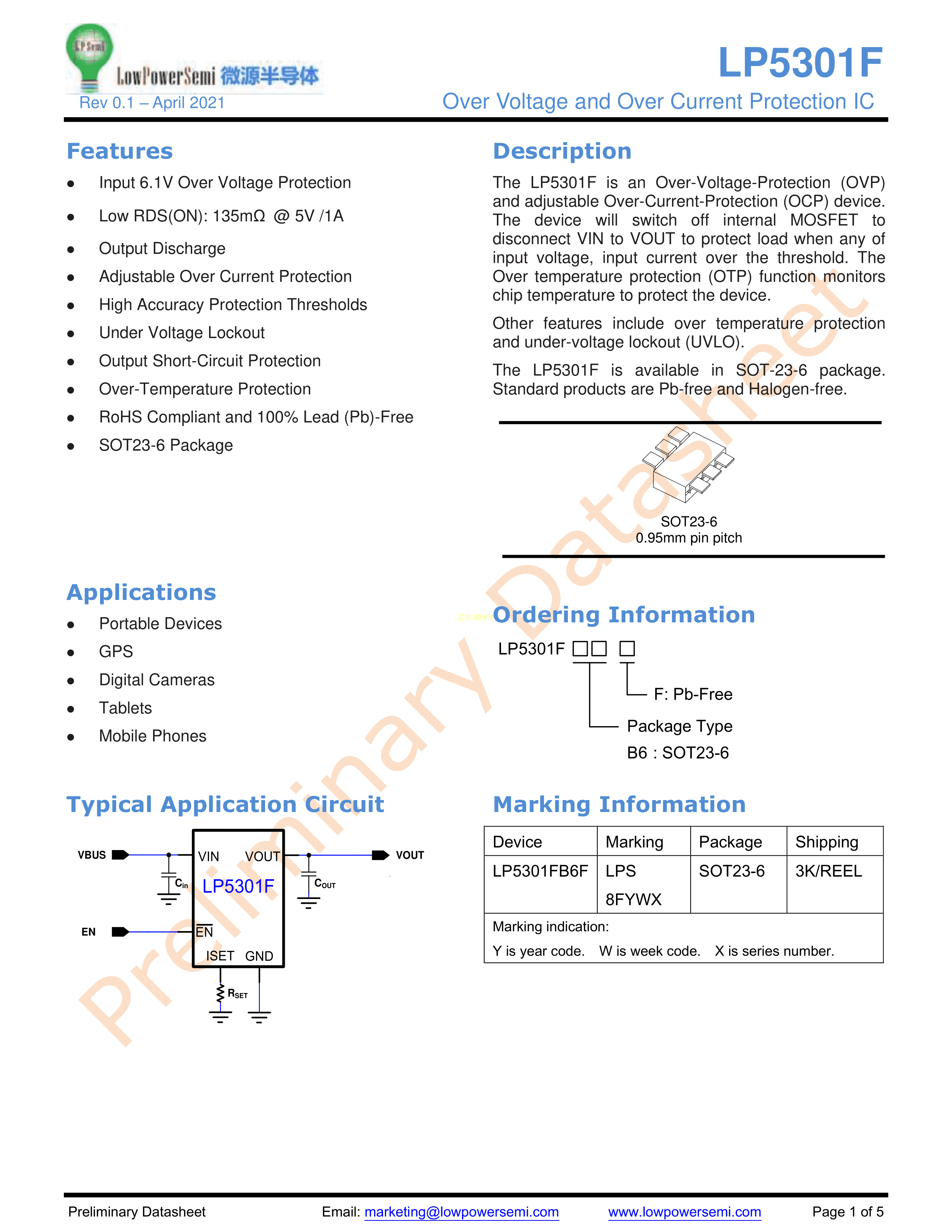 LP5301FB6F数据手册SOT-23-6封装LOWPOWER(微源半导体)PDF规格书,中英文下载