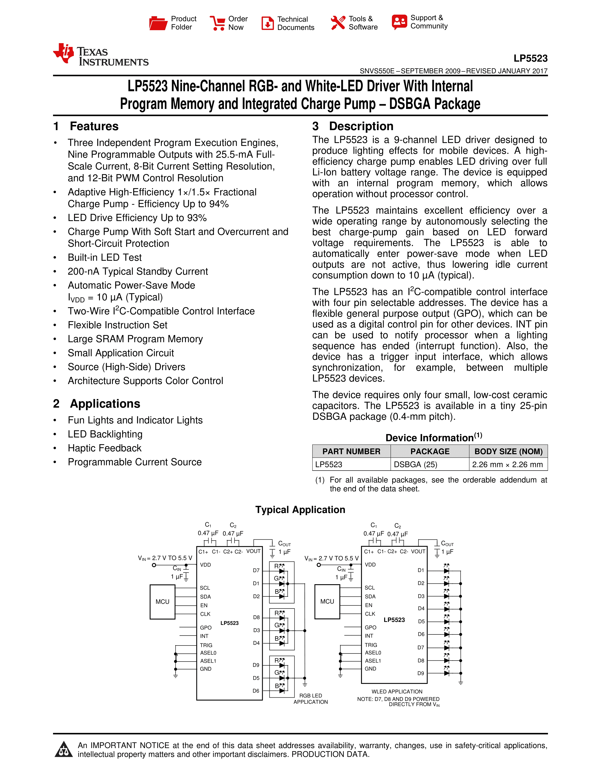 LP5523TMX-NOPB数据手册WFBGA-25封装TI(德州仪器)PDF规格书,中英文下载