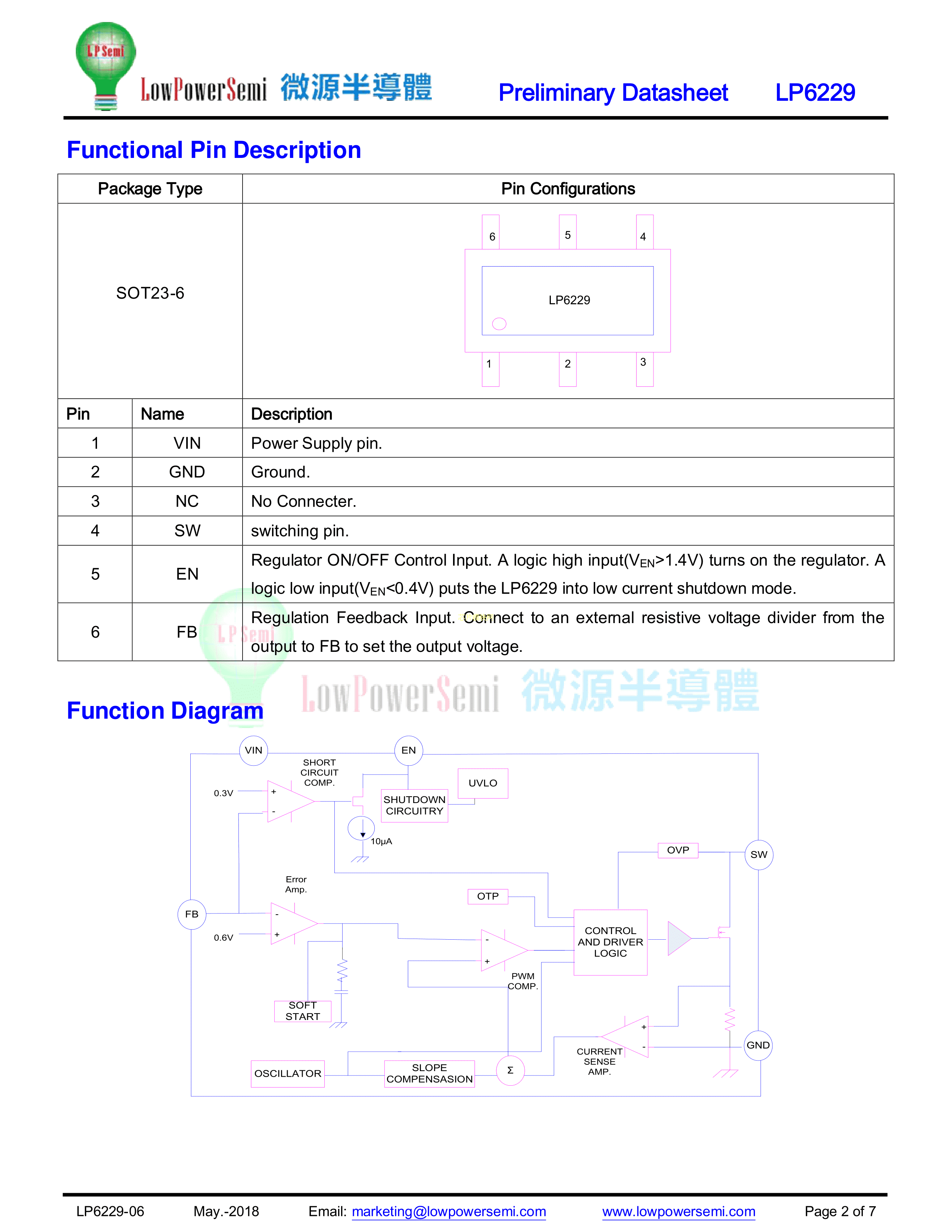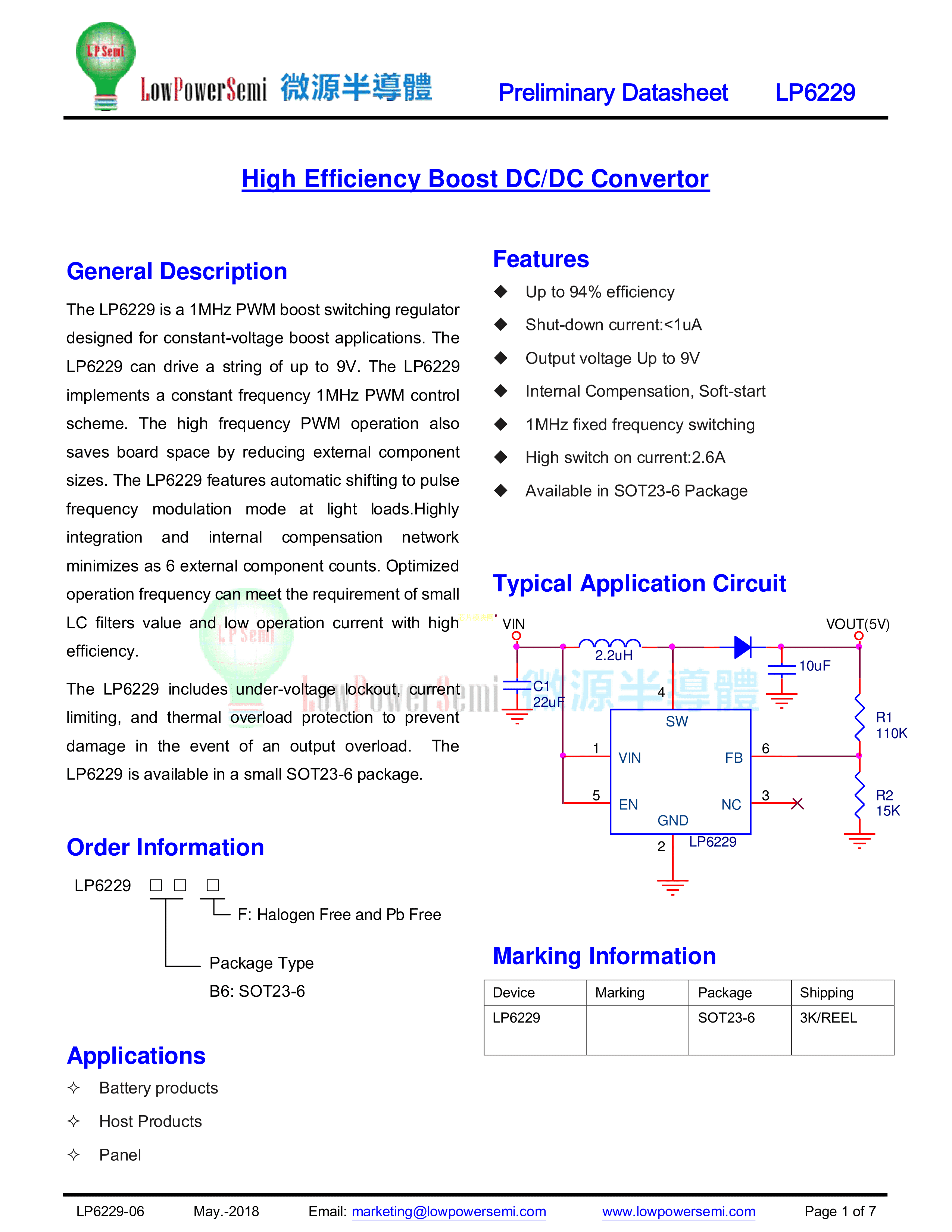 LP6229B6F数据手册SOT-23-6封装LOWPOWER(微源半导体)PDF规格书,中英文下载