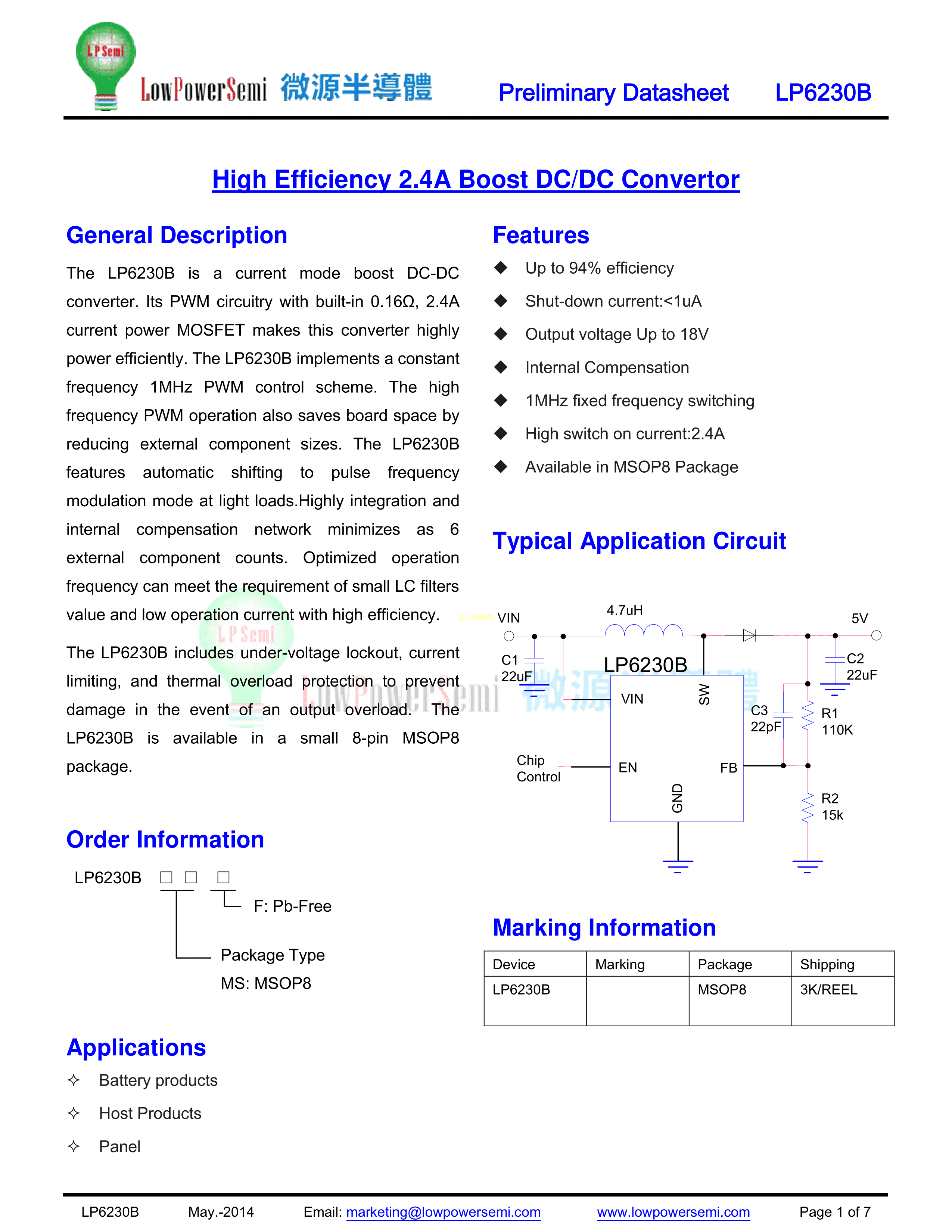 LP6230BMSF数据手册MSOP-8封装LOWPOWER(微源半导体)PDF规格书,中英文下载