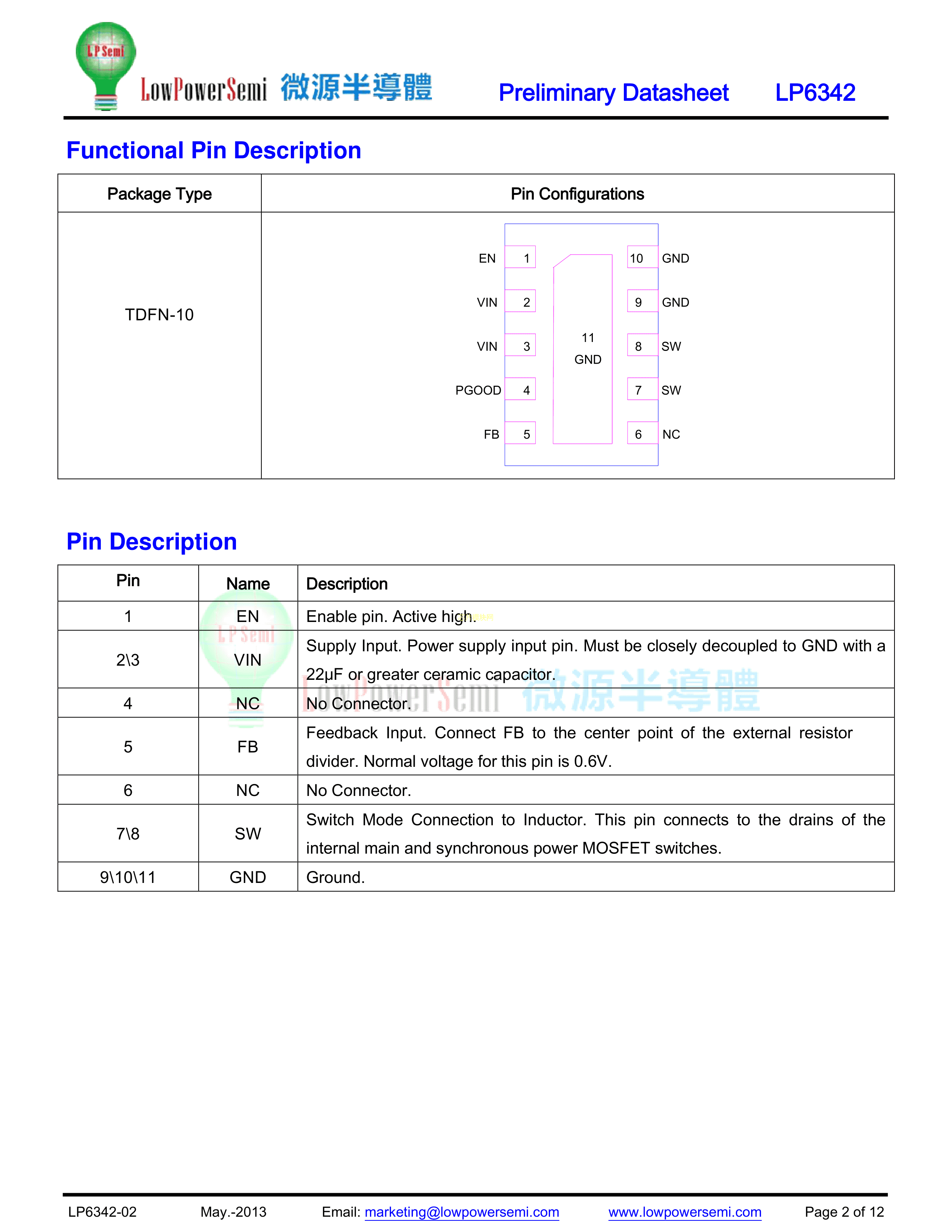 LP6342AQVF数据手册TDFN-10(3x3)封装LOWPOWER(微源半导体)PDF规格书,
