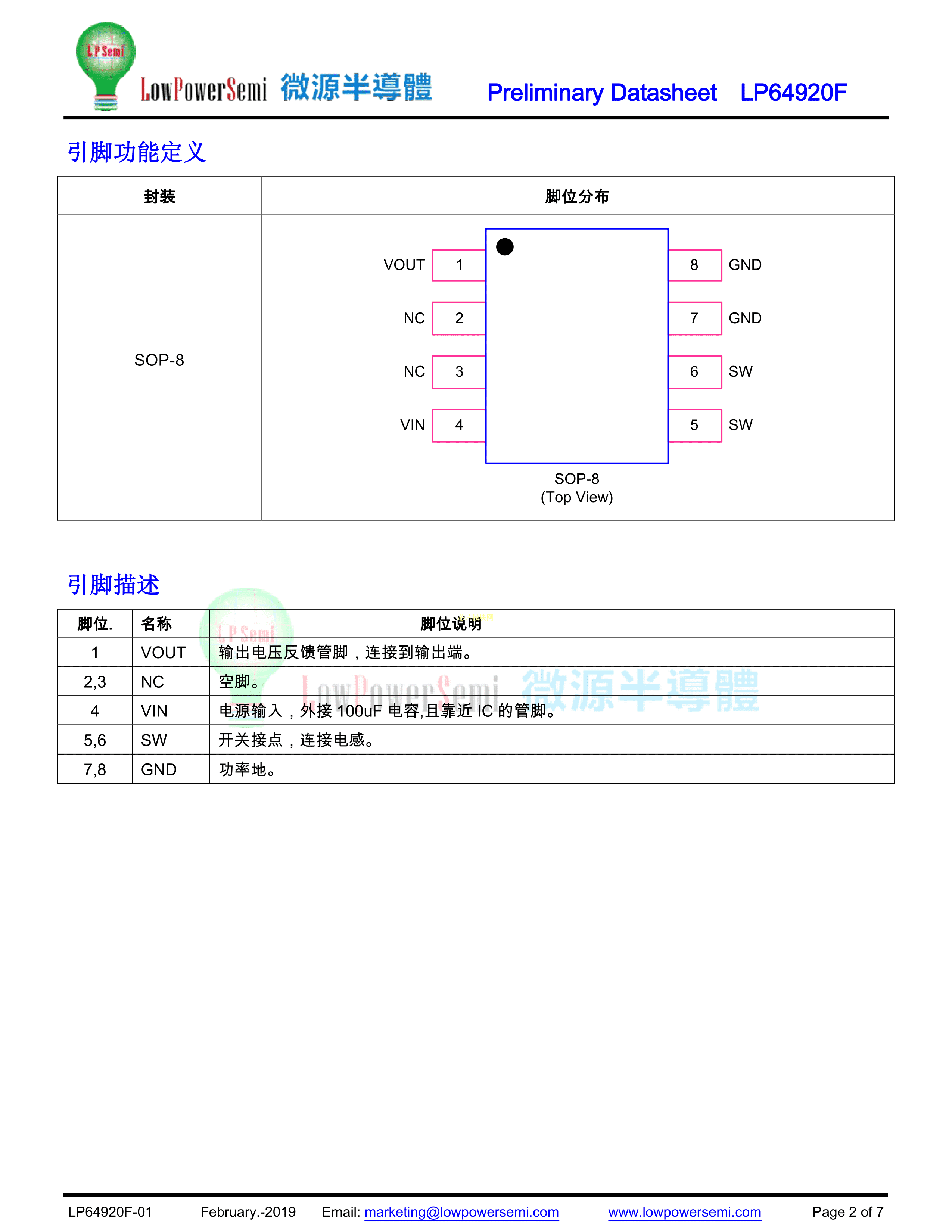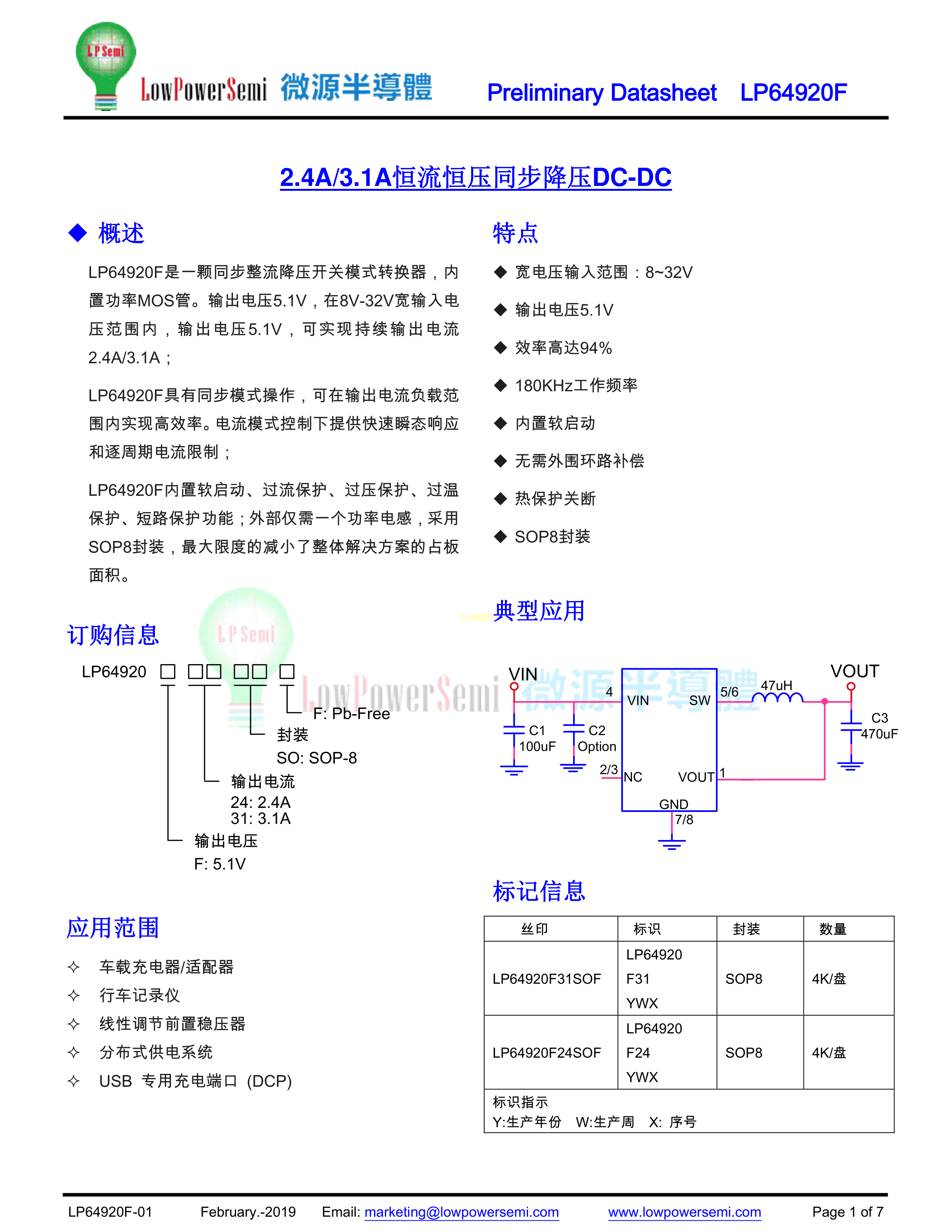 LP64920F24SOF数据手册SOP-8封装LOWPOWER(微源半导体)PDF规格书,中英文下