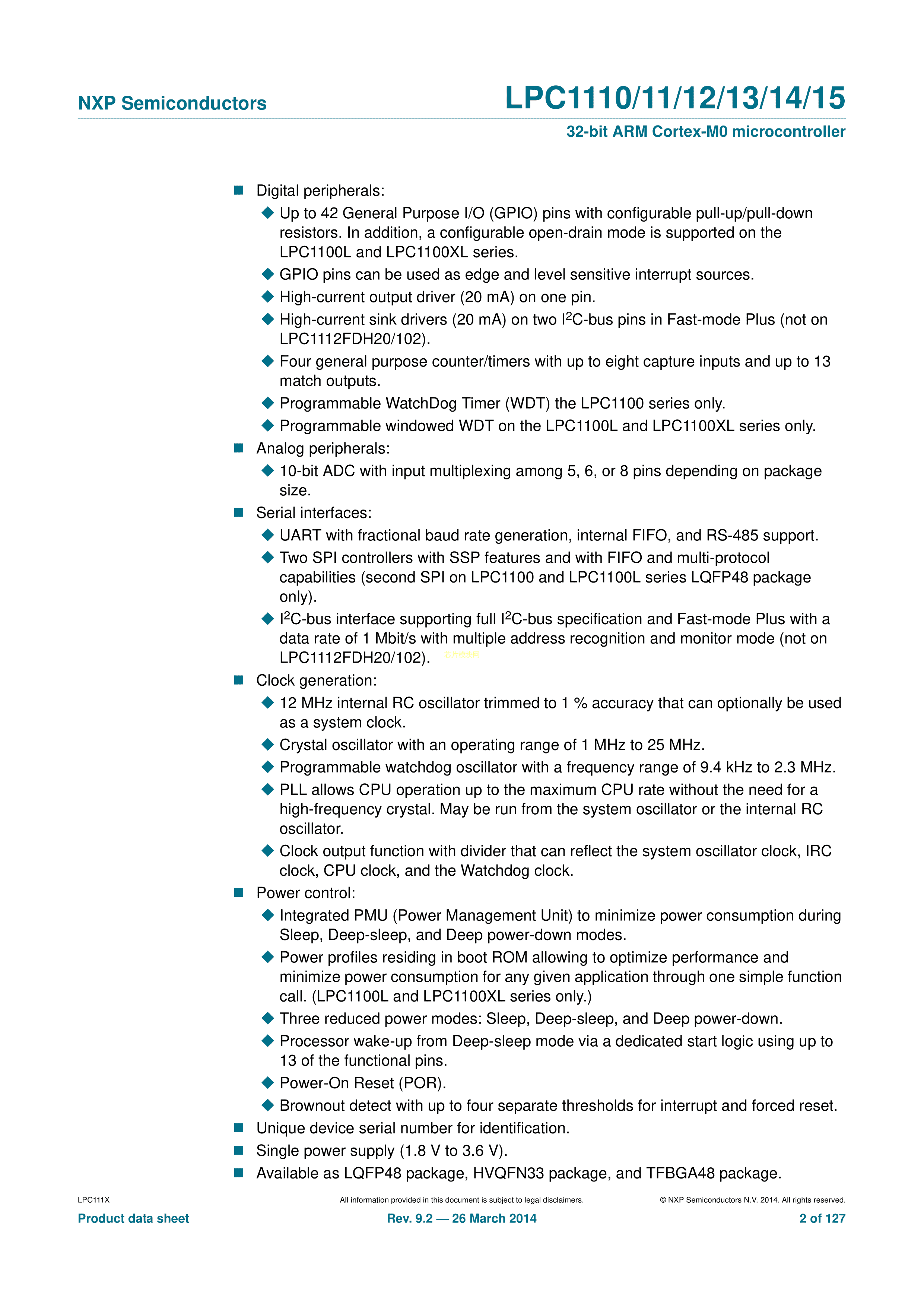 LPC1113JHN33-303E数据手册HVQFN-32(7x7)封装NXP(恩智浦)PDF规格书
