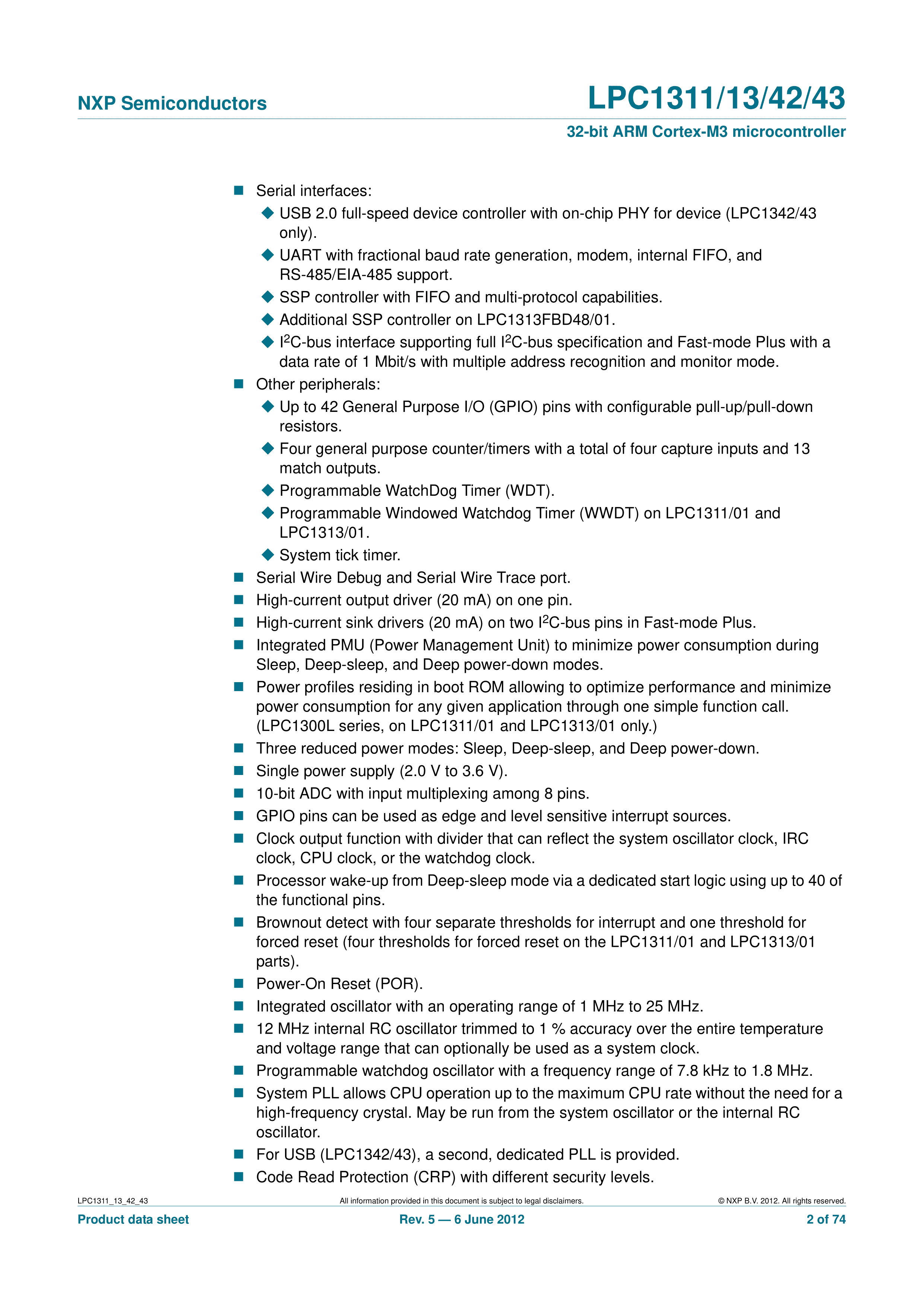 LPC1343FHN33518数据手册HVQFN-32(7x7)封装NXP(恩智浦)PDF规格书,中