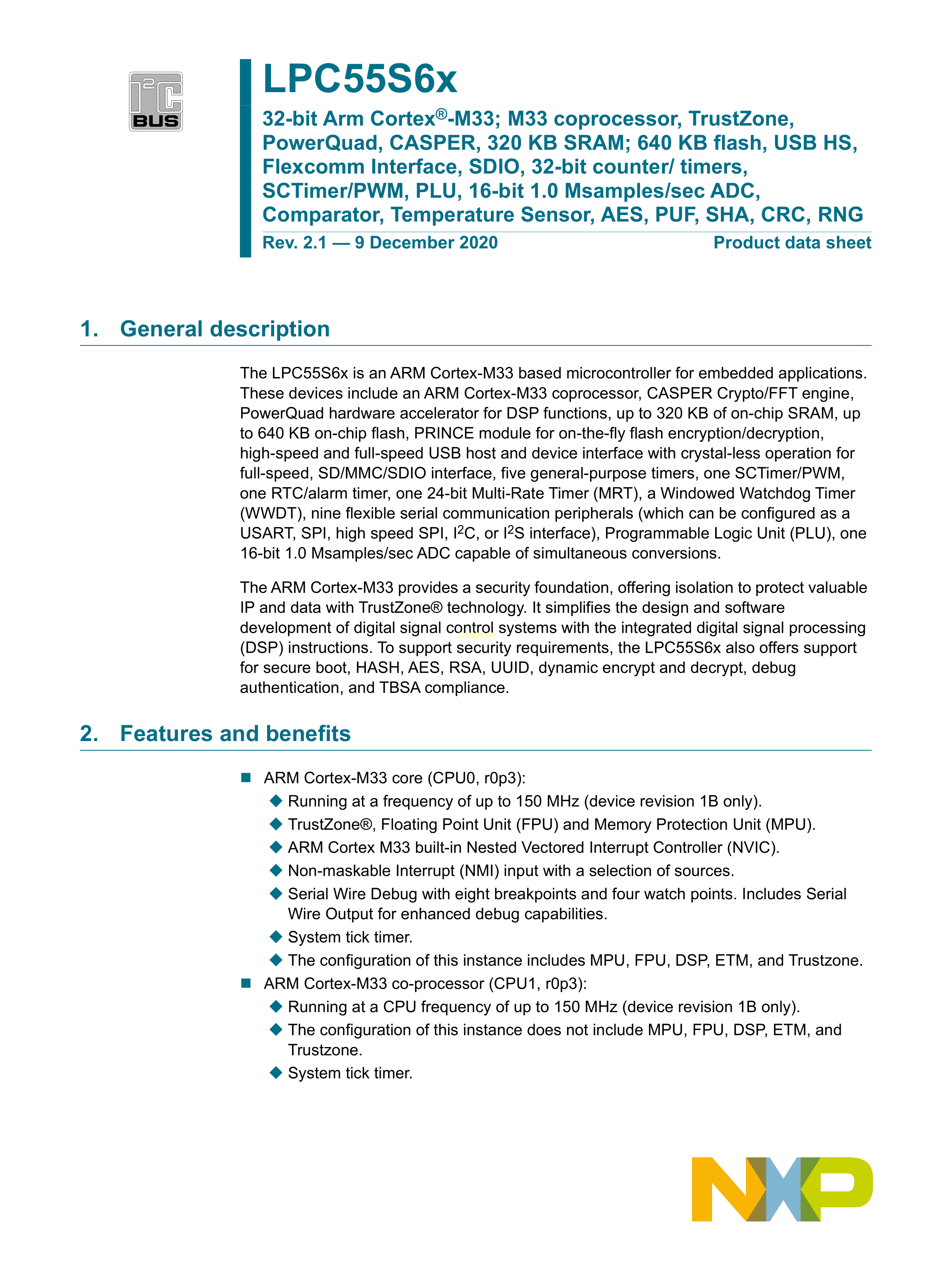 LPC55S66JBD100K数据手册HLQFP-100(14x14)封装NXP(恩智浦)PDF规格