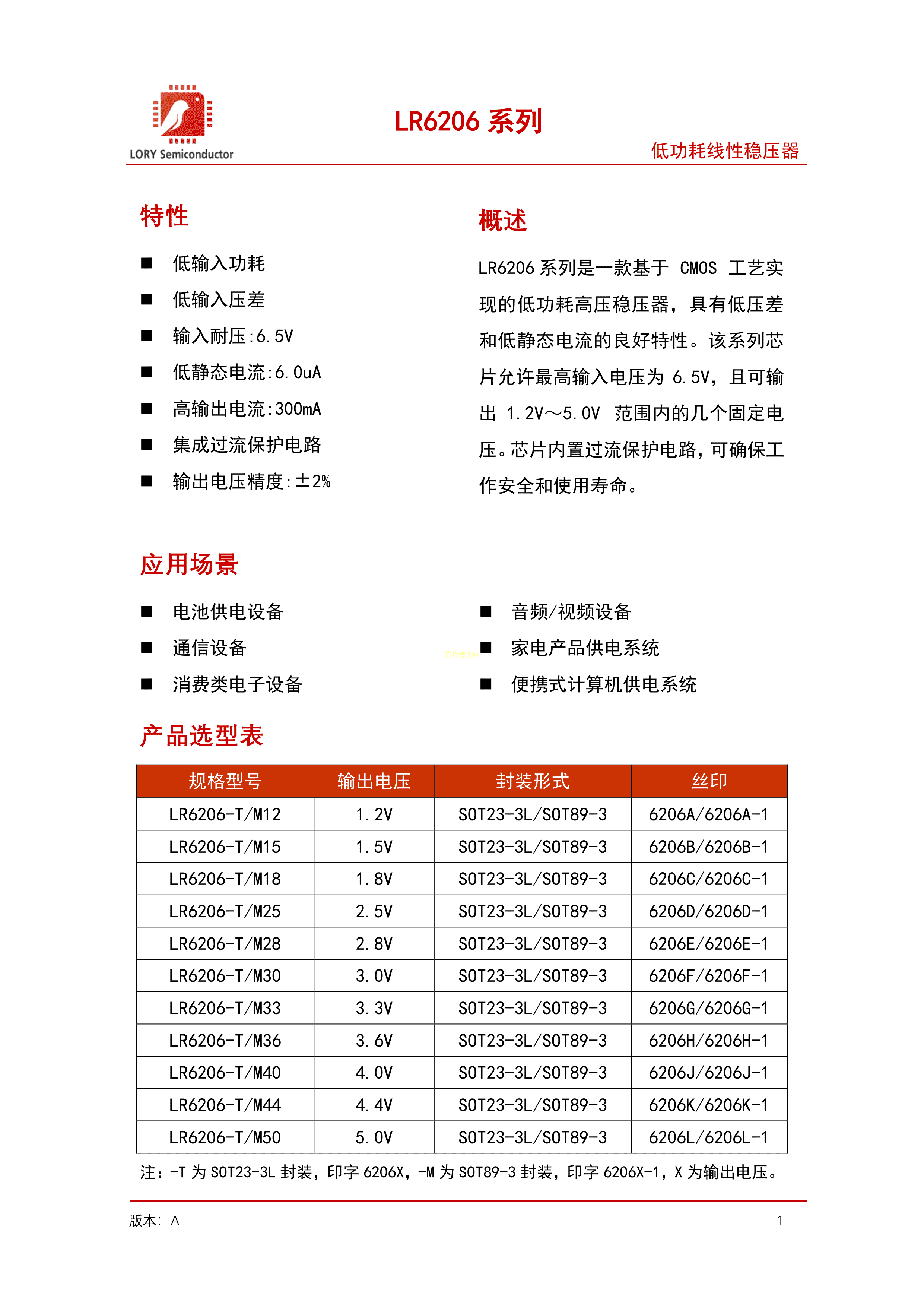 LR6206-T30数据手册SOT-23-3封装LR(朗瑞)PDF规格书,中英文下载