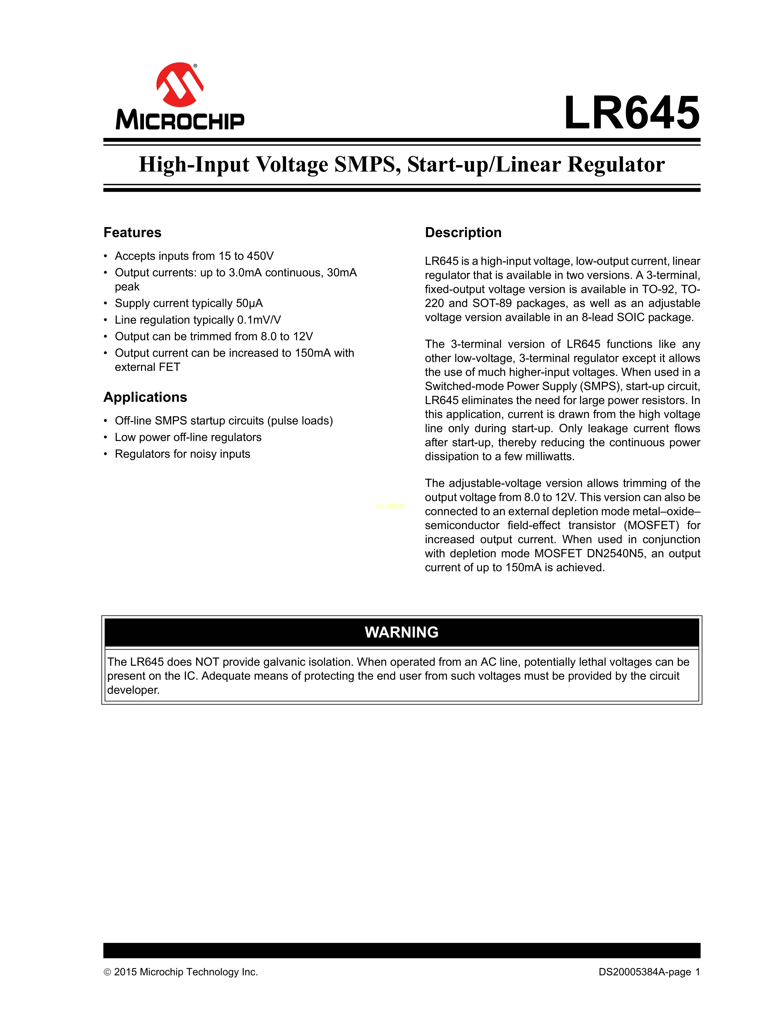 LR645N8-G数据手册SOT-89(TO-243AA)封装MICROCHIP(美国微芯)PDF规