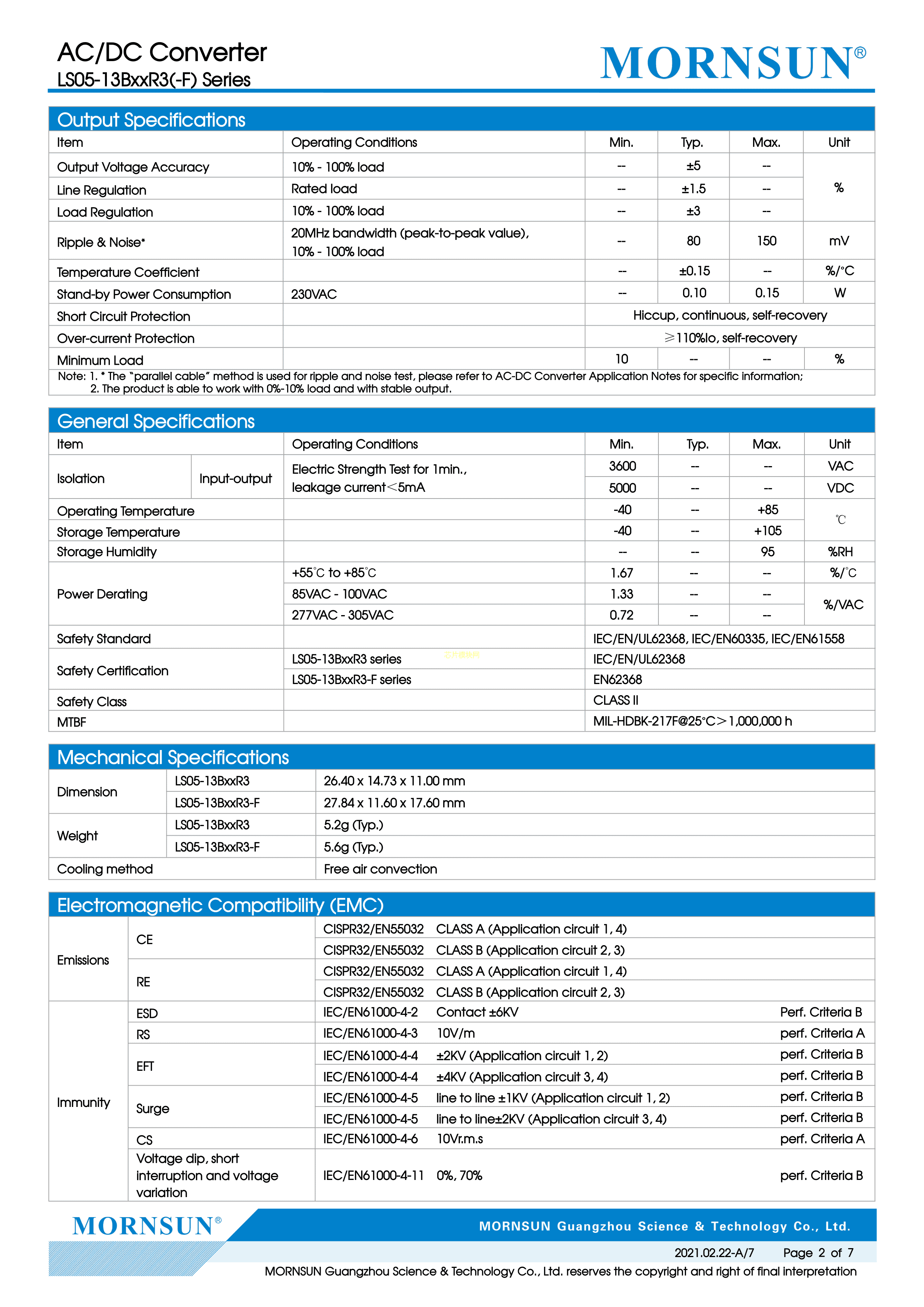 LS05-13B12R3-F数据手册插件封装MORNSUN(金升阳)PDF规格书,中英文下载