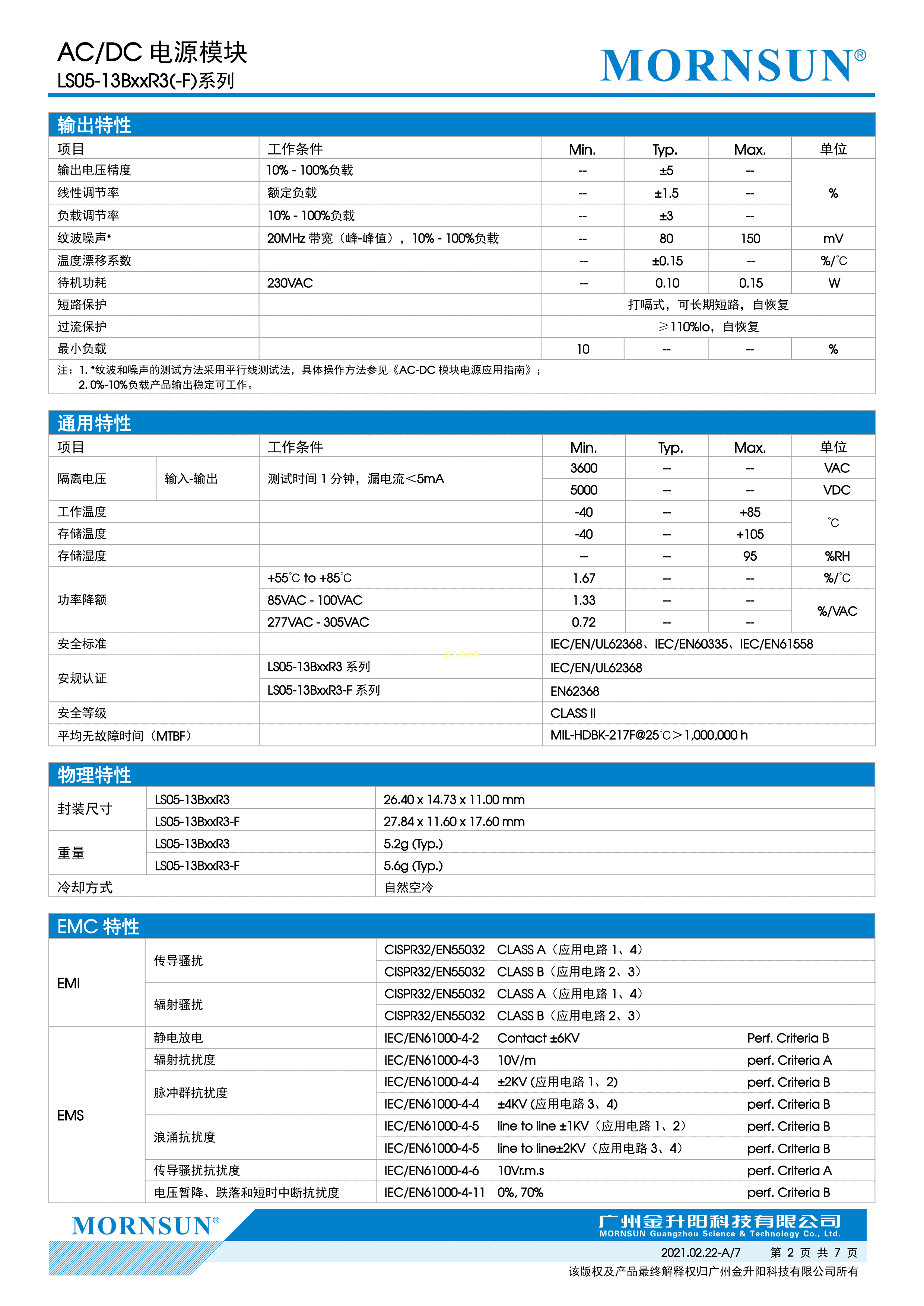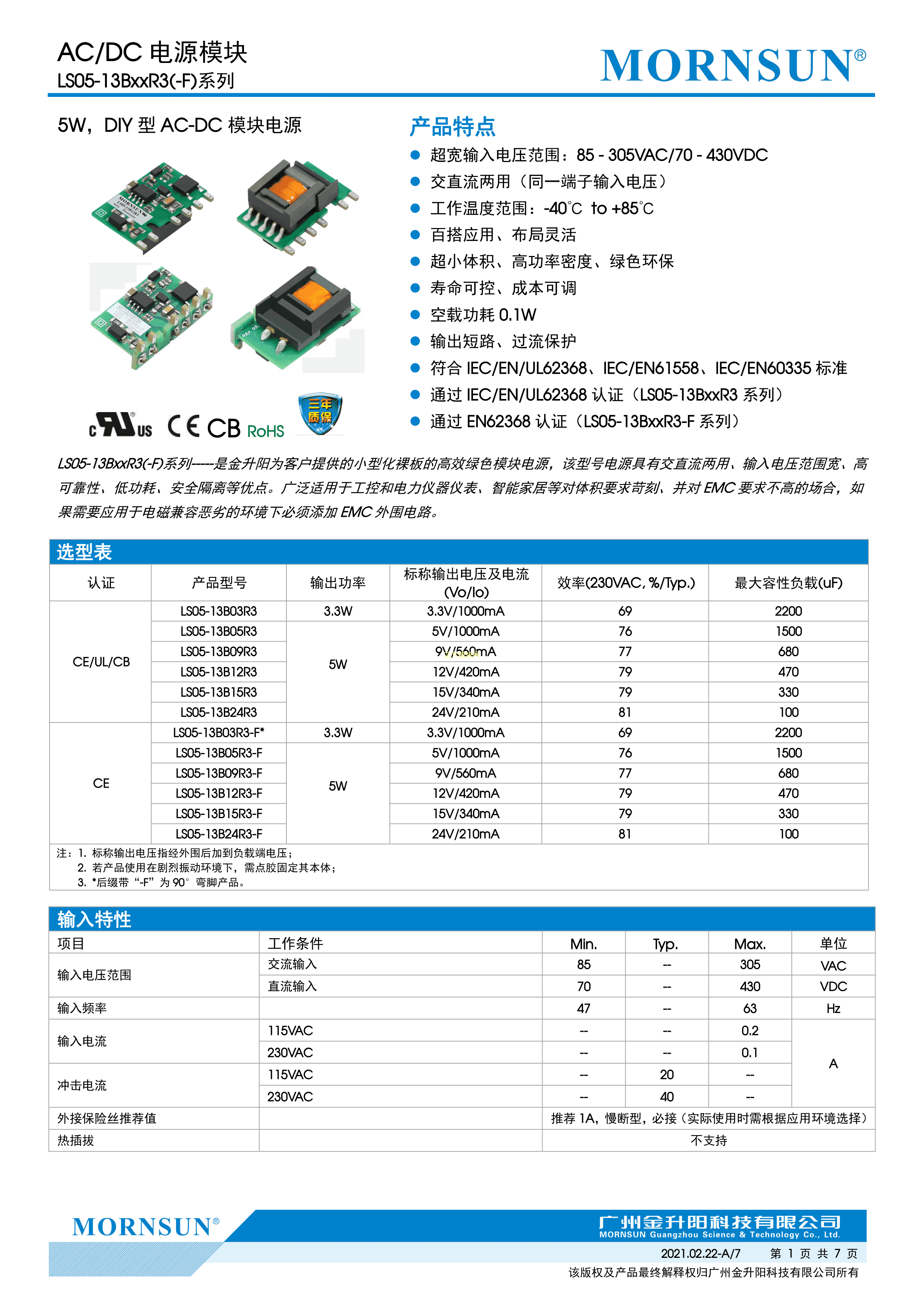 LS05-13B15R3-F数据手册插件封装MORNSUN(金升阳)PDF规格书,中英文下载