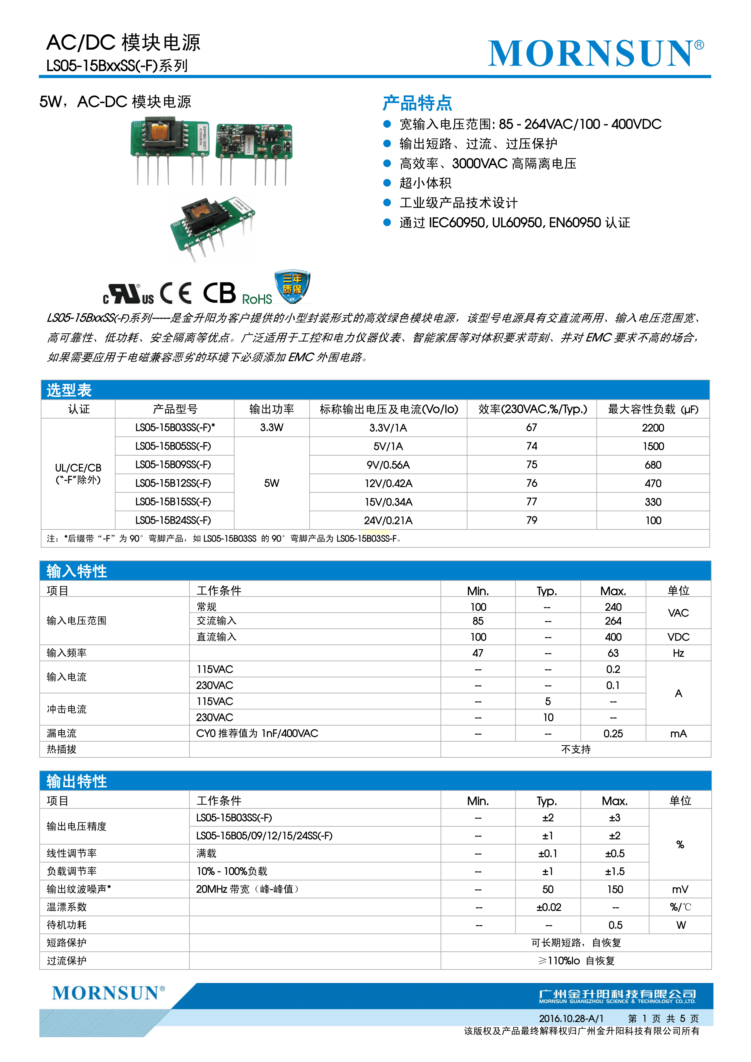 LS05-15B05S-F数据手册DIP封装MORNSUN(金升阳)PDF规格书,中英文下载