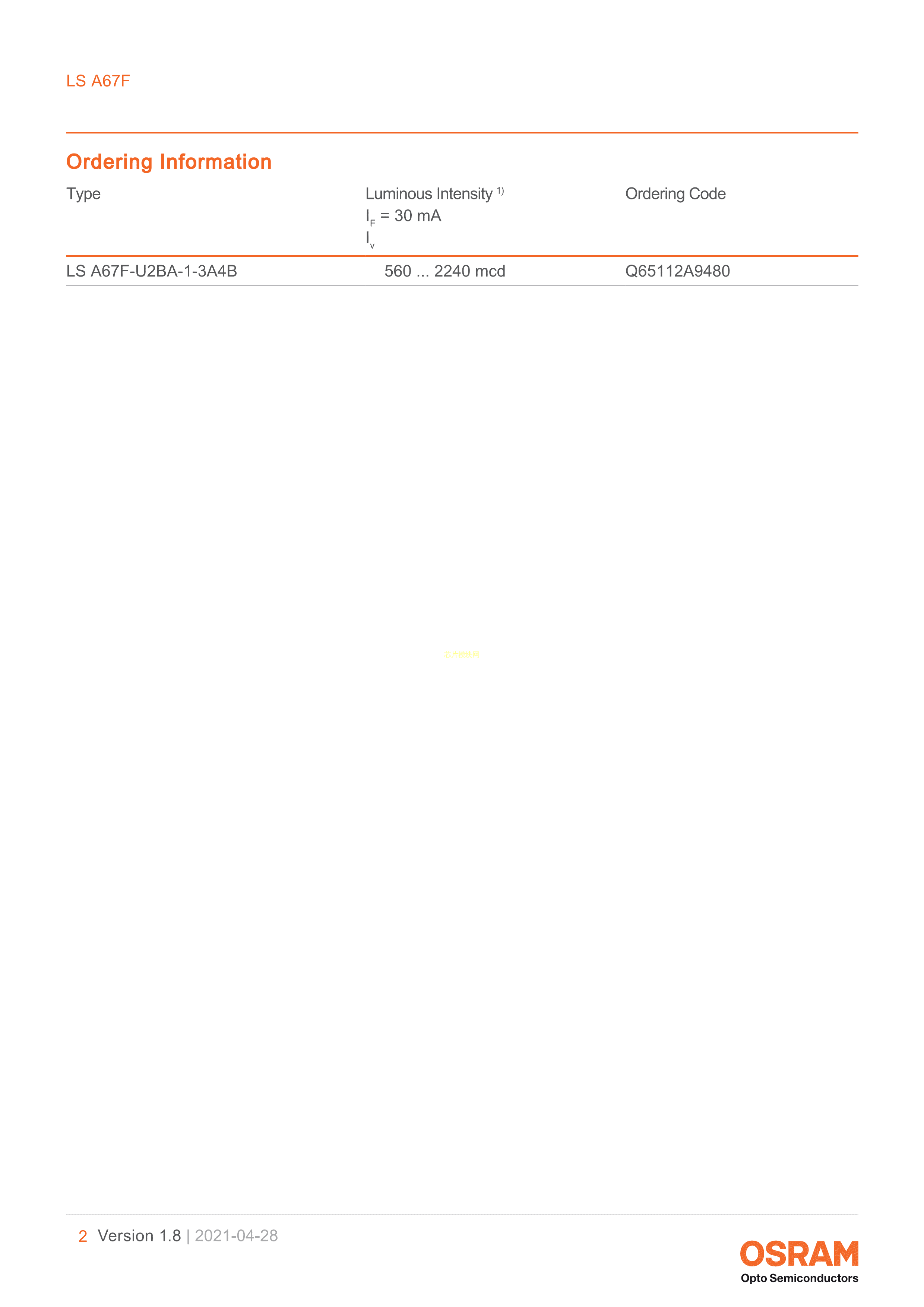 LSA67F-U2BA-1-3A4B-30-R33数据手册SMD封装OSRAMPDF规格书,中英文下载
