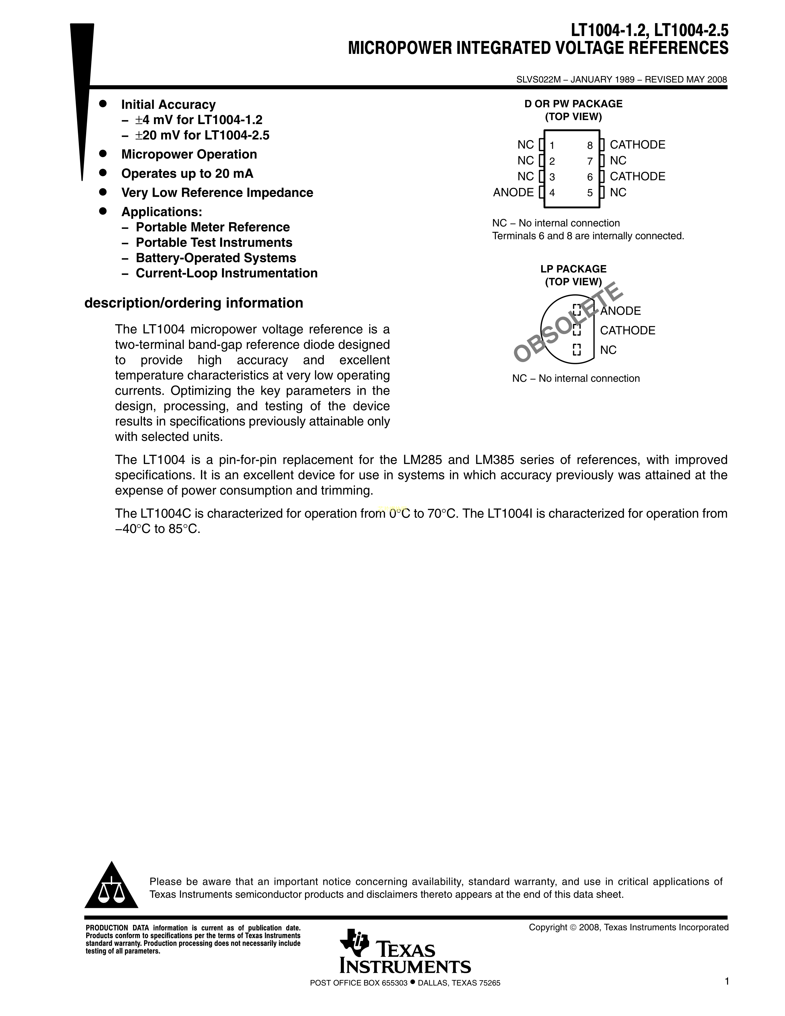 LT1004IDRG4-1-2数据手册SOIC-8封装TI(德州仪器)PDF规格书,中英文下载