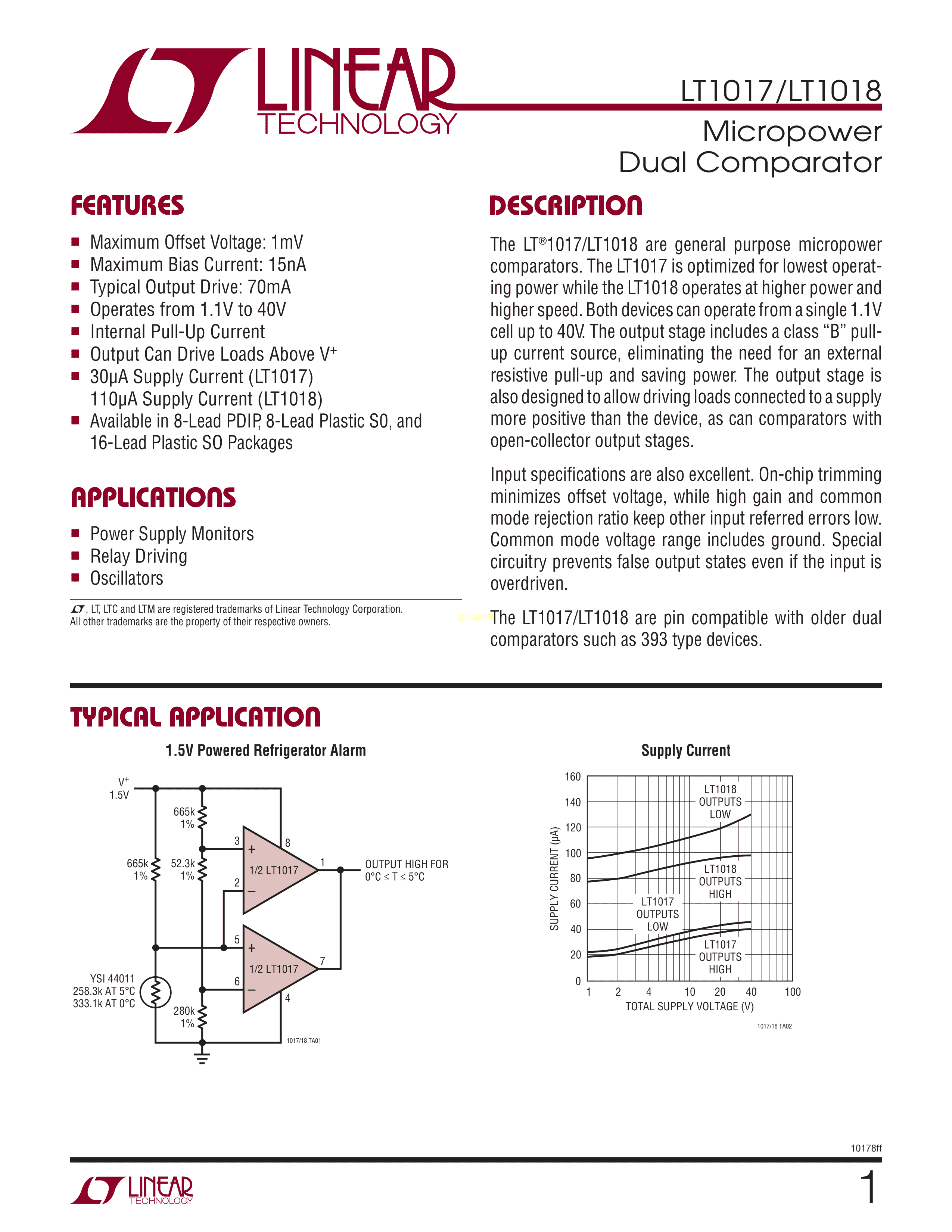 LT1017IN8#PBF数据手册PDIP-8封装ADI(亚德诺)-LINEARPDF规格书,中英文