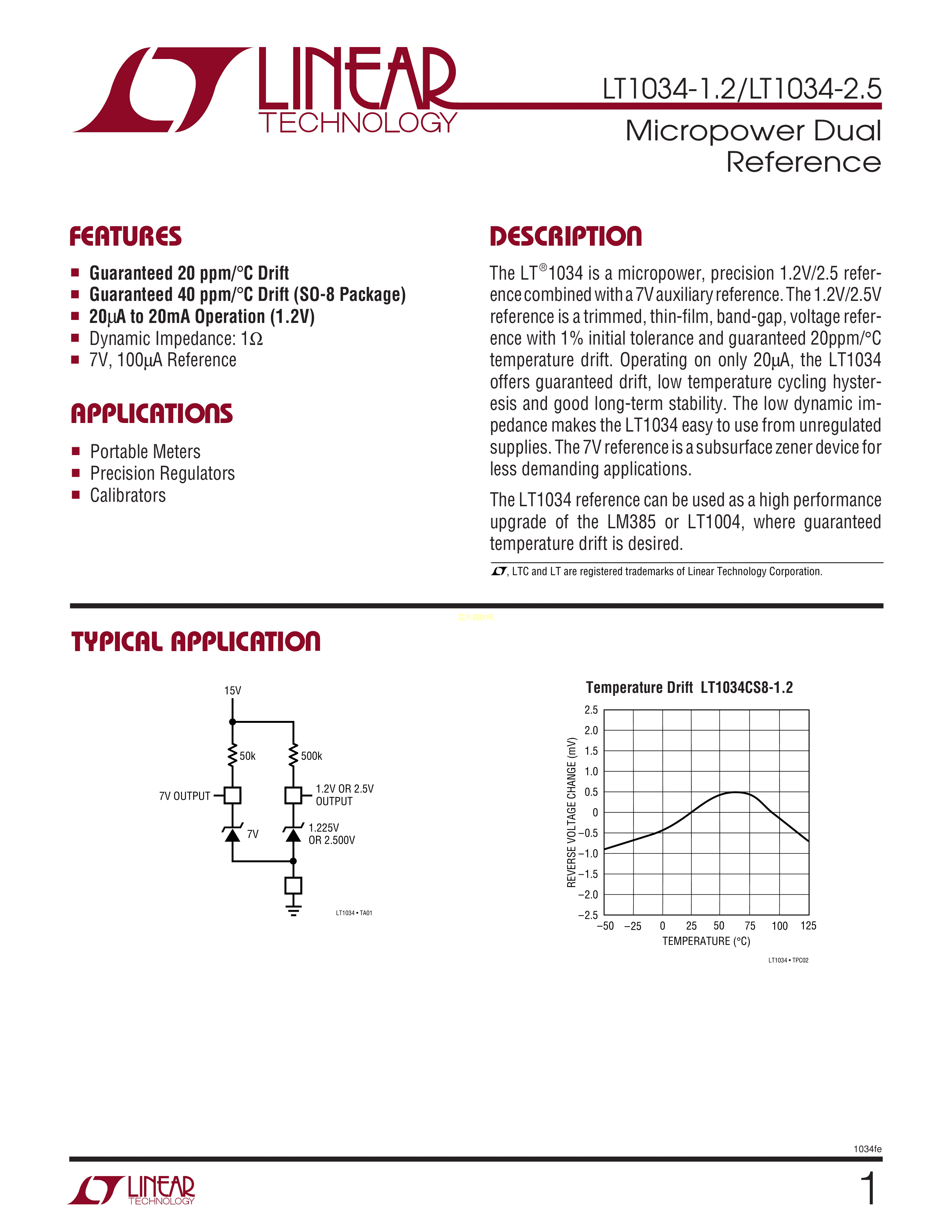 LT1034CS8-1.2#TRPBF数据手册SO-8封装ADI(亚德诺)-LINEARPDF规格书