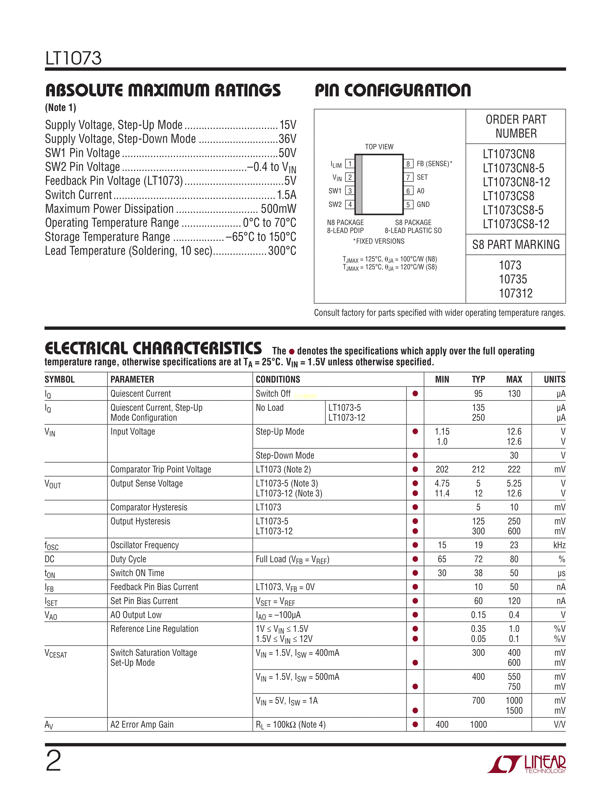 LT1073CN8-12#PBF数据手册PDIP-8封装ADI(亚德诺)-LINEARPDF规格书,