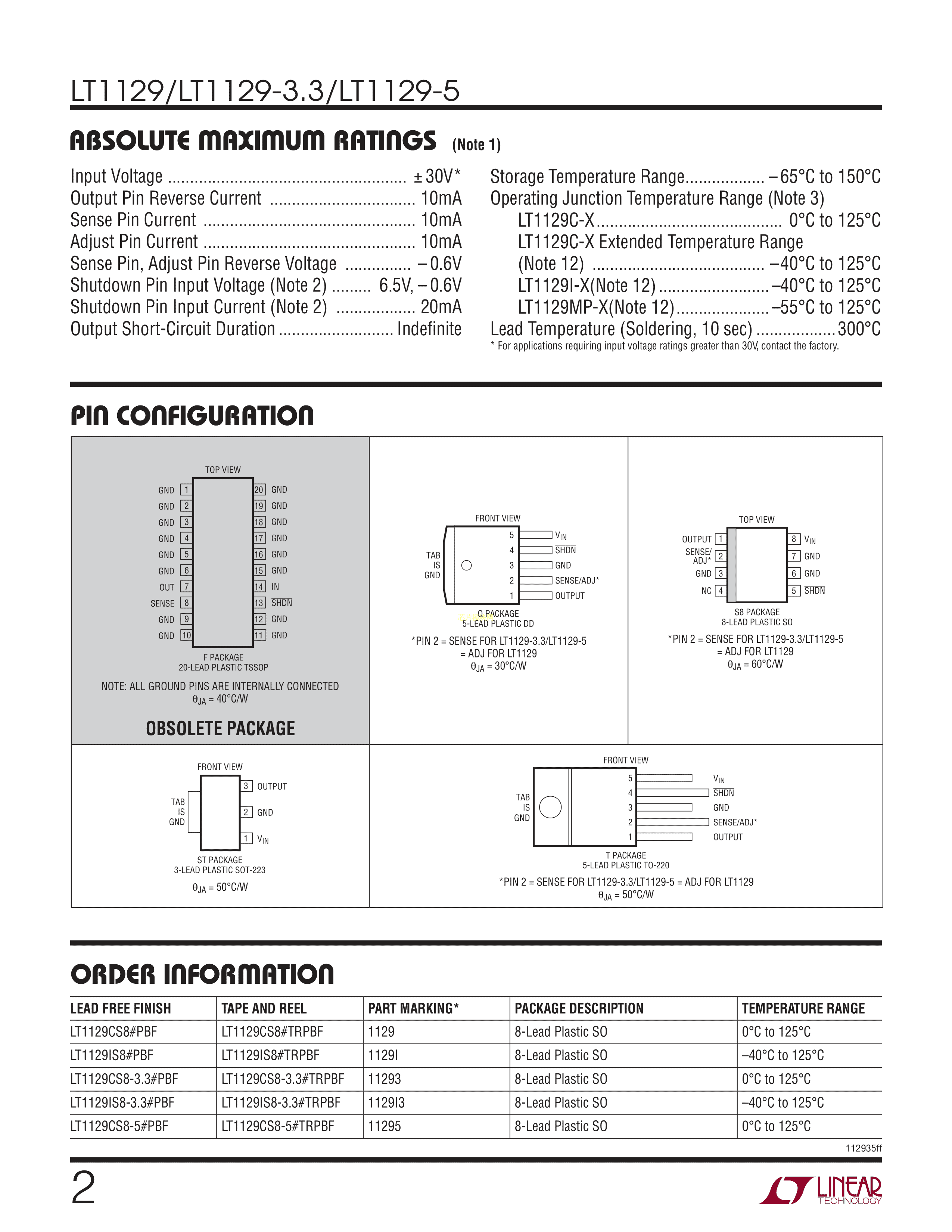 LT1129CS8-3.3#TRPBF数据手册SO-8封装ADI(亚德诺)-LINEARPDF规格书