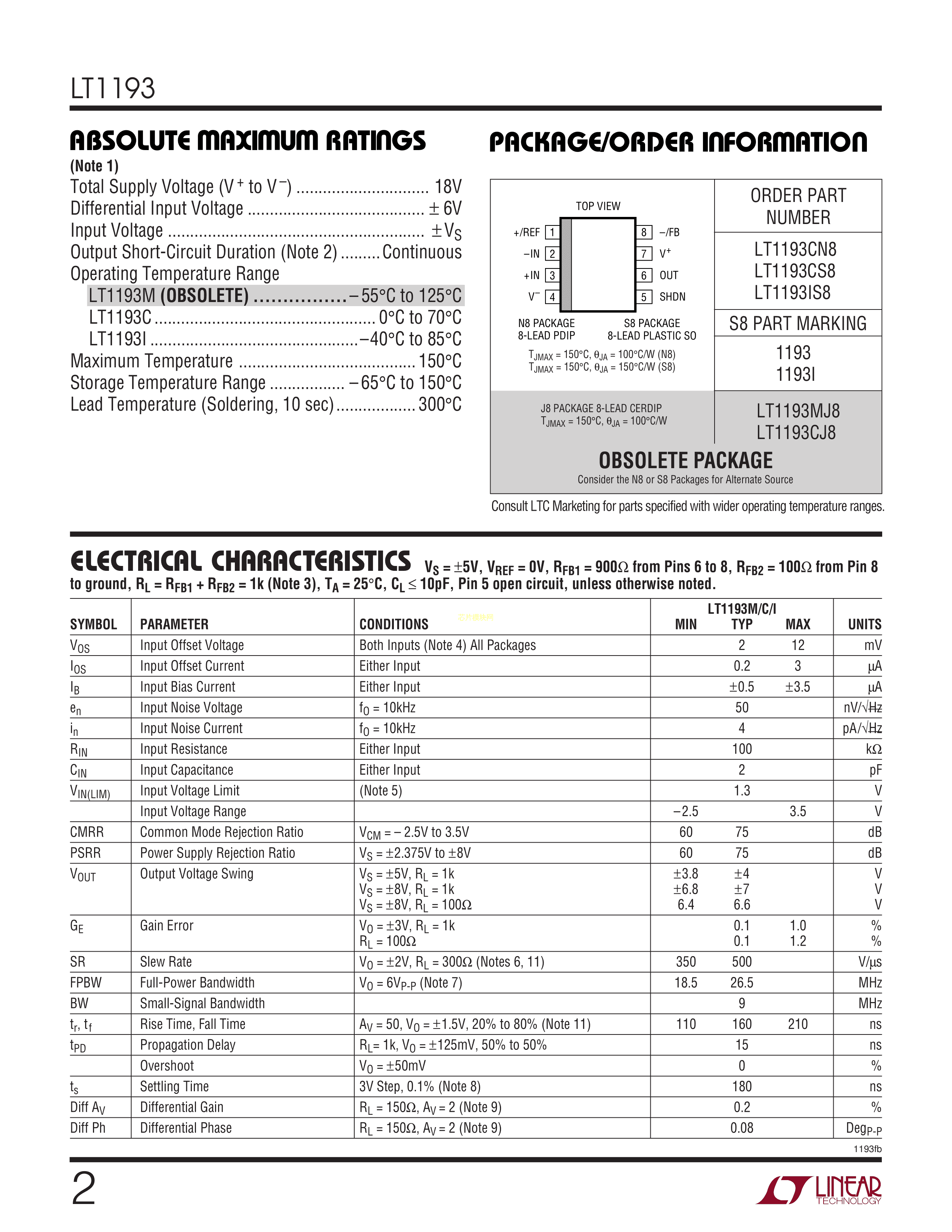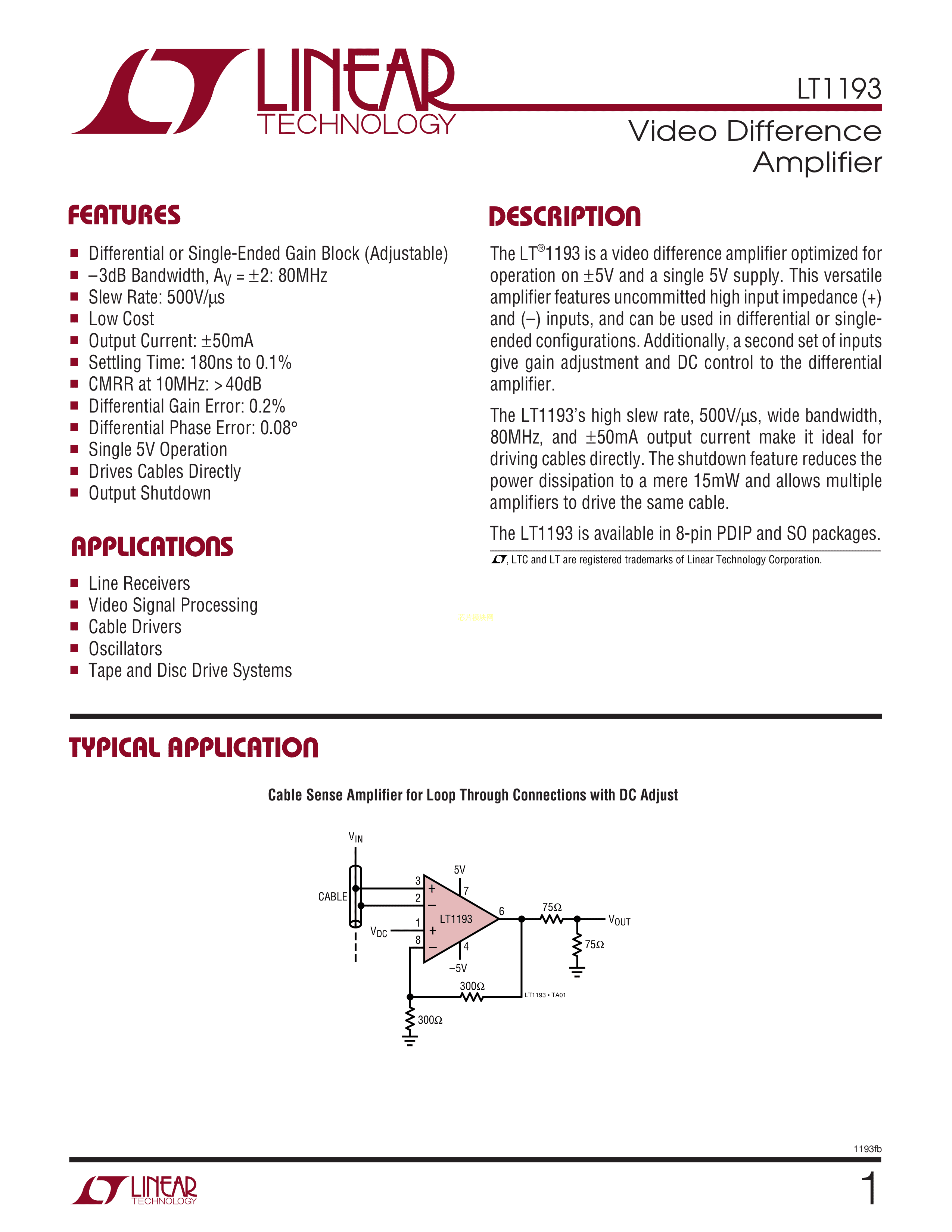 LT1193IS8#PBF数据手册SO-8封装ADI(亚德诺)-LINEARPDF规格书,中英文下载