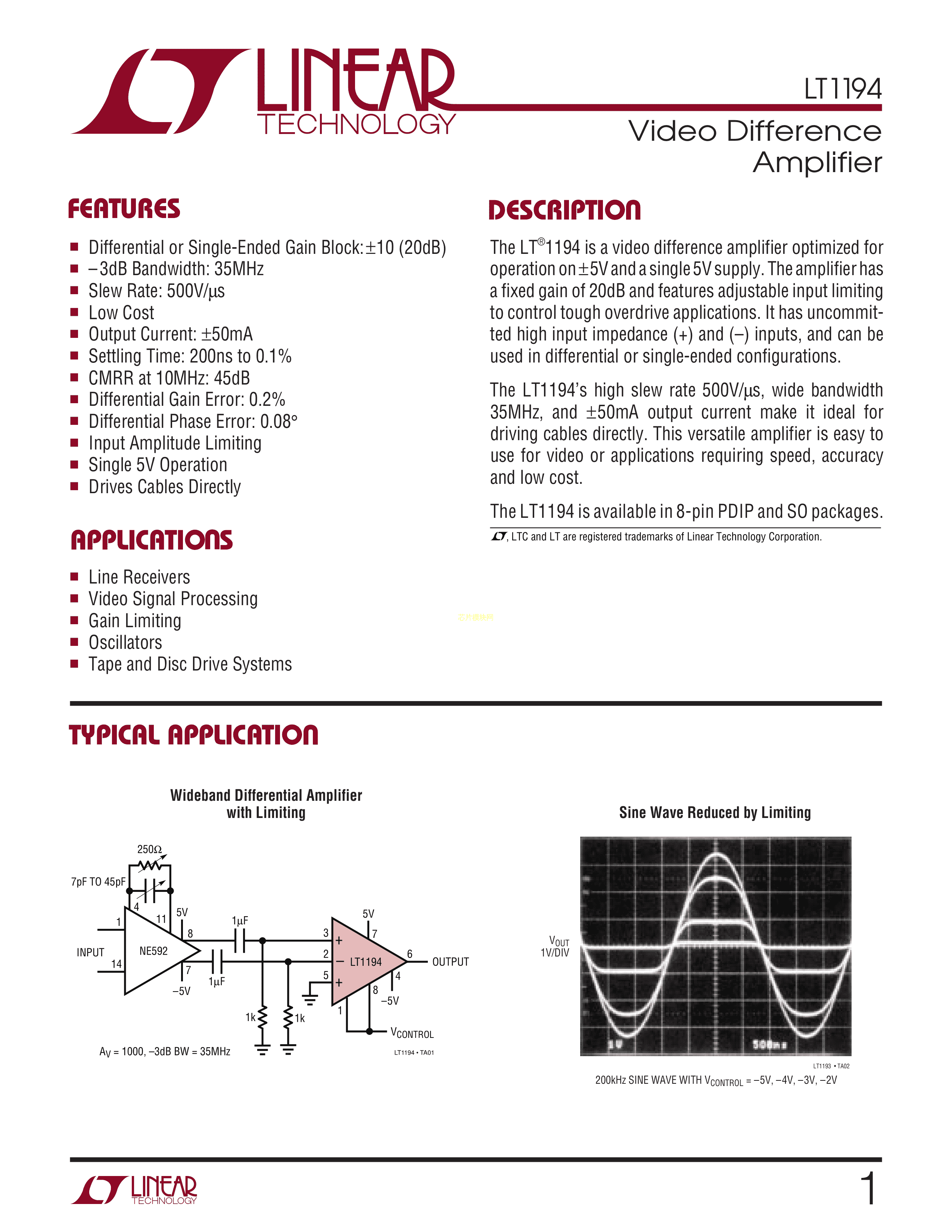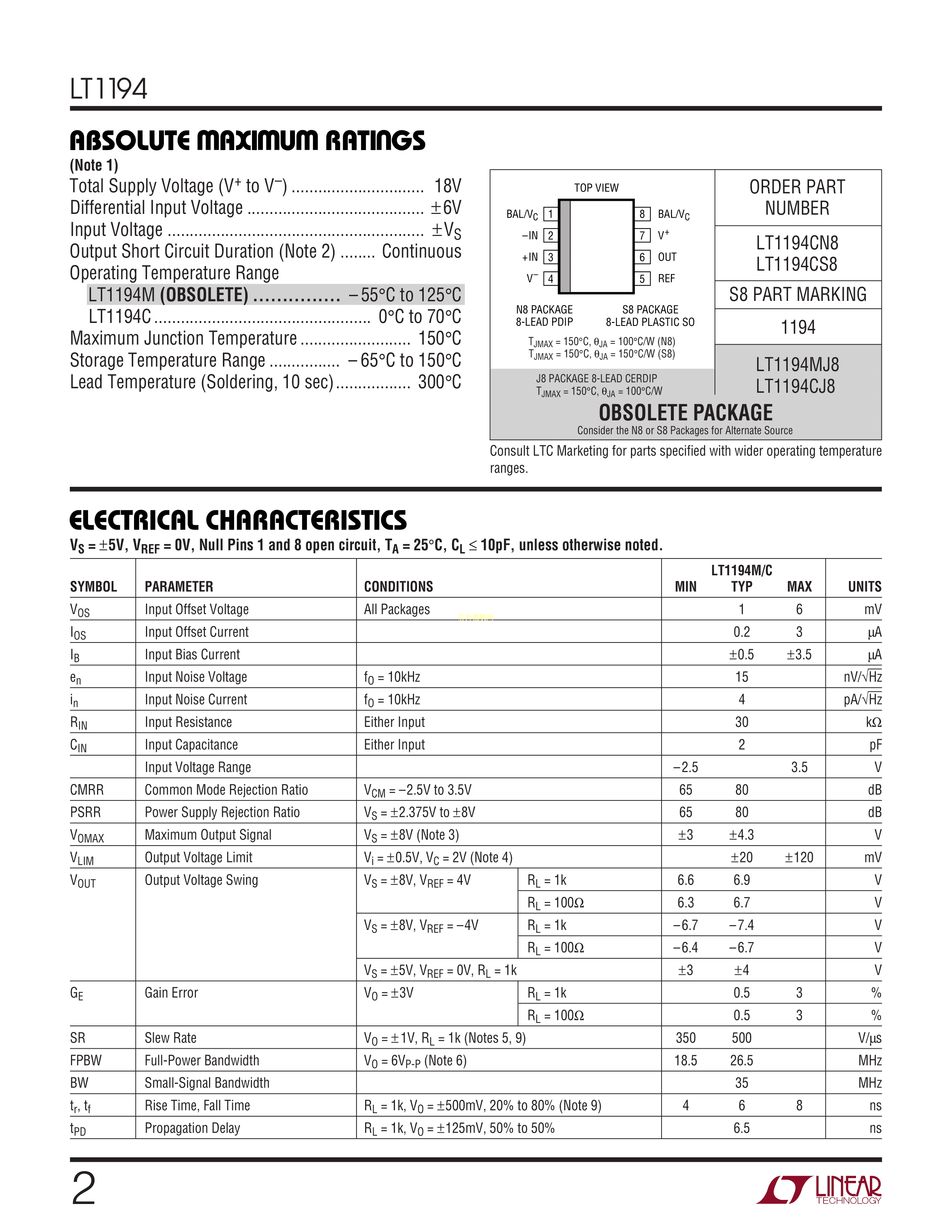 LT1194CS8#PBF数据手册SO-8封装ADI(亚德诺)-LINEARPDF规格书,中英文下载