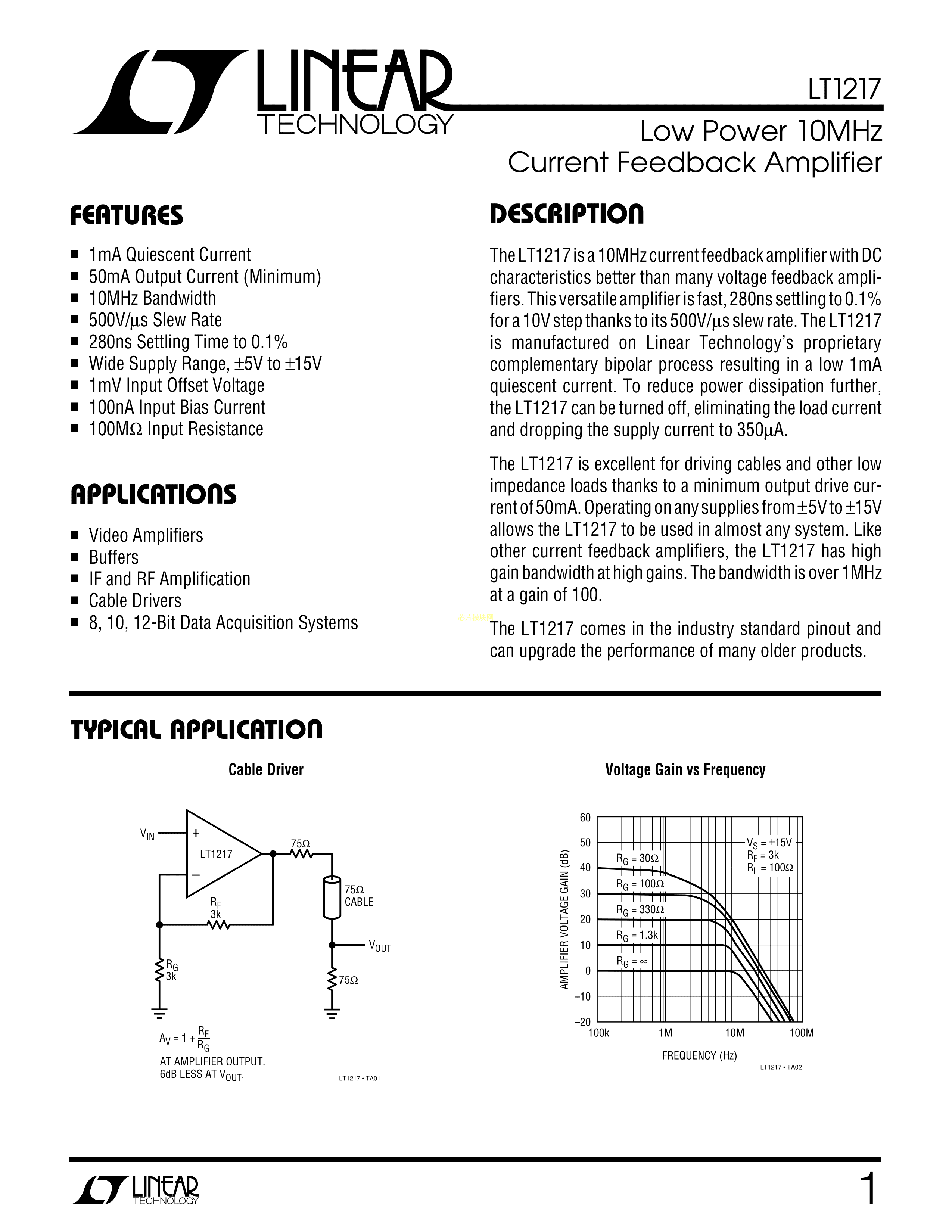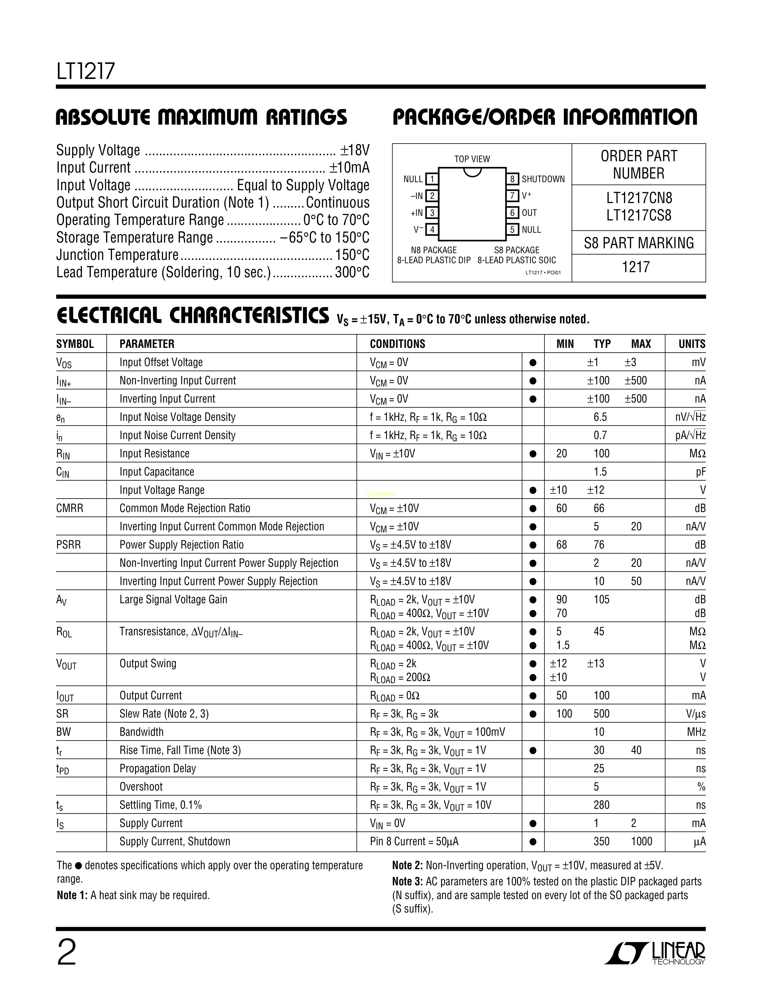 LT1217CS8#TRPBF数据手册SO-8封装ADI(亚德诺)-LINEARPDF规格书,中英文