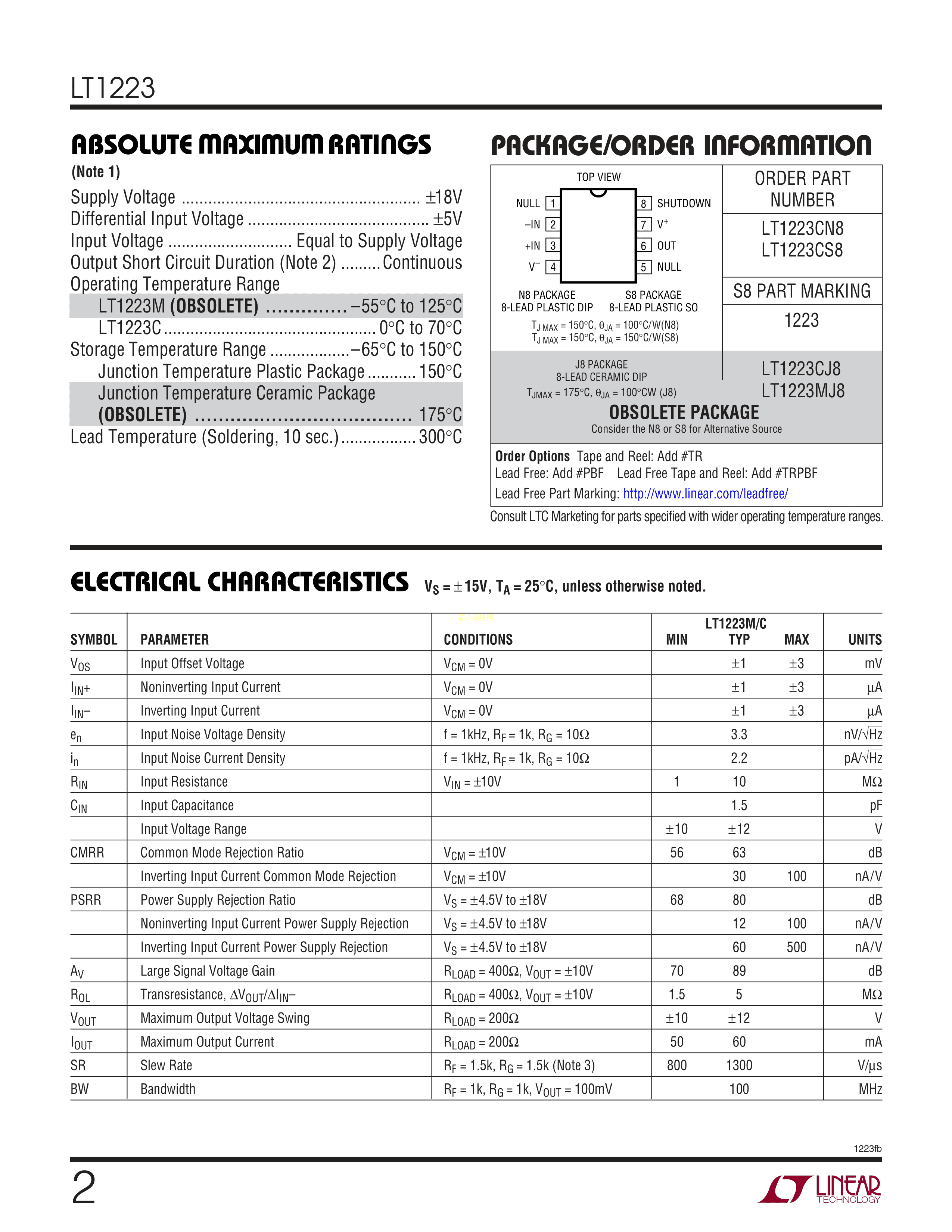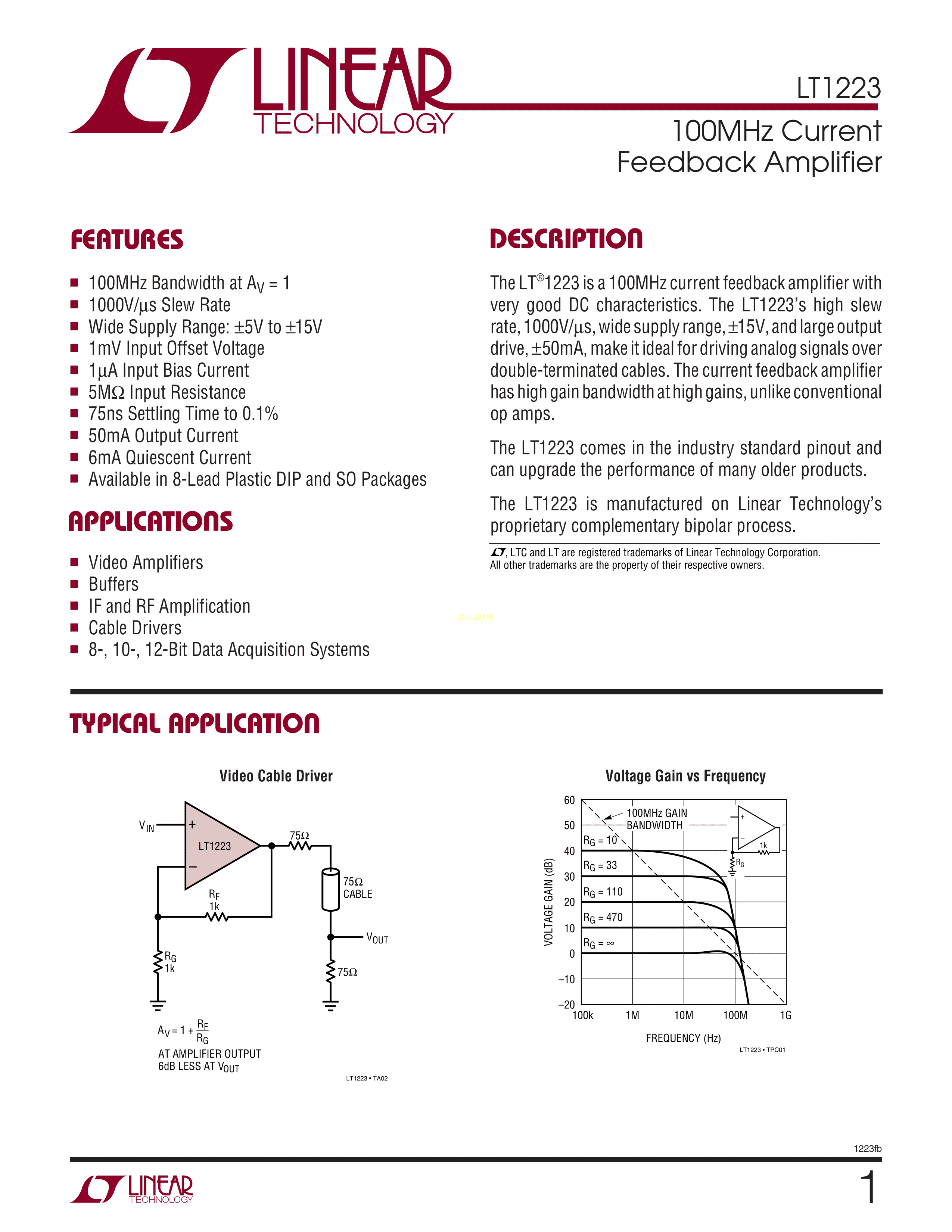 LT1223CS8#PBF数据手册SO-8封装ADI(亚德诺)-LINEARPDF规格书,中英文下载
