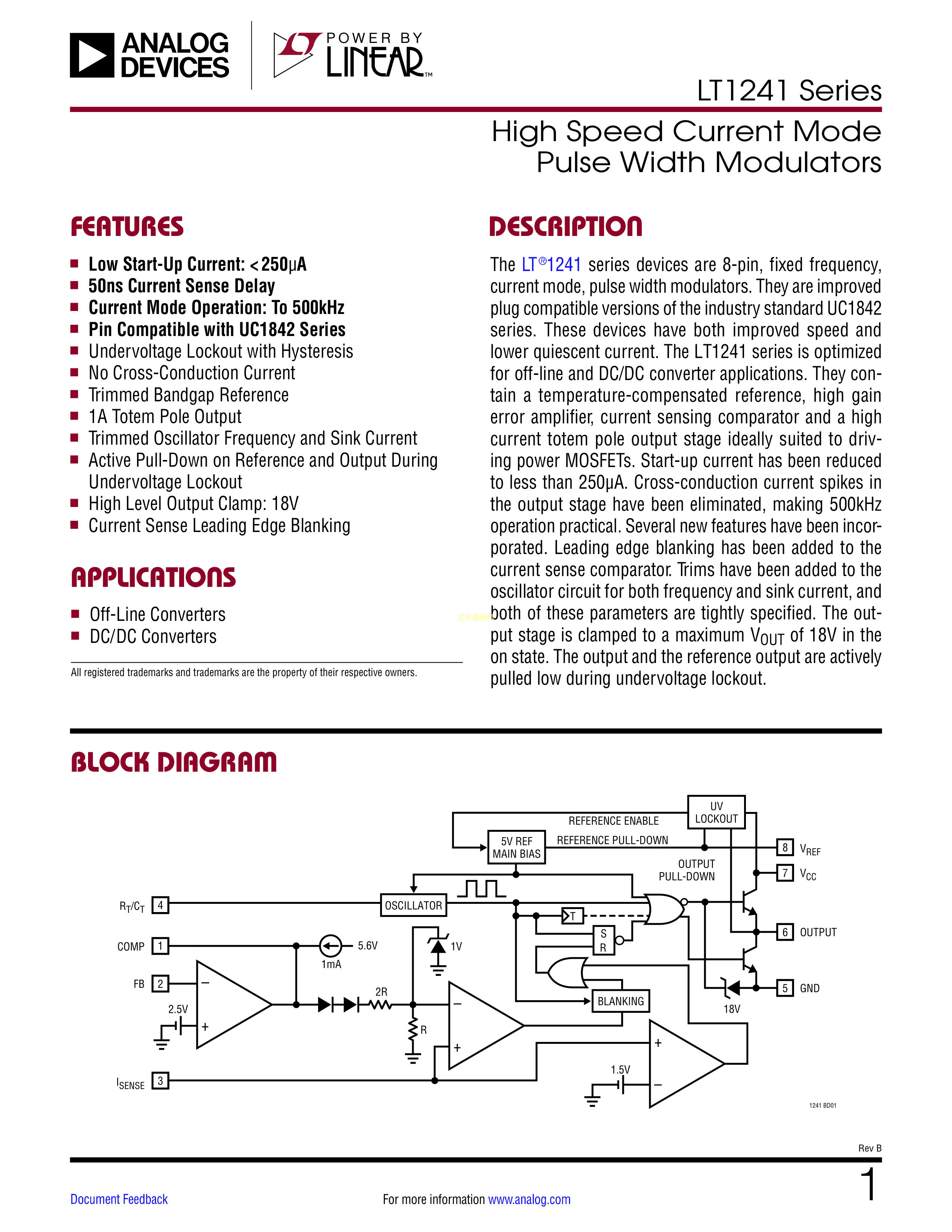 LT1241IN8#PBF数据手册PDIP-8封装ADI(亚德诺)-LINEARPDF规格书,中英文
