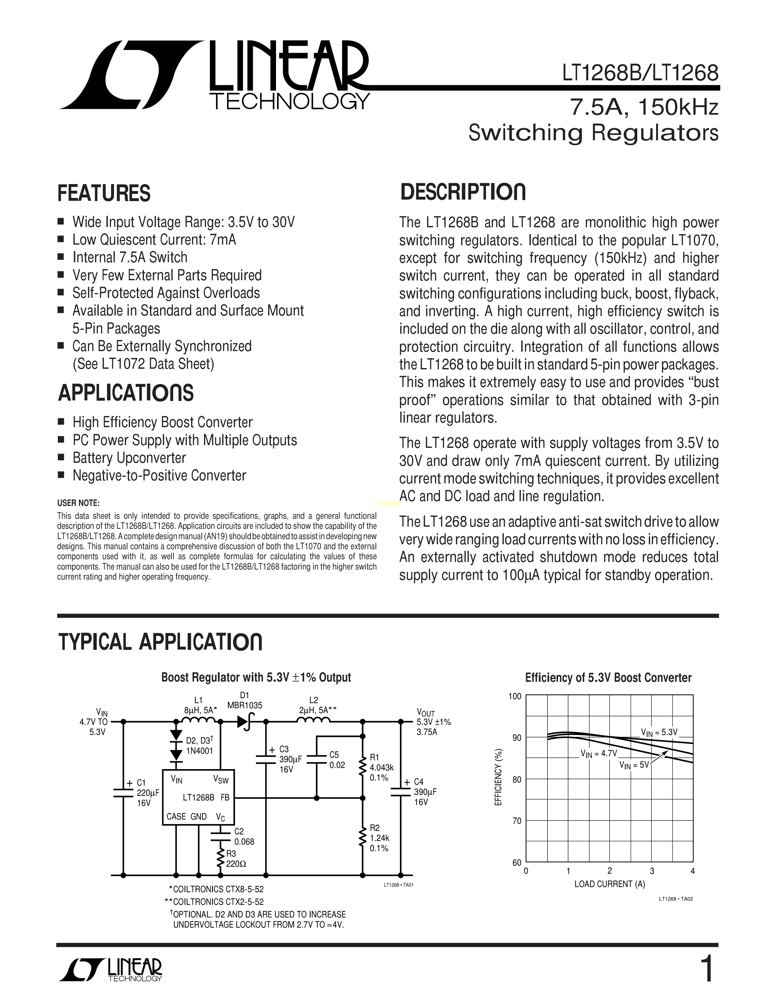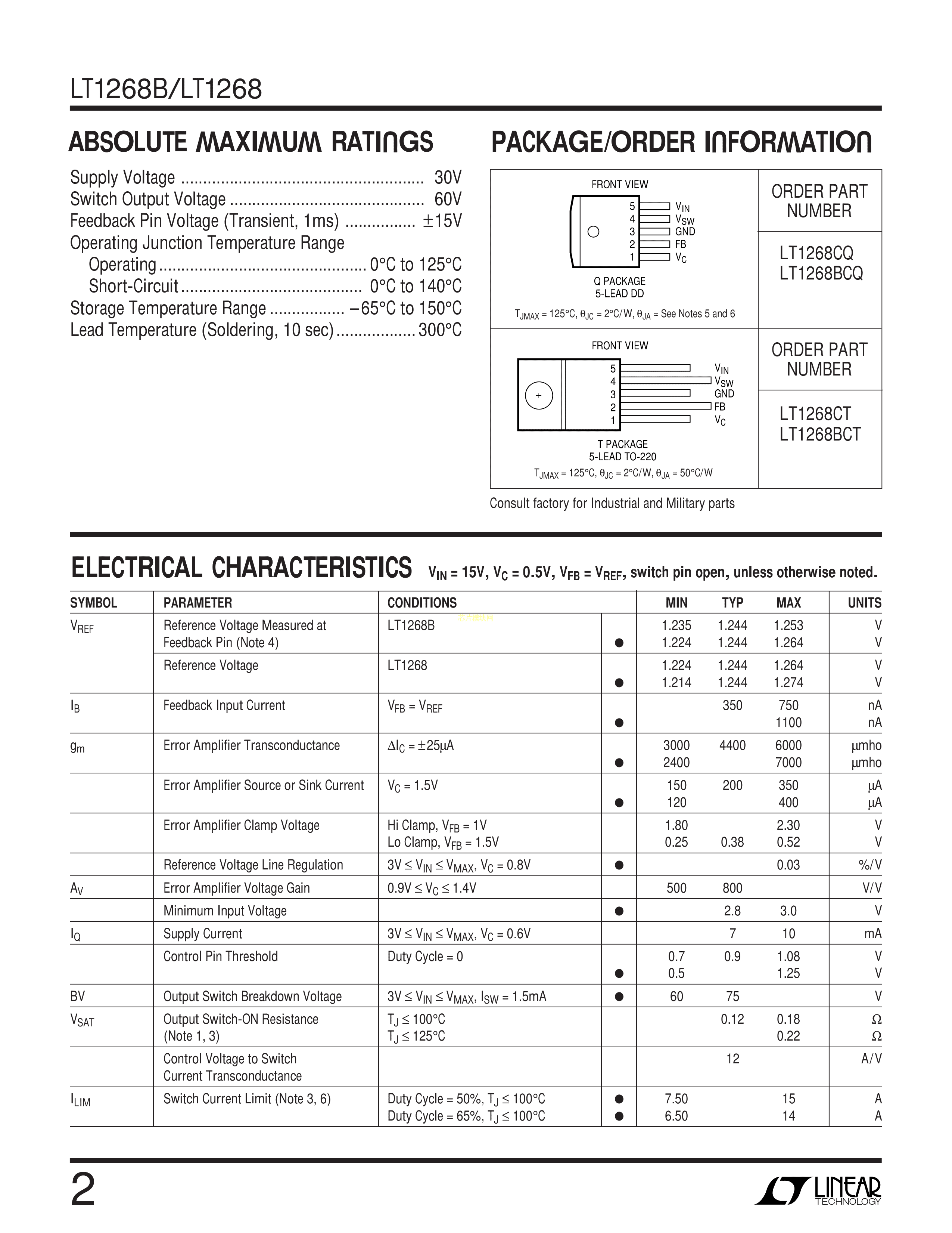 LT1268BCT#PBF数据手册TO-220-5封装ADI(亚德诺)-LINEARPDF规格书,中