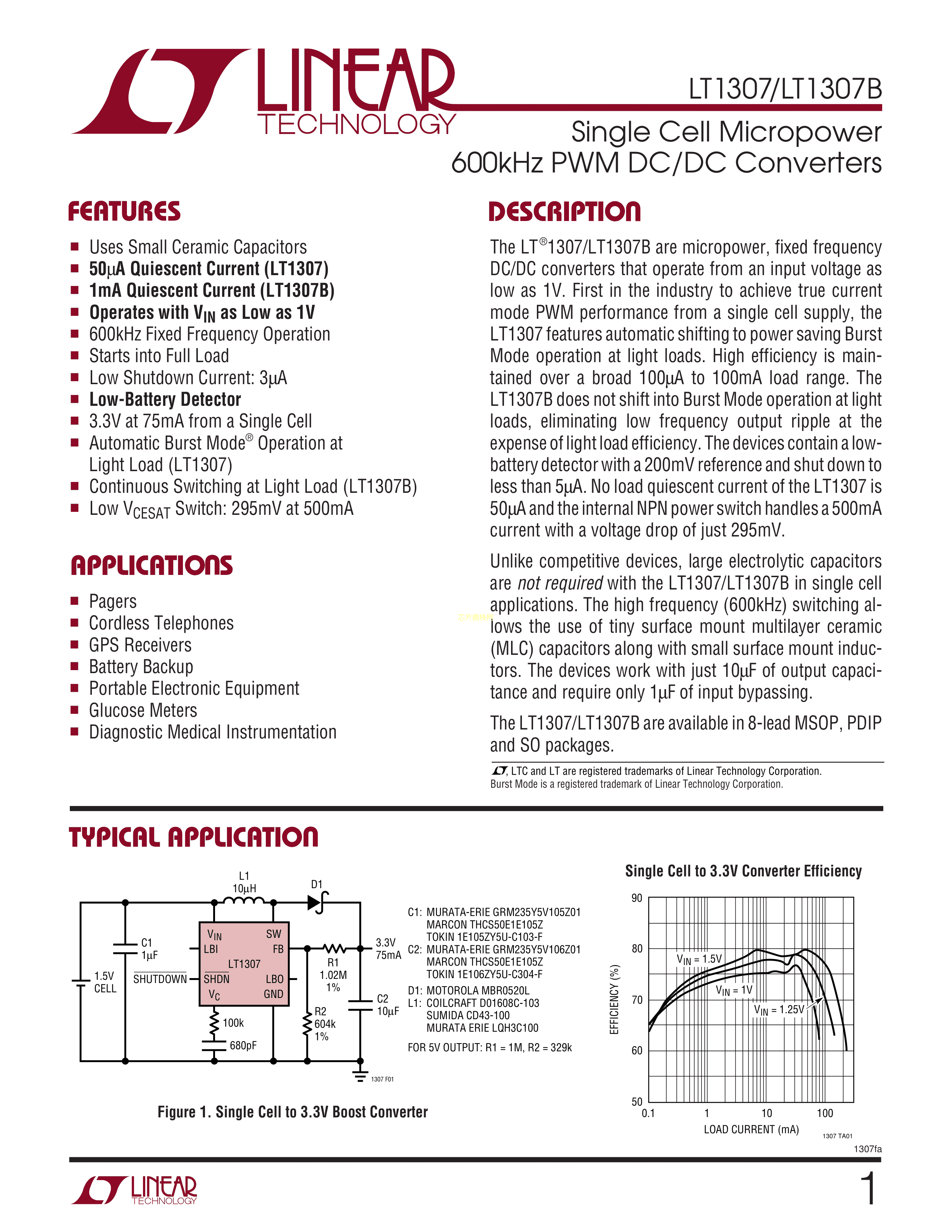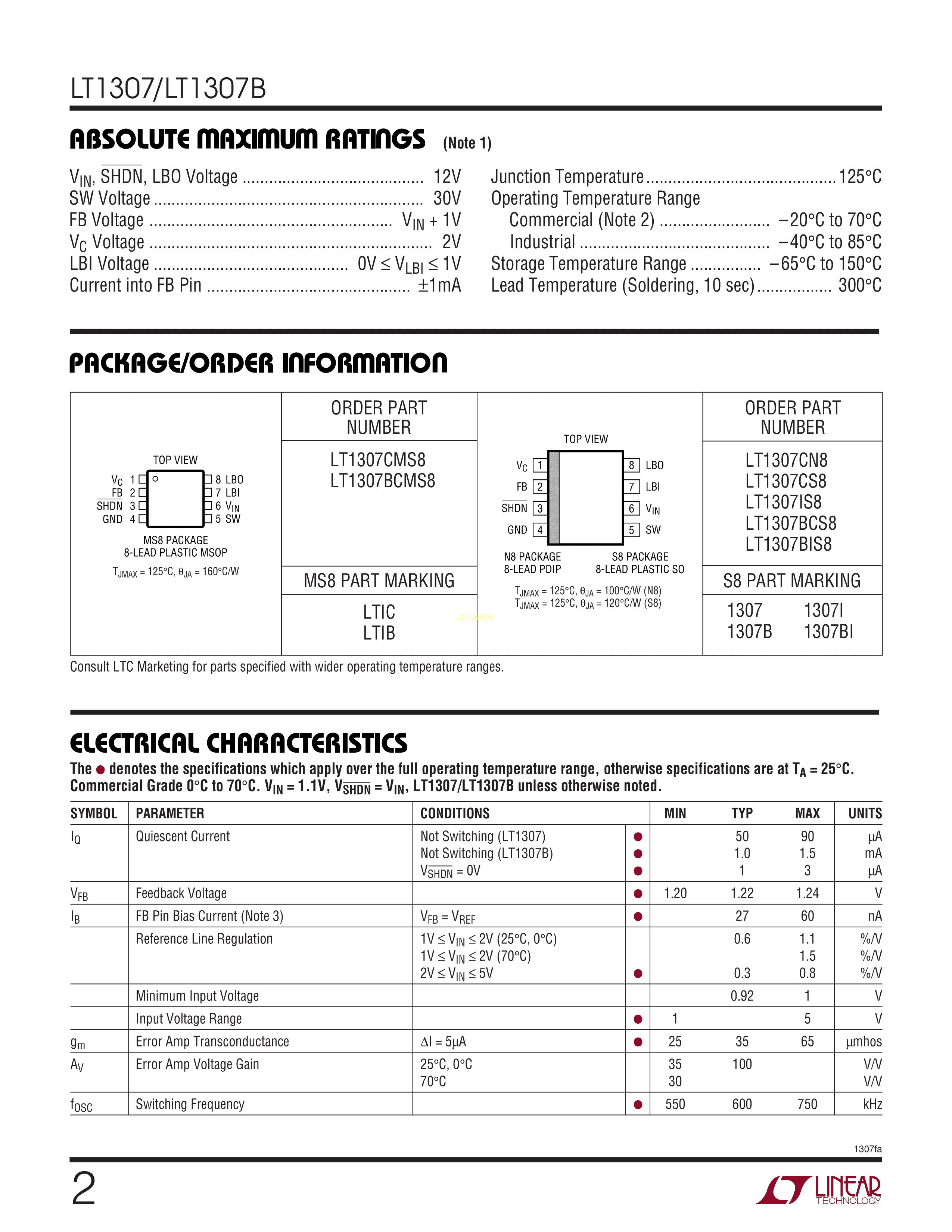 LT1307BCS8#TRPBF数据手册SO-8封装ADI(亚德诺)-LINEARPDF规格书,中英