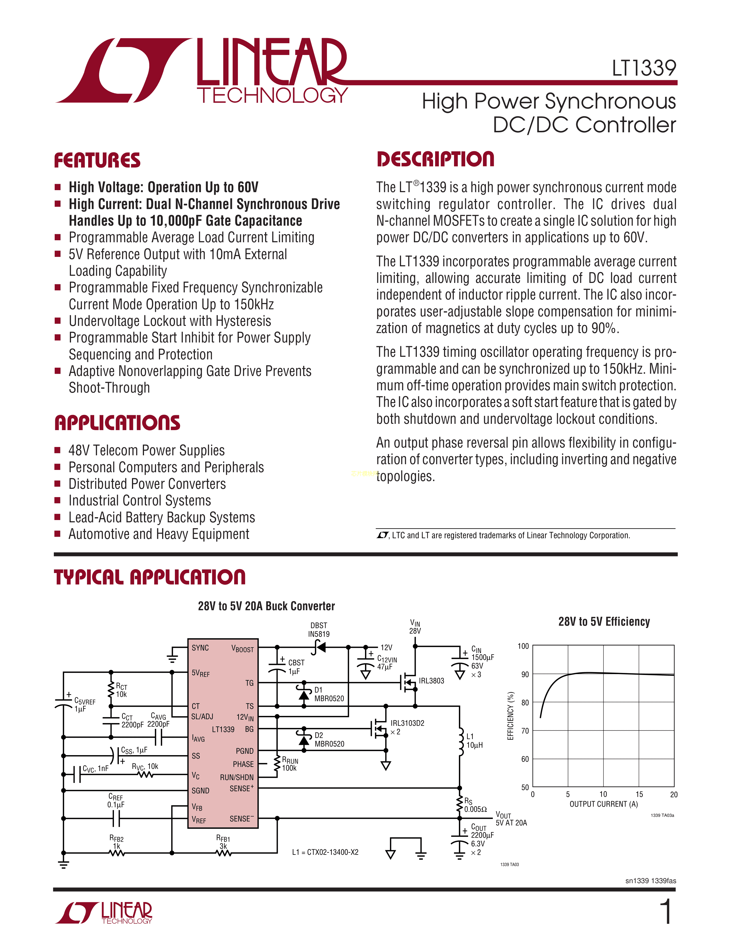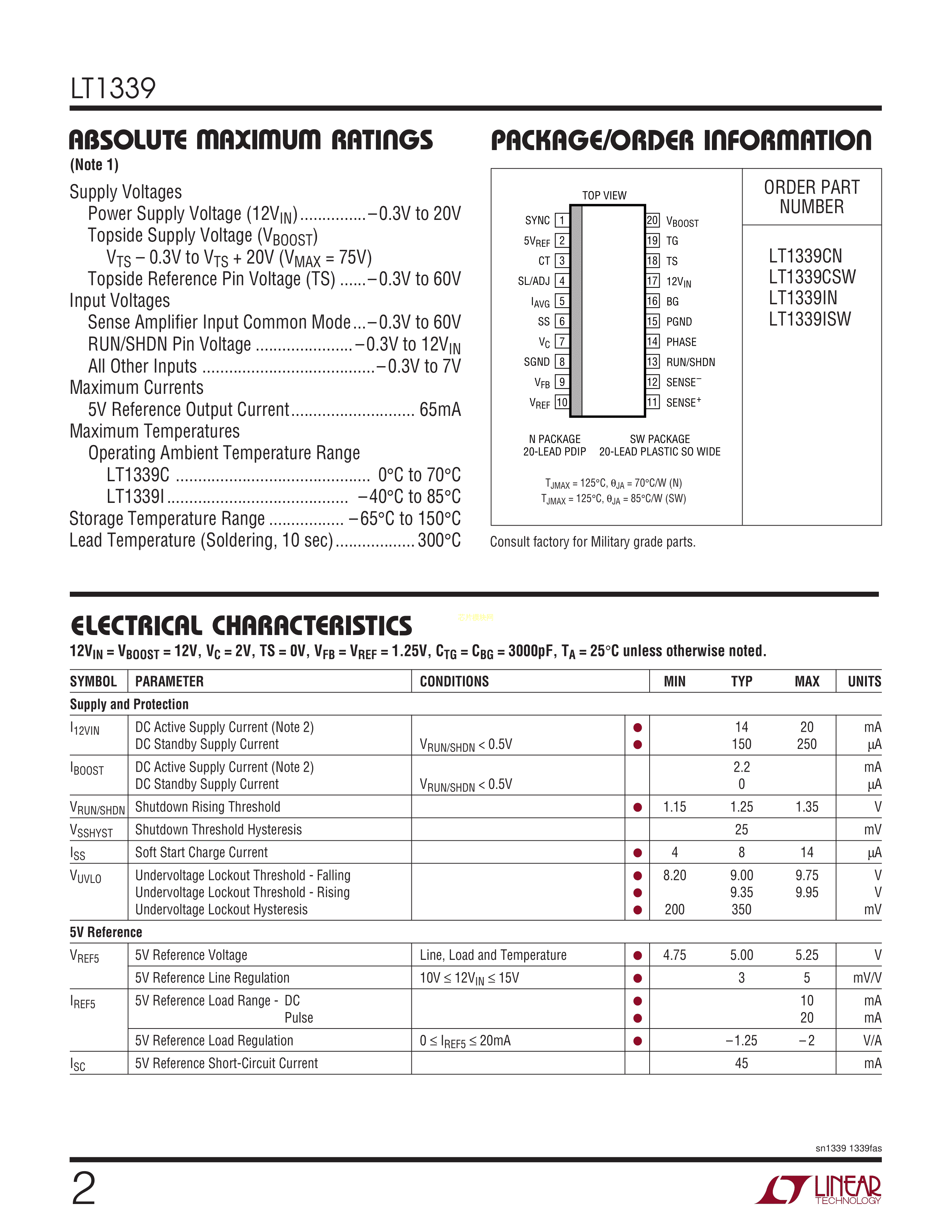LT1339CSW#TRPBF数据手册SO-20封装ADI(亚德诺)-LINEARPDF规格书,中英