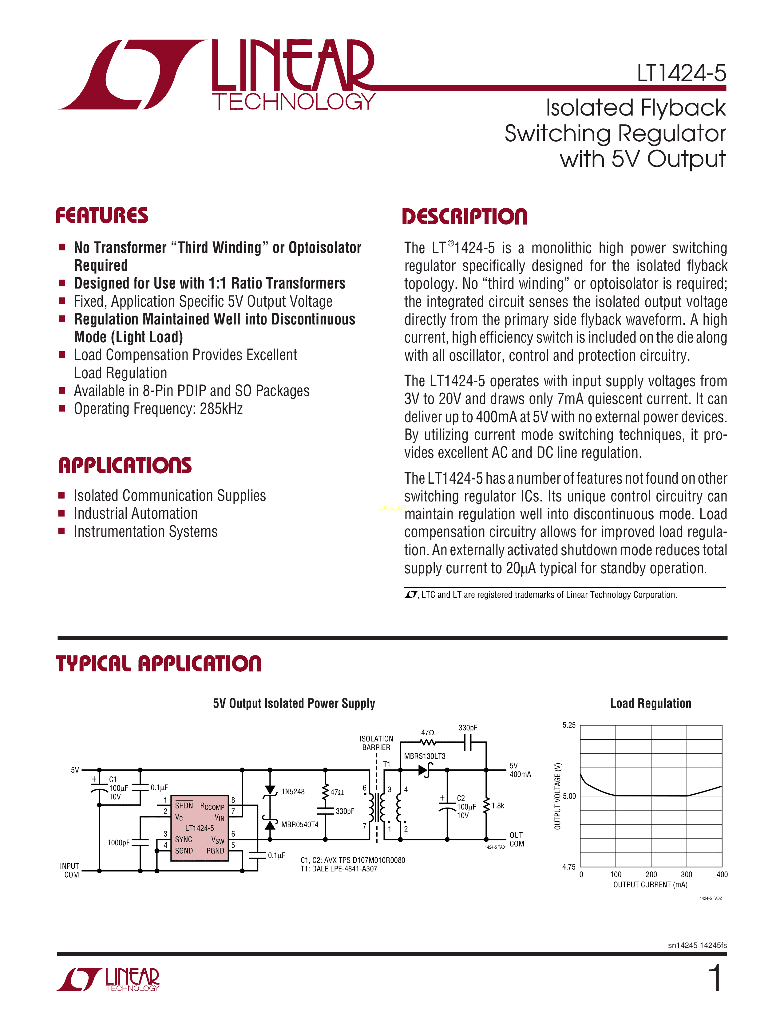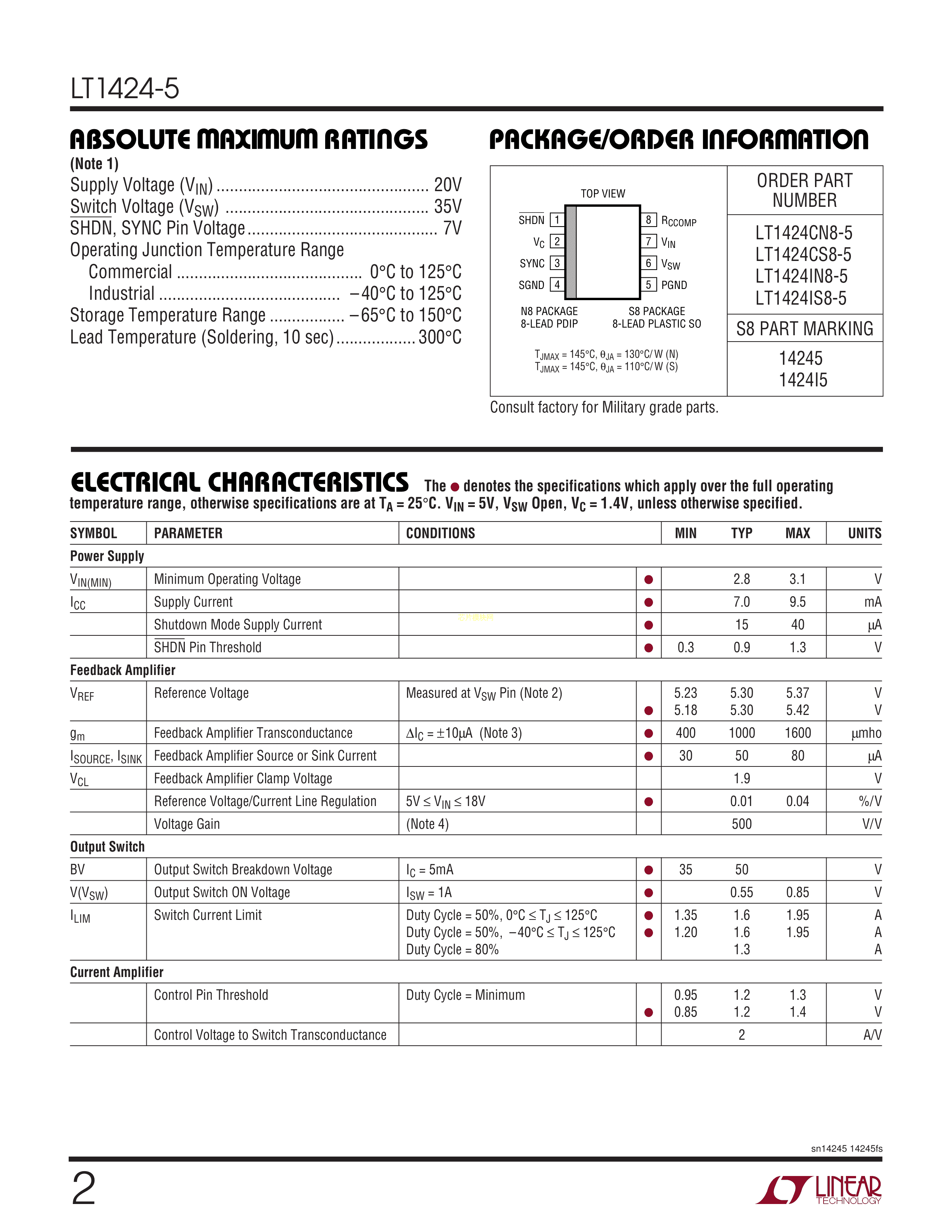 LT1424CN8-5#PBF数据手册PDIP-8封装ADI(亚德诺)-LINEARPDF规格书,中英文下载